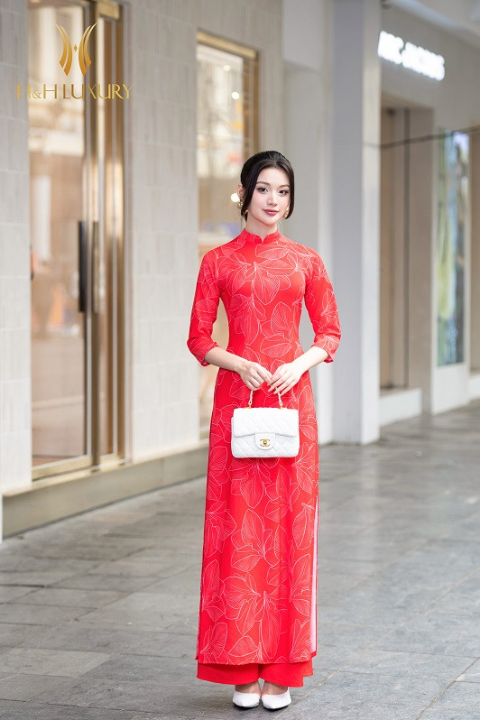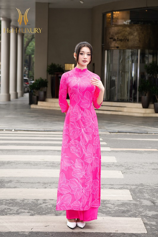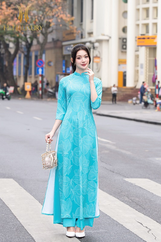 Mẫu áo dài truyền thống mới nhất năm 2024 của nhà H&h đã khắc họa rõ nét đẹp của người phụ nữ, nét đẹp vừa dịu dàng thanh lịch lại vừa đan xen nét đẹp của hiện đại.