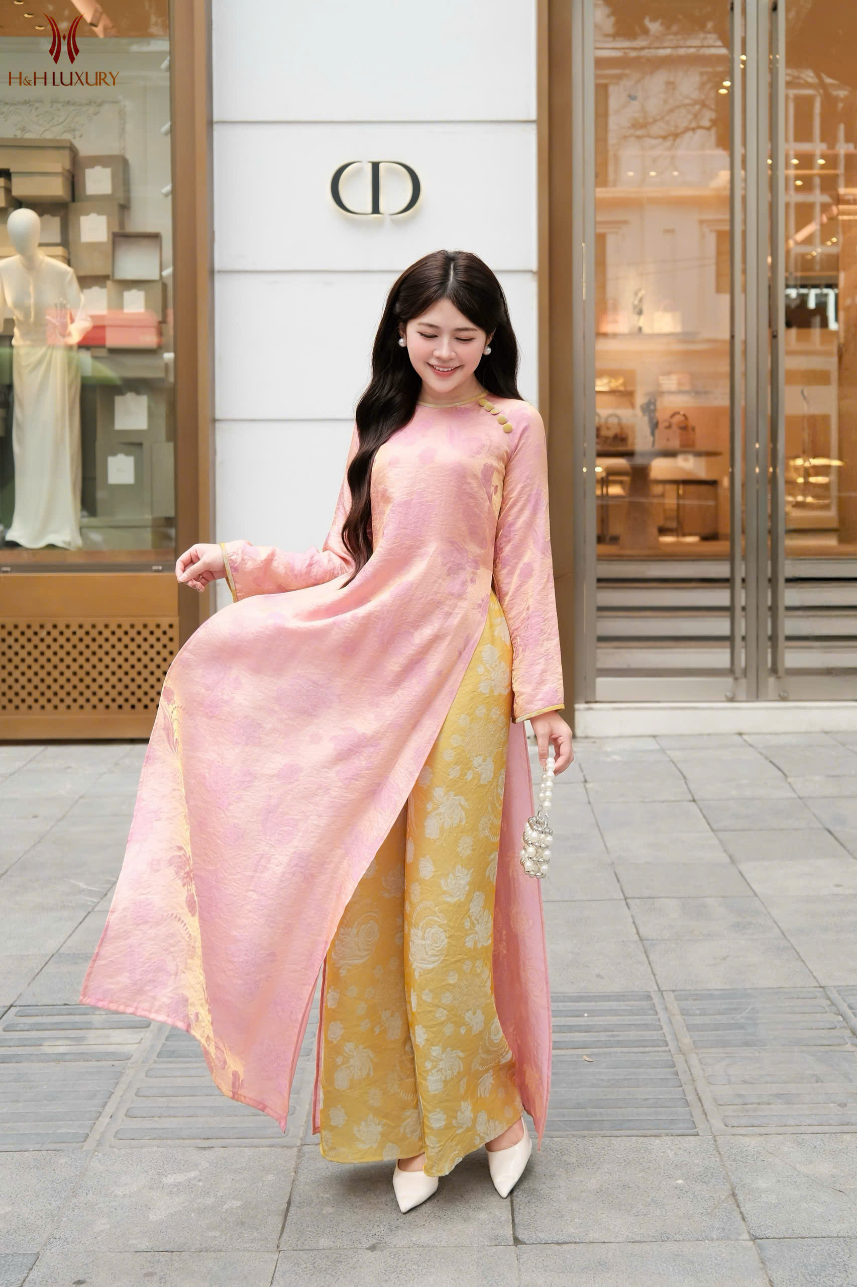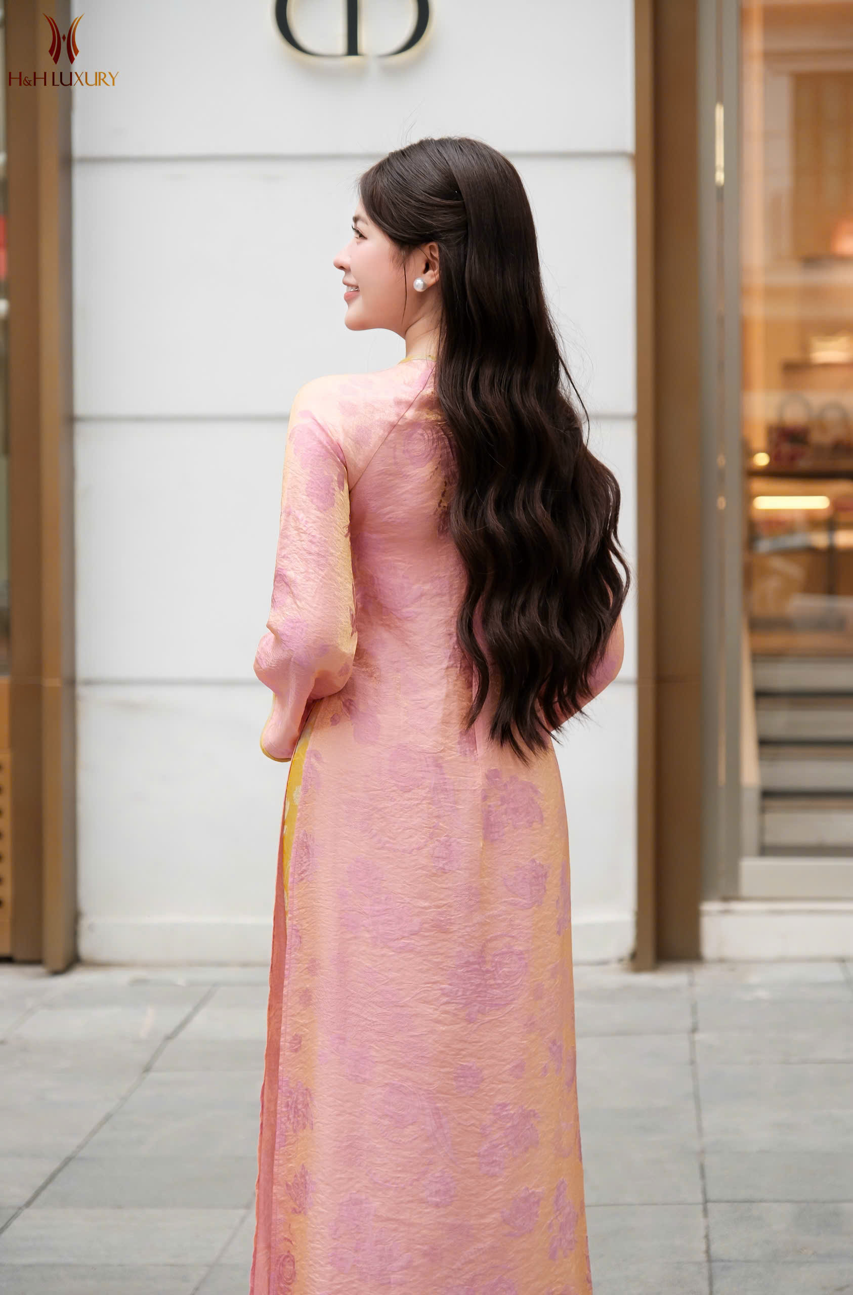 ÁO DÀI CÁCH TÂN DÁNG XUÔNG CỔ 3 PHÂN HỒNG