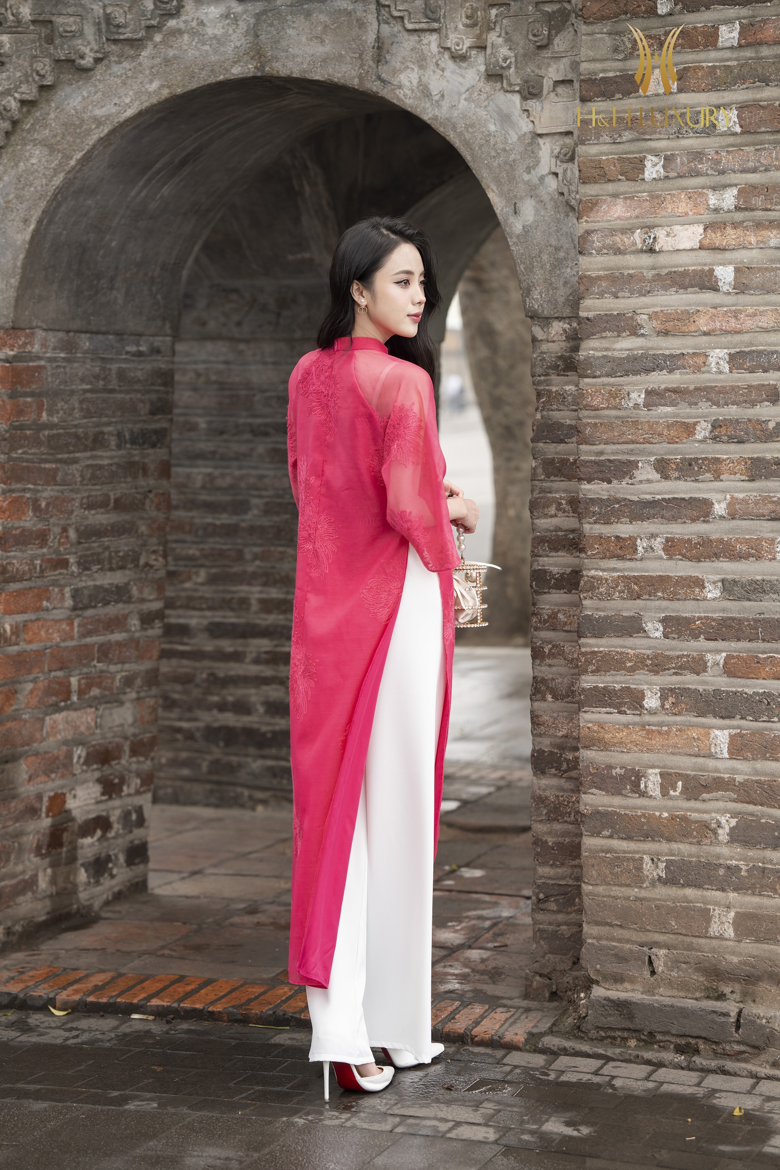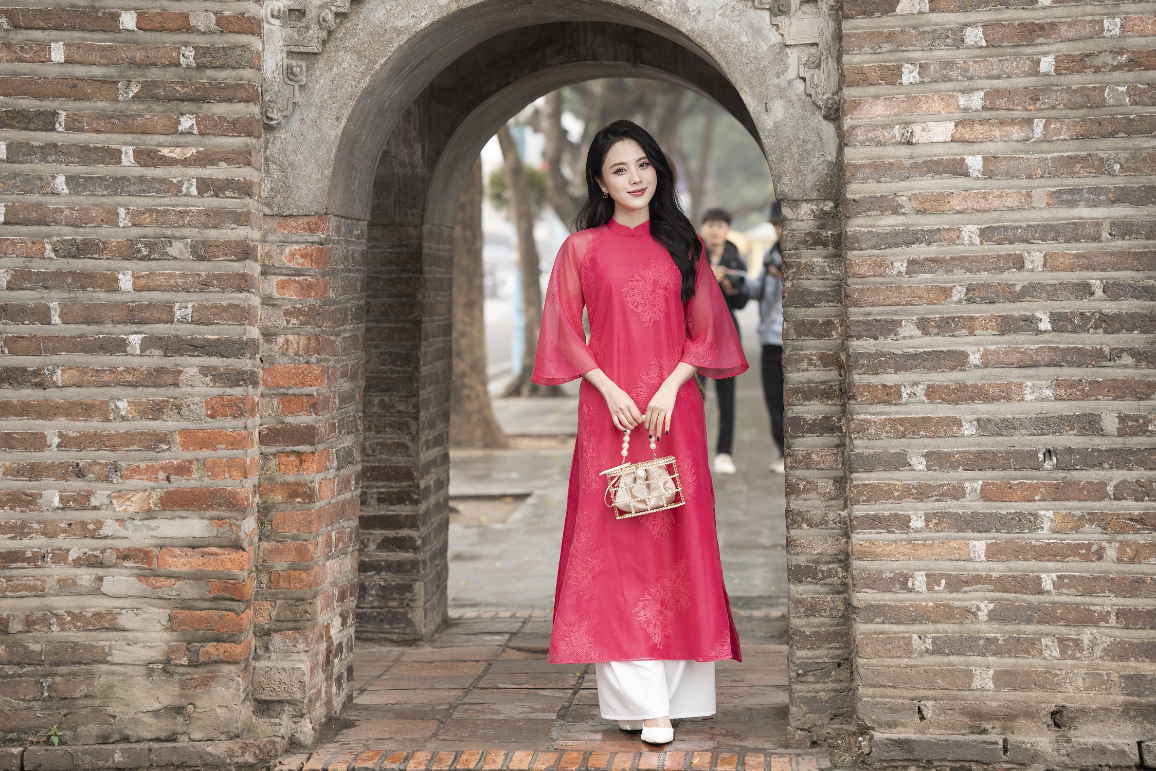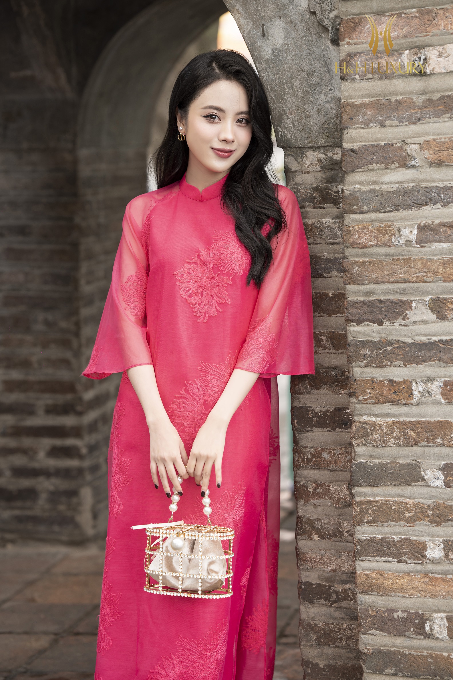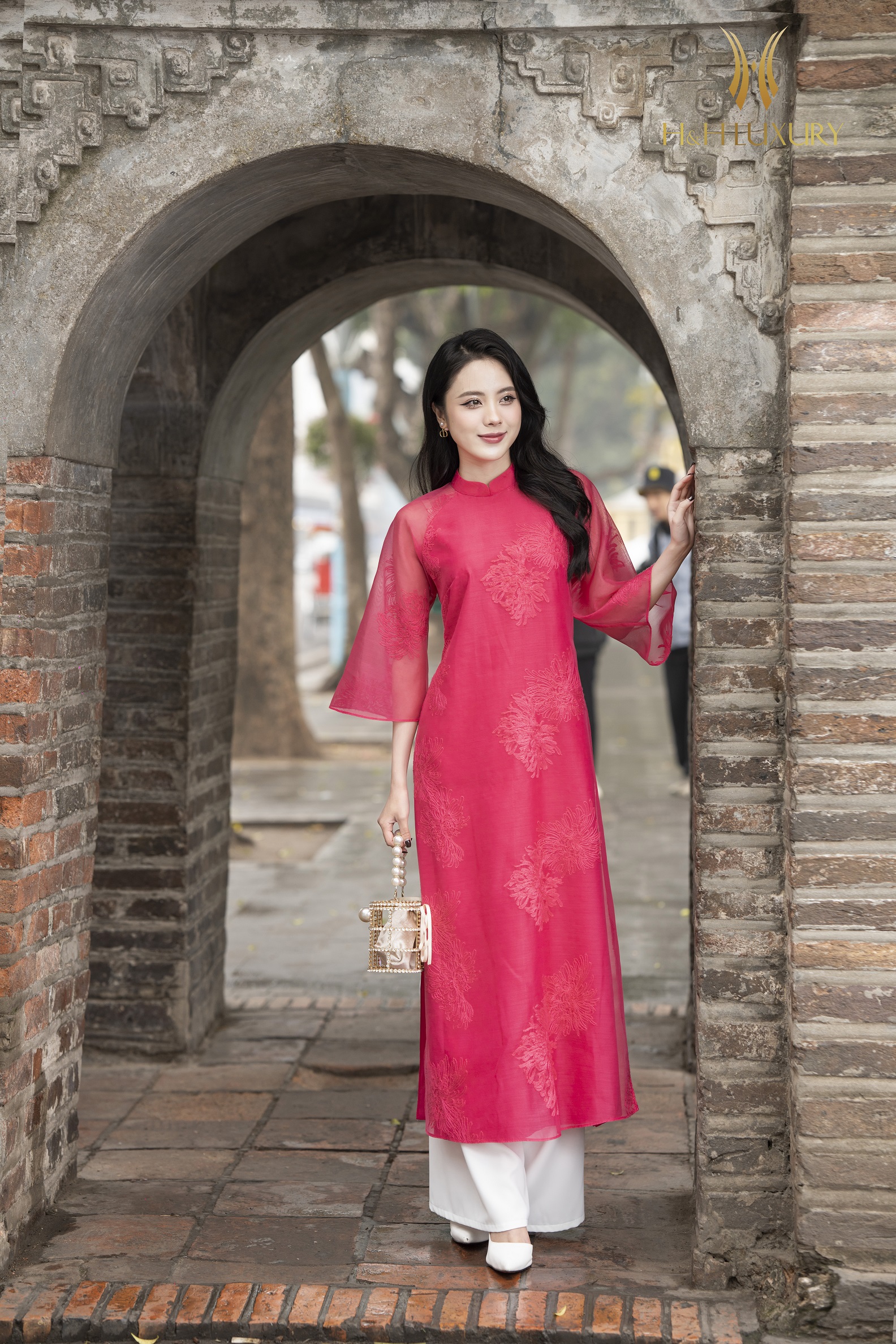 ÁO DÀI CÁCH TÂN TƠ HÀN THÊU HOA HỒNG SEN