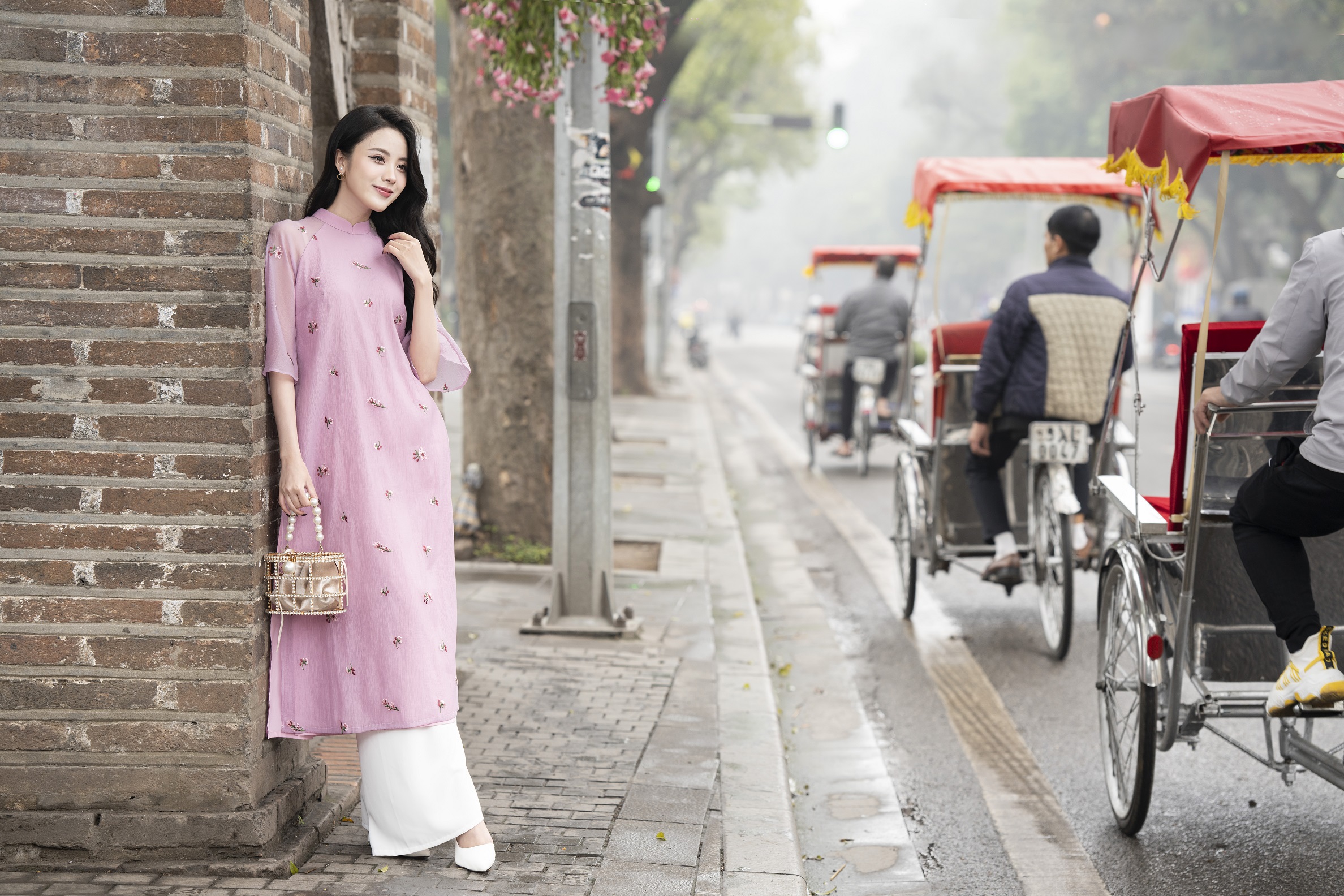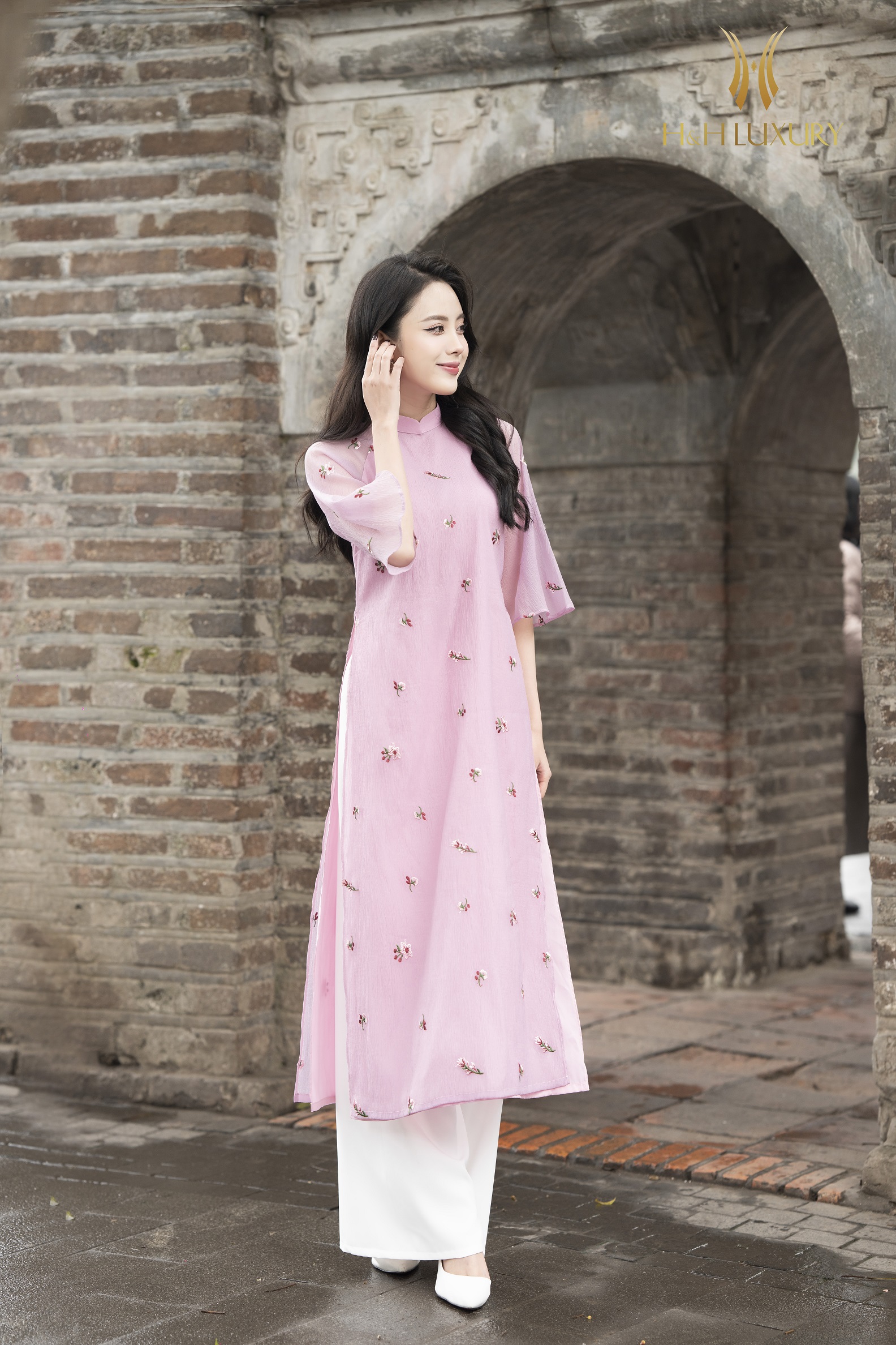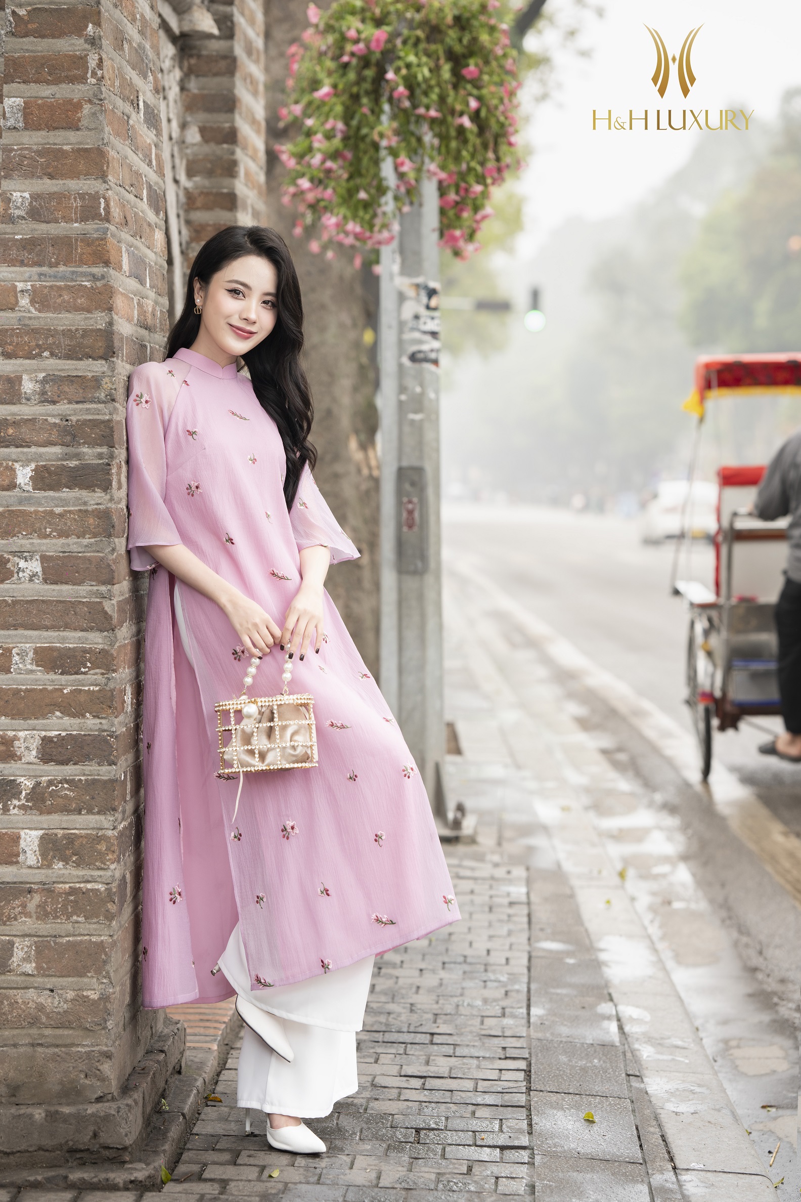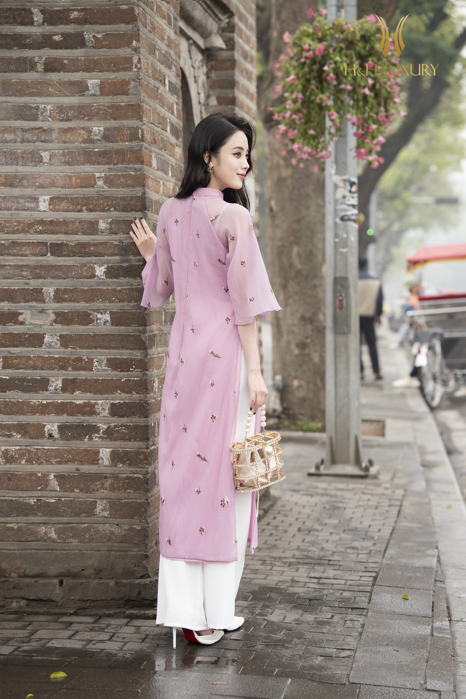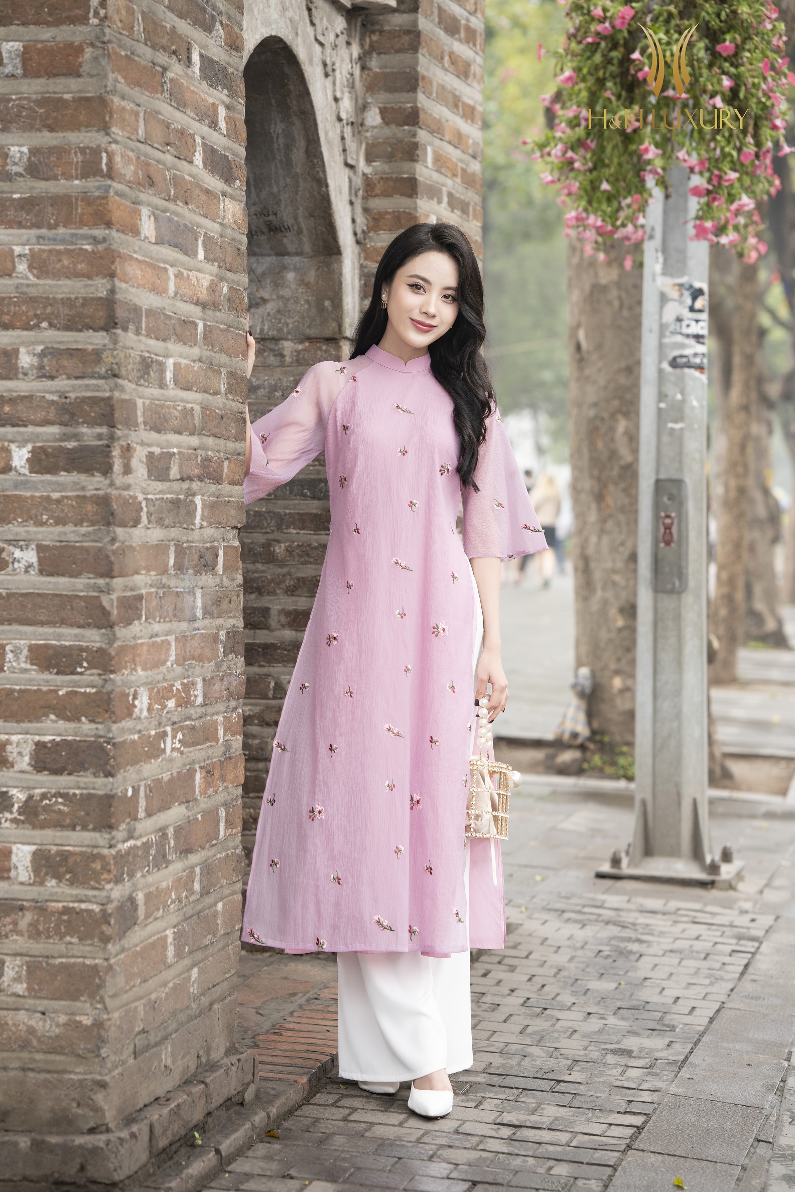 ÁO DÀI CÁCH TÂN TƠ TÍM THÊU HOA