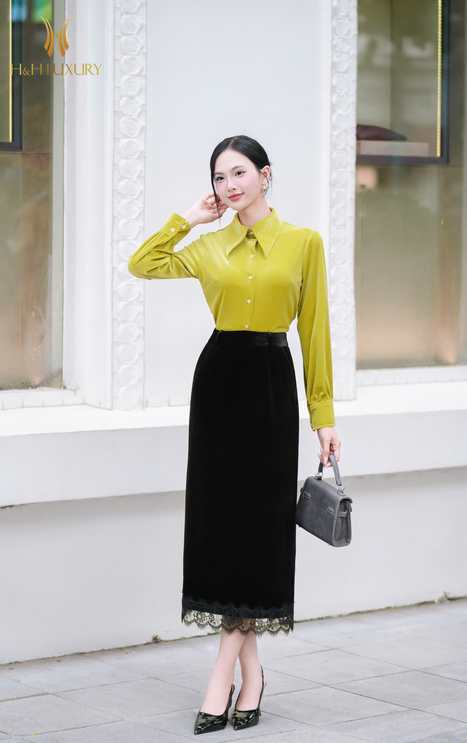 ÁO NHUNG THE XANH CỐM CỔ ĐỨC