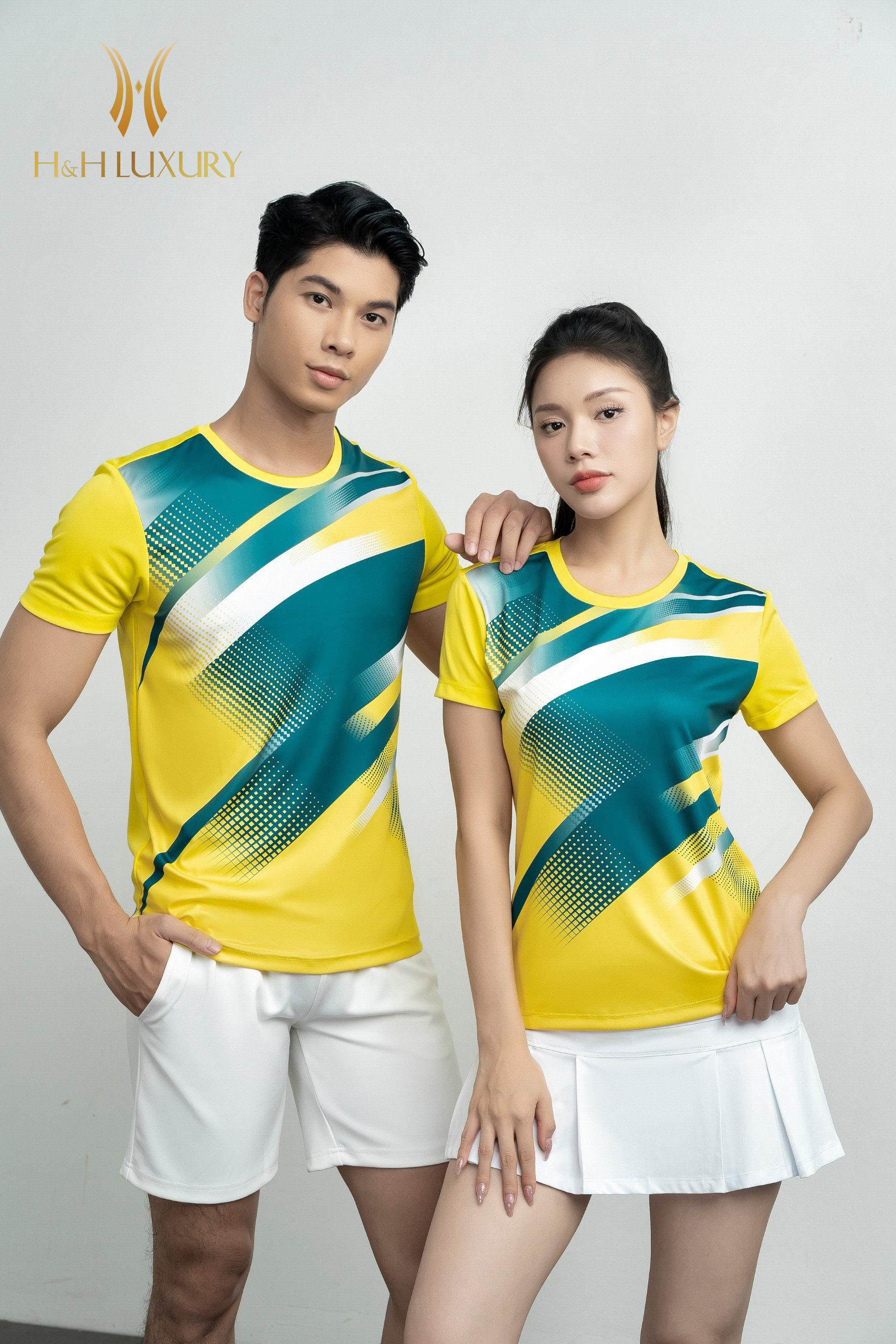 ÁO PRONING NỮ MÀU VÀNG PHỐI XANH LỤC BẢO IN CHUYỂN NHIỆT THOÁNG KHÍ, SIÊU NHẸ, SIÊU BỀN MÀU, THOÁT HƠI NHANH