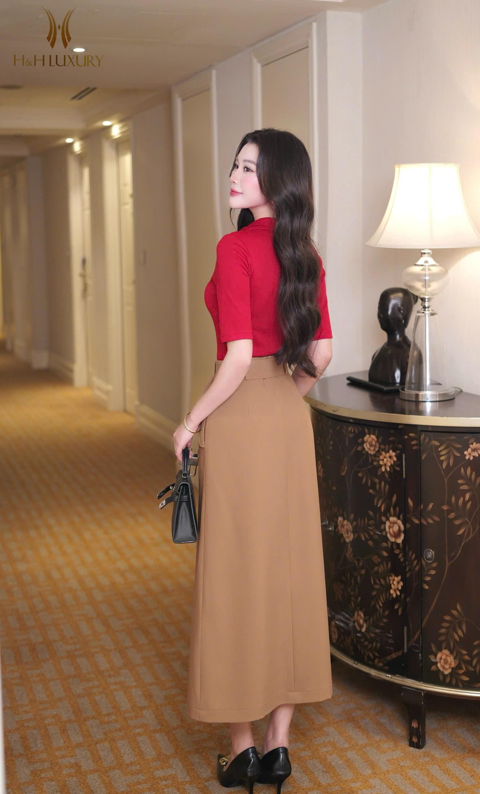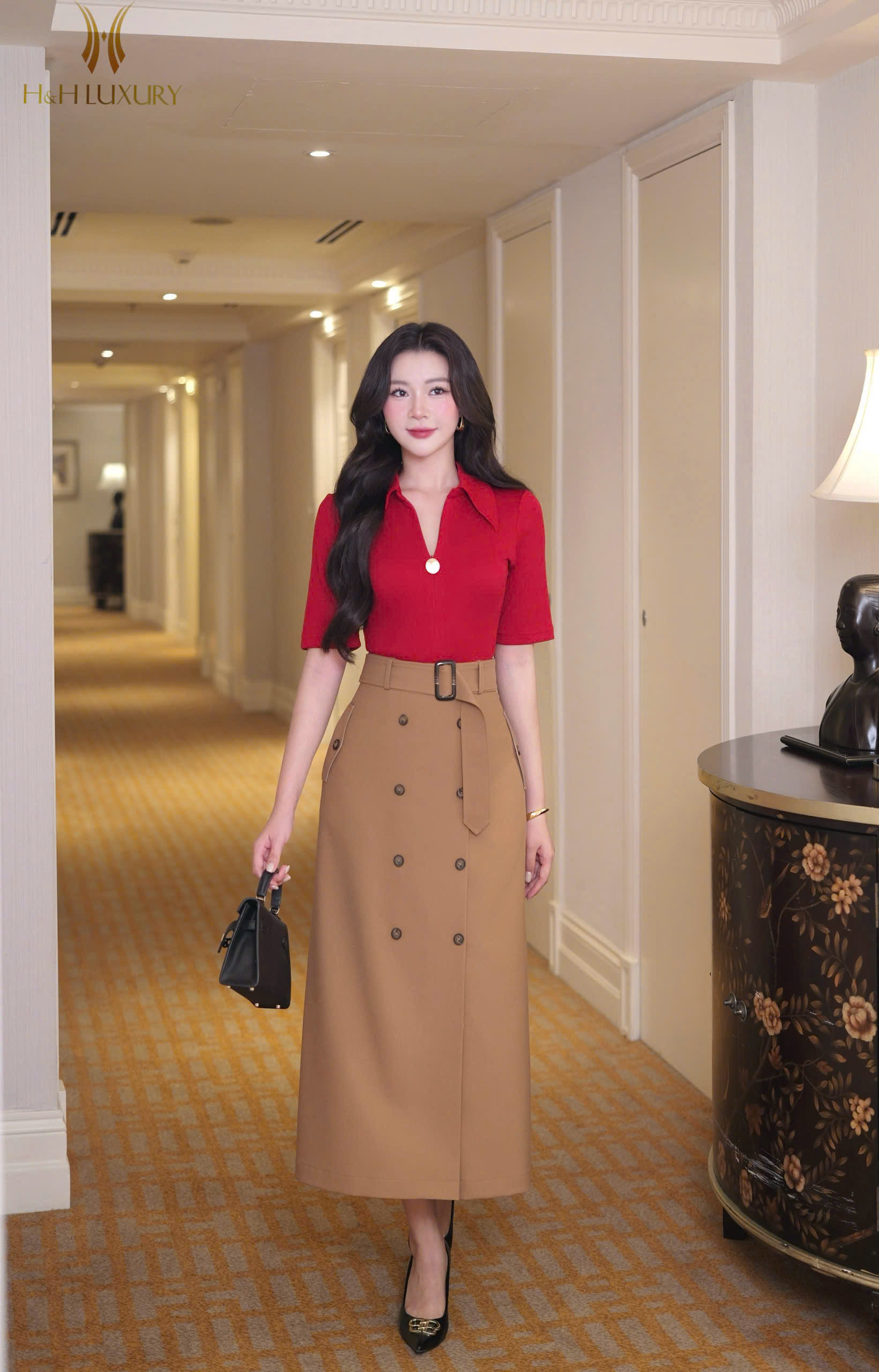 ÁO SƠ MI CỔ ĐỨC THUN TẰM ĐỎ