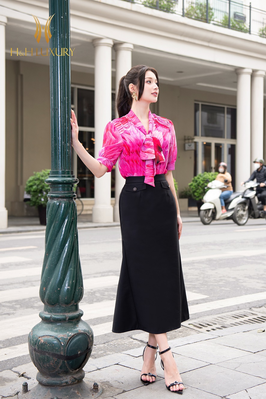 ÁO SƠ MI HỒNG SEN LÔNG VŨ NƠ CỔ