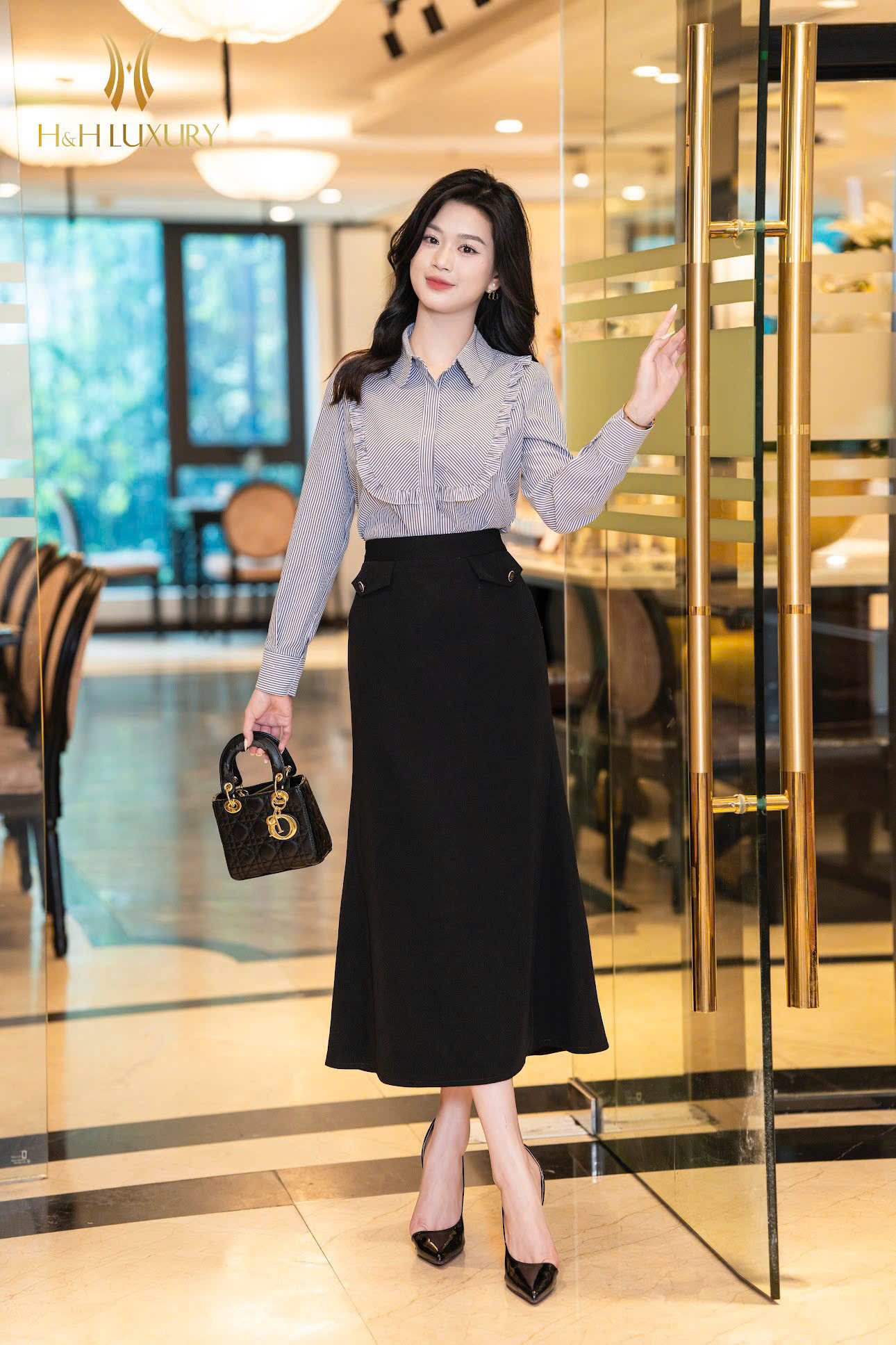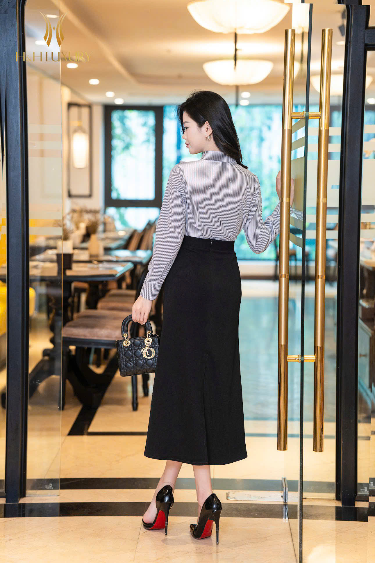 ÁO SƠ MI KẺ ĐÍNH ĐÁ THÔ HÀN CAO CẤP