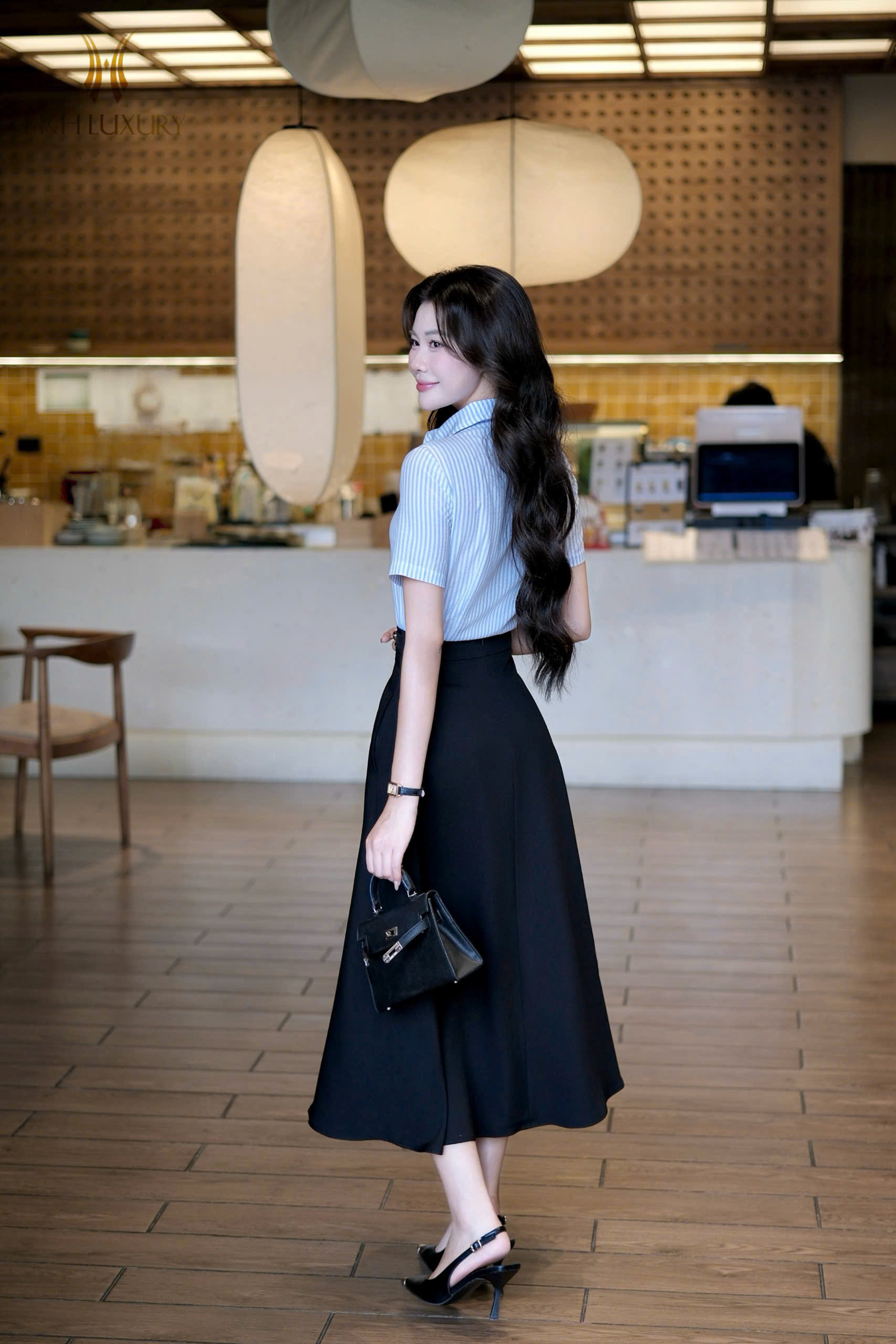 ÁO SƠ MI KẺ XANH CỔ ĐỨC