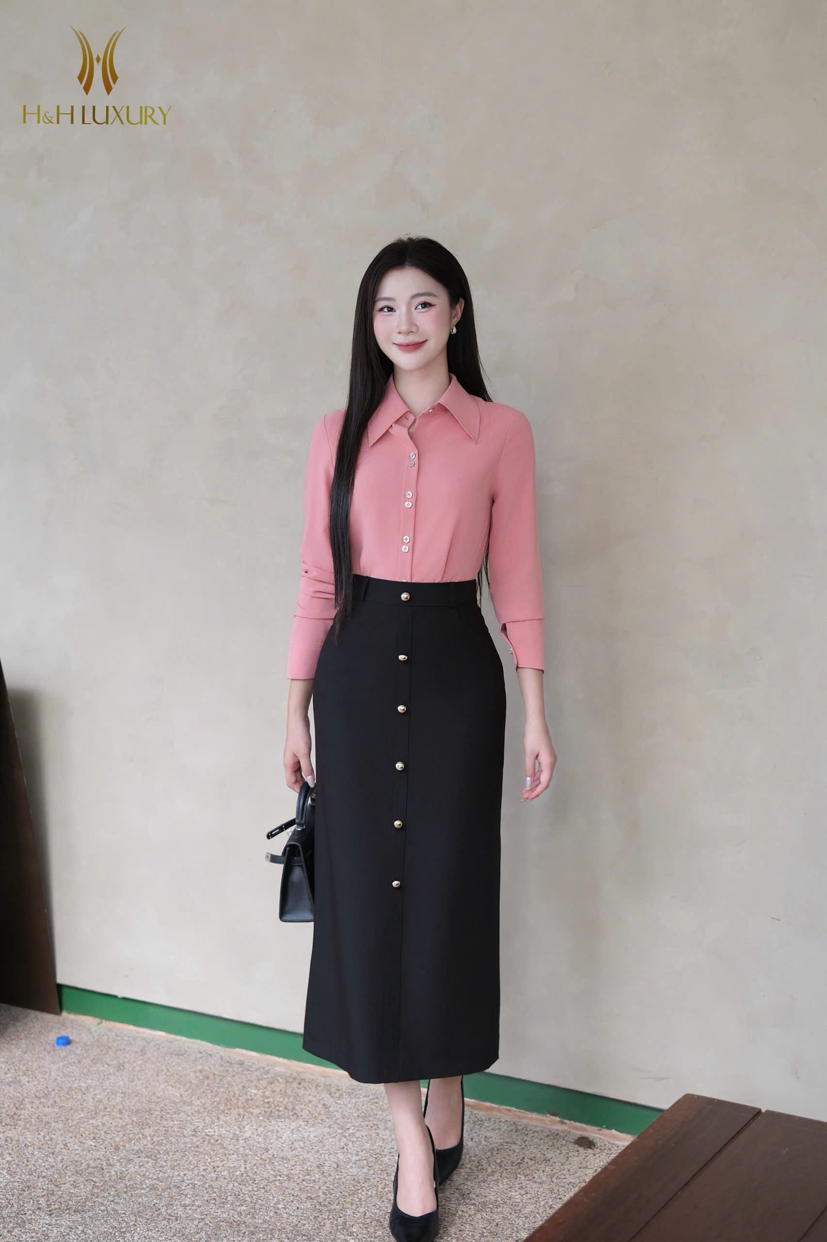ÁO SƠ MI LỤA HỒNG ĐỖ CỔ ĐỨC