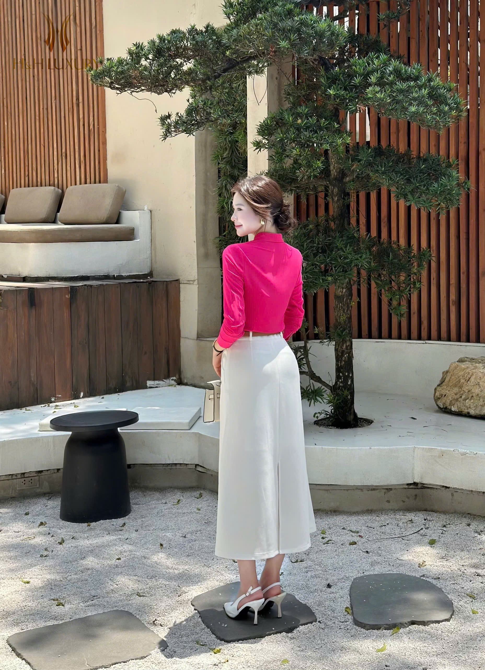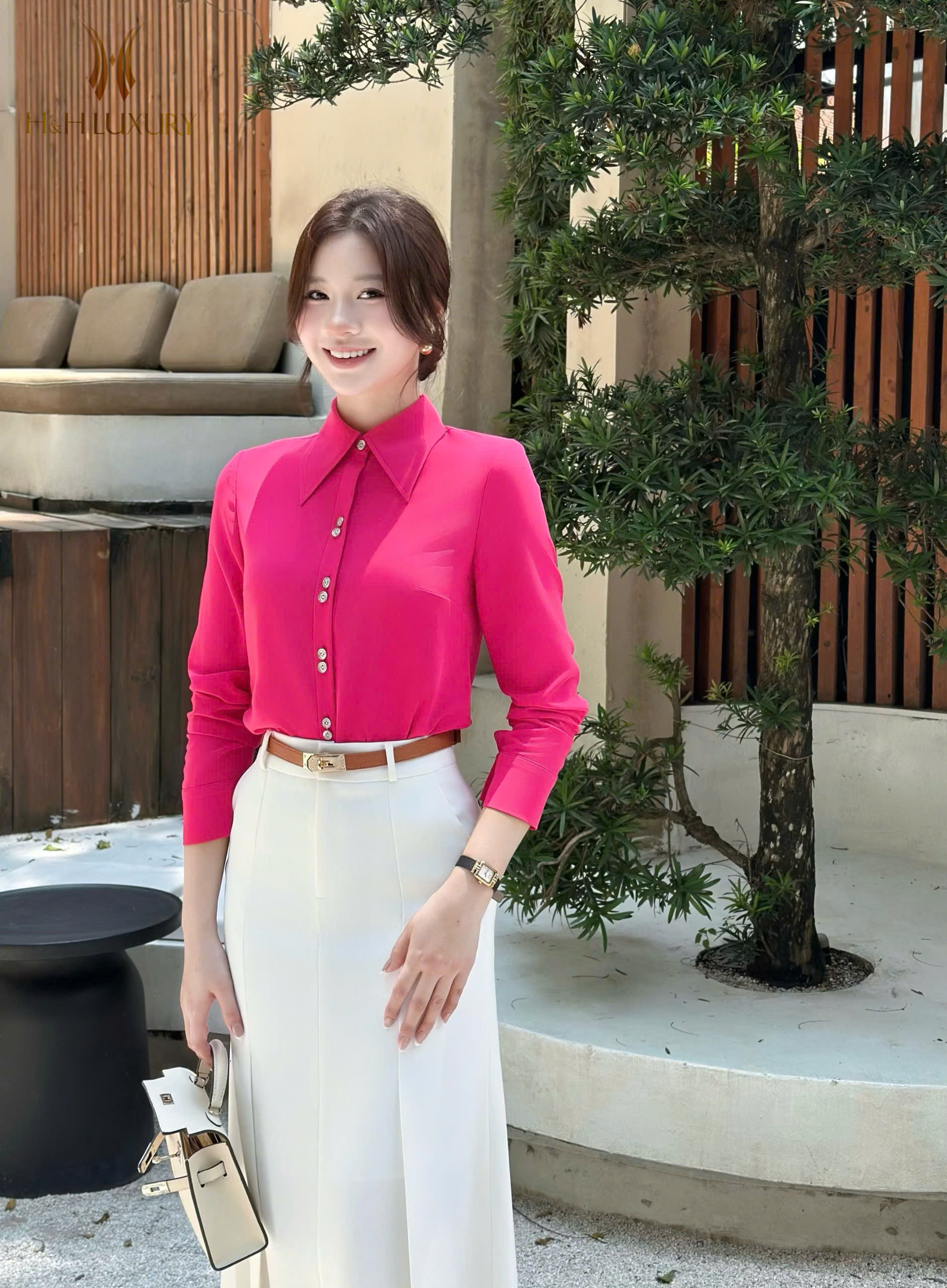 ÁO SƠ MI LỤA HỒNG SEN CỔ ĐỨC