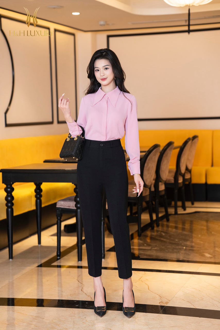 ÁO SƠ MI LỤA TUYẾT HỒNG PHẤN CỔ ĐỨC
