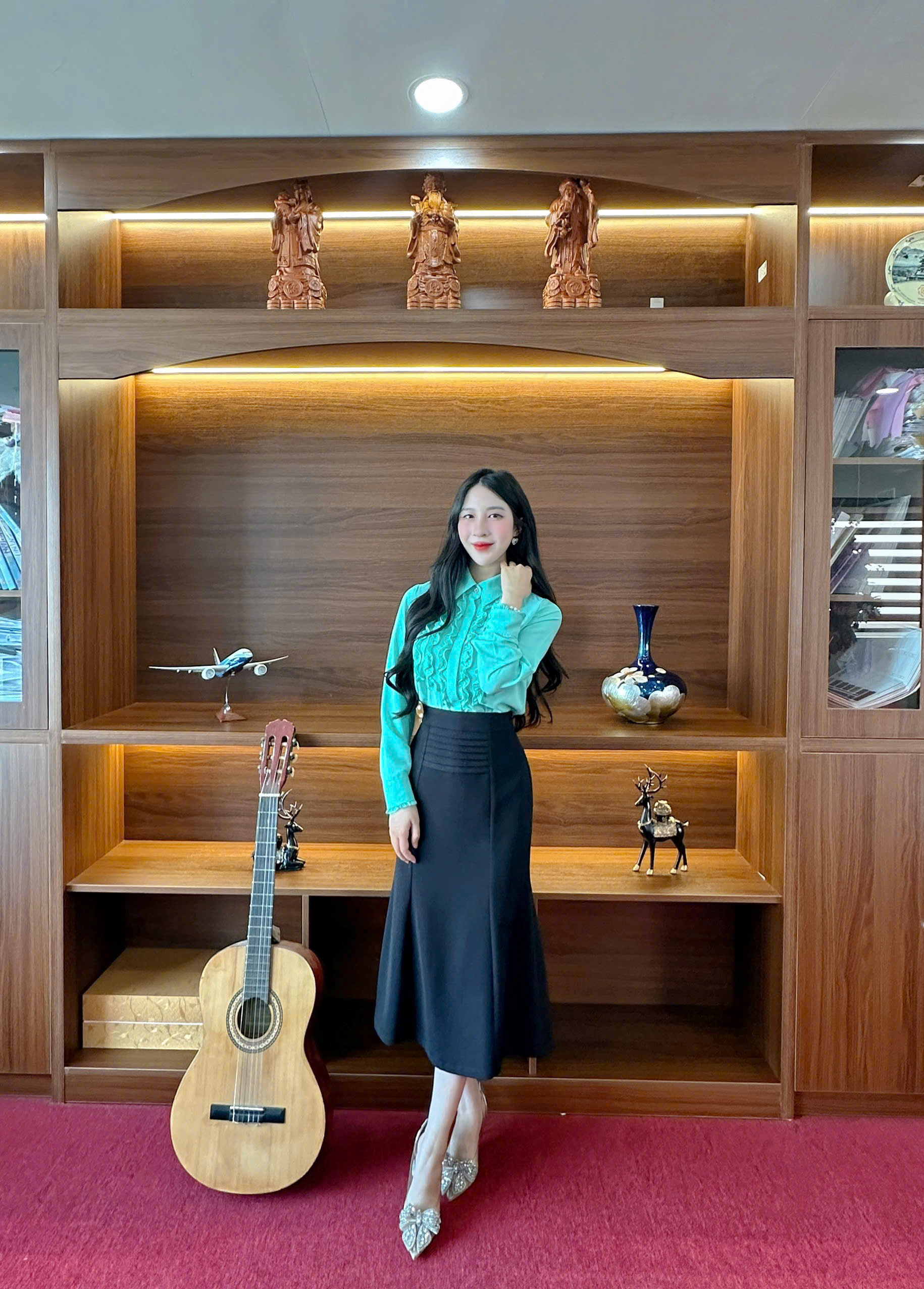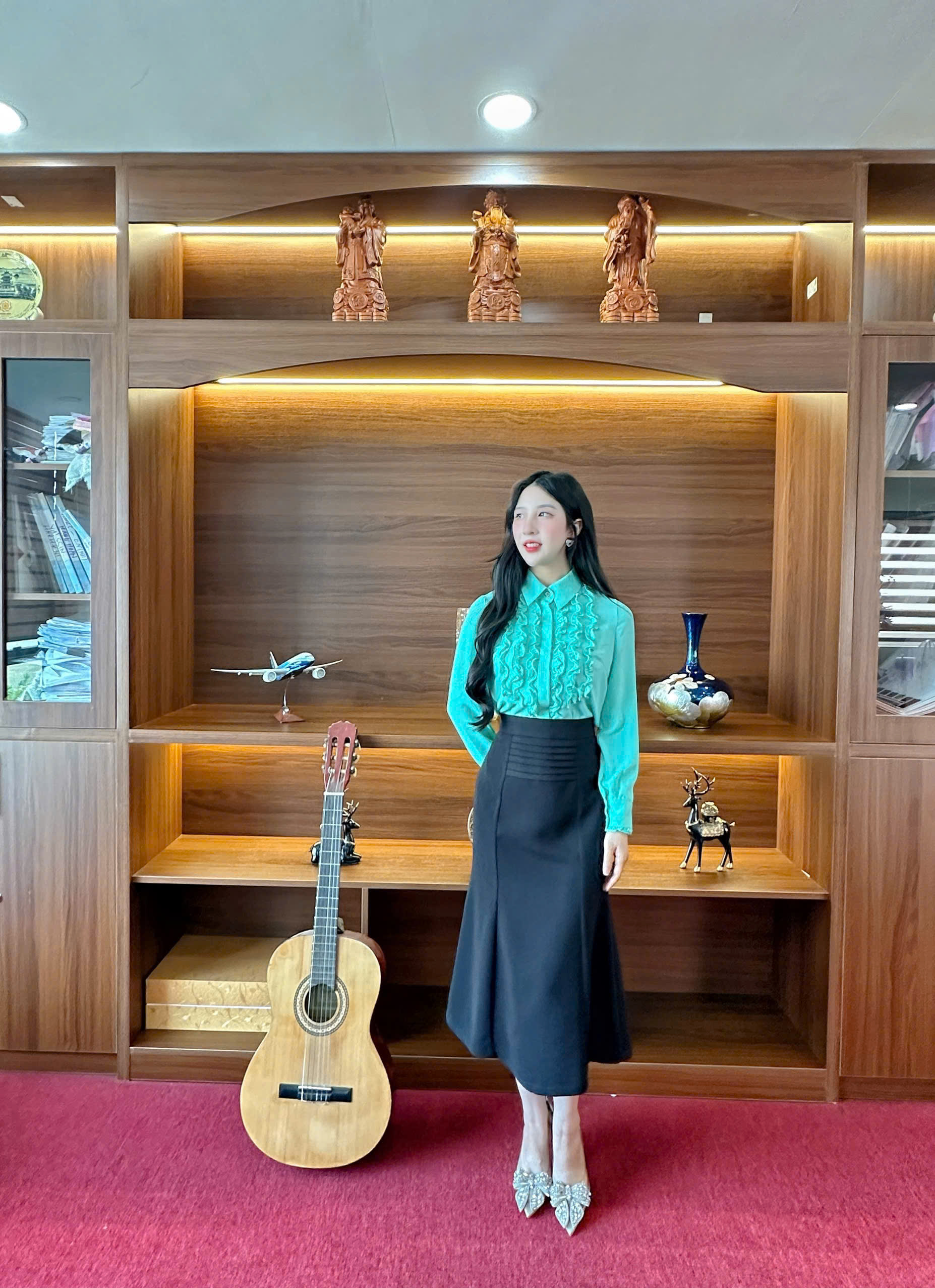ÁO SƠ MI LỤA XANH NGỌC CỔ ĐỨC XẾP BÈO