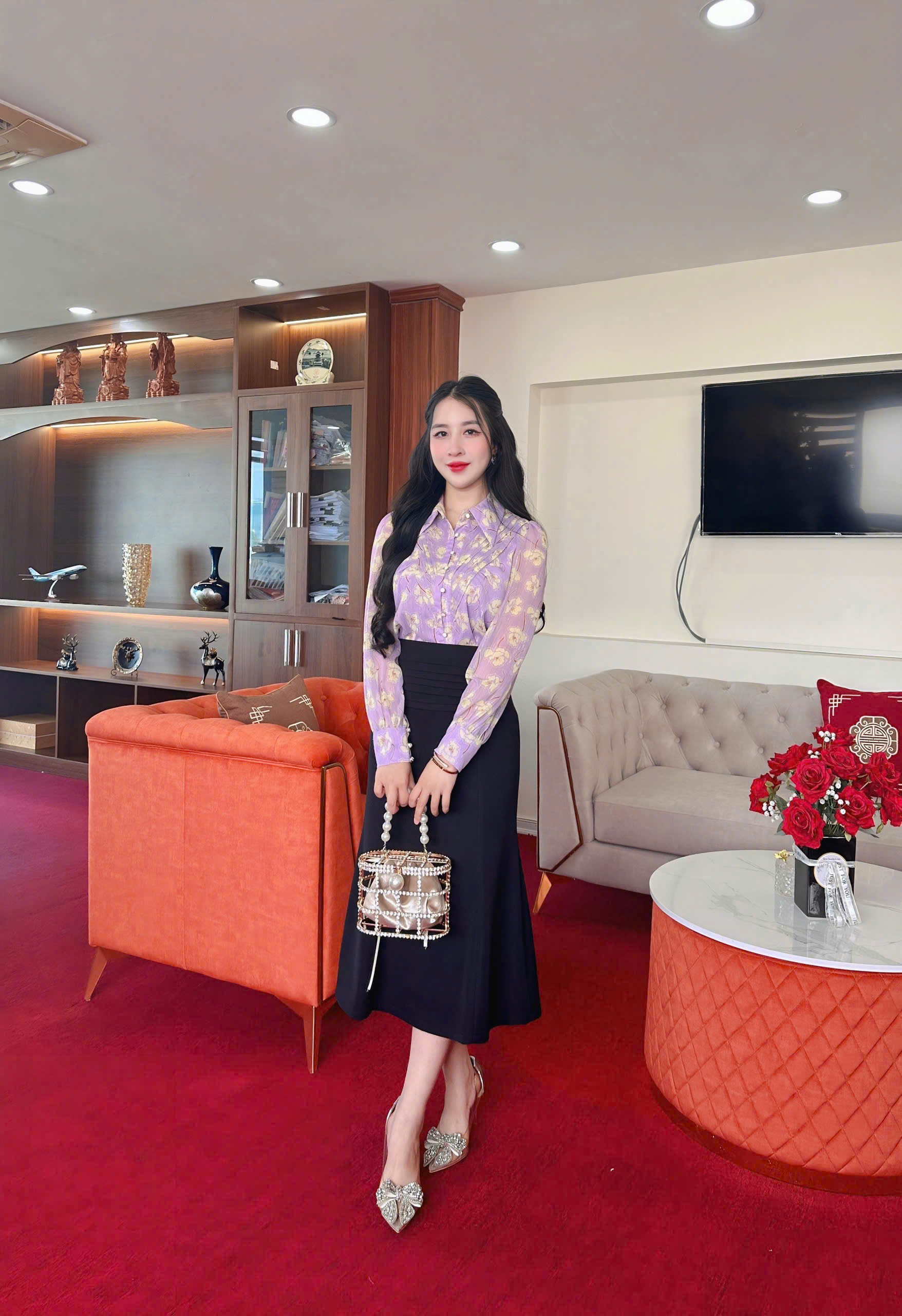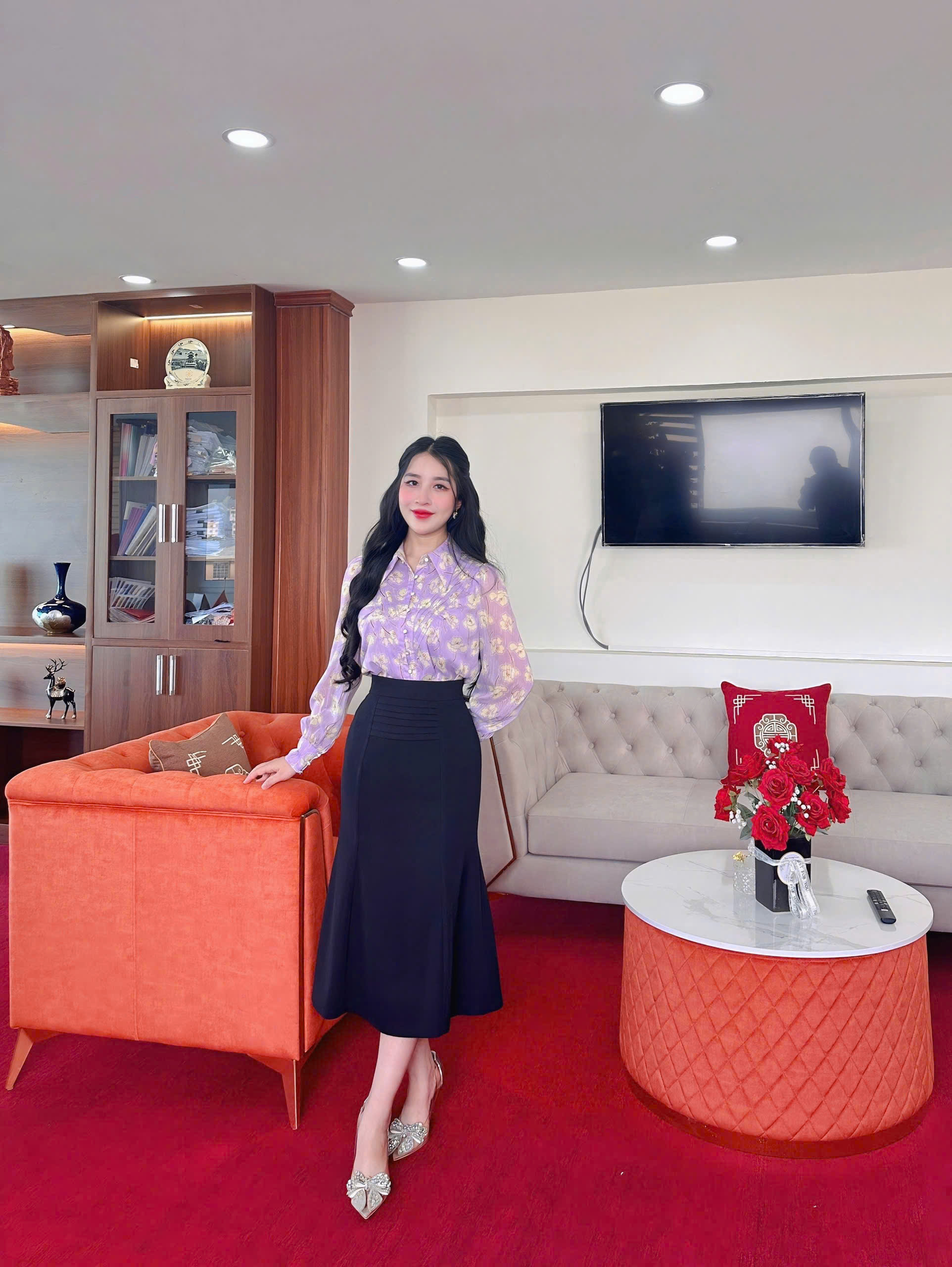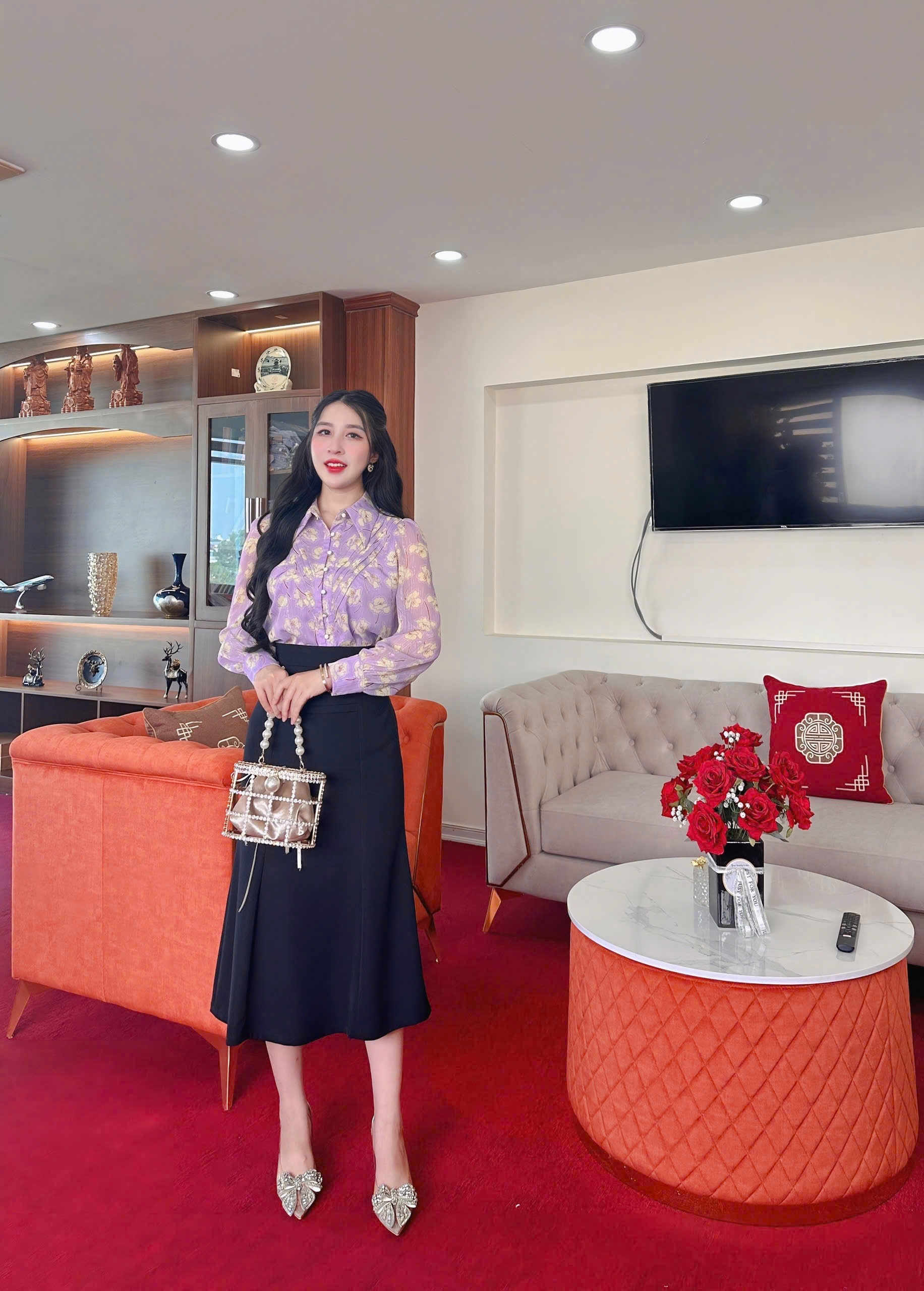 ÁO SƠ MI TÍM LAVENDER CỔ ĐỨC XẾP LY THÂN