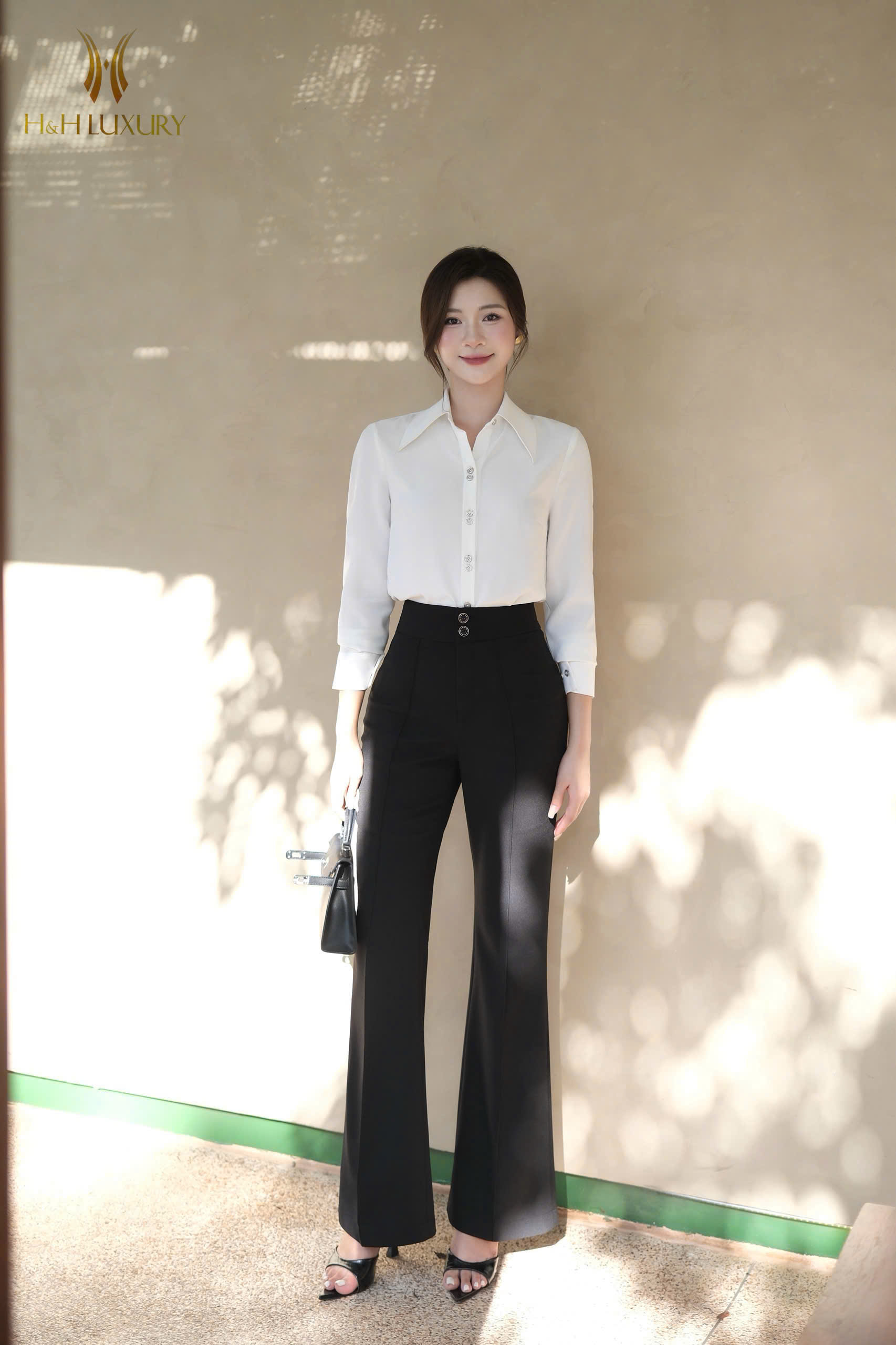 ÁO SƠ MI TRẮNG CỔ ĐỨC TAY DÀI