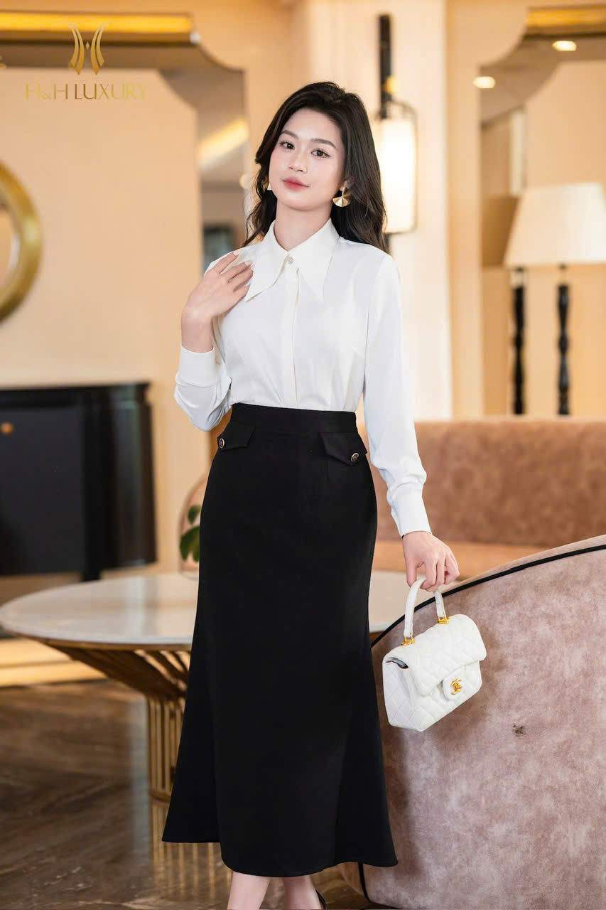 ÁO SƠ MI TRẮNG LỤA TUYẾT HÀN CỔ ĐỨC