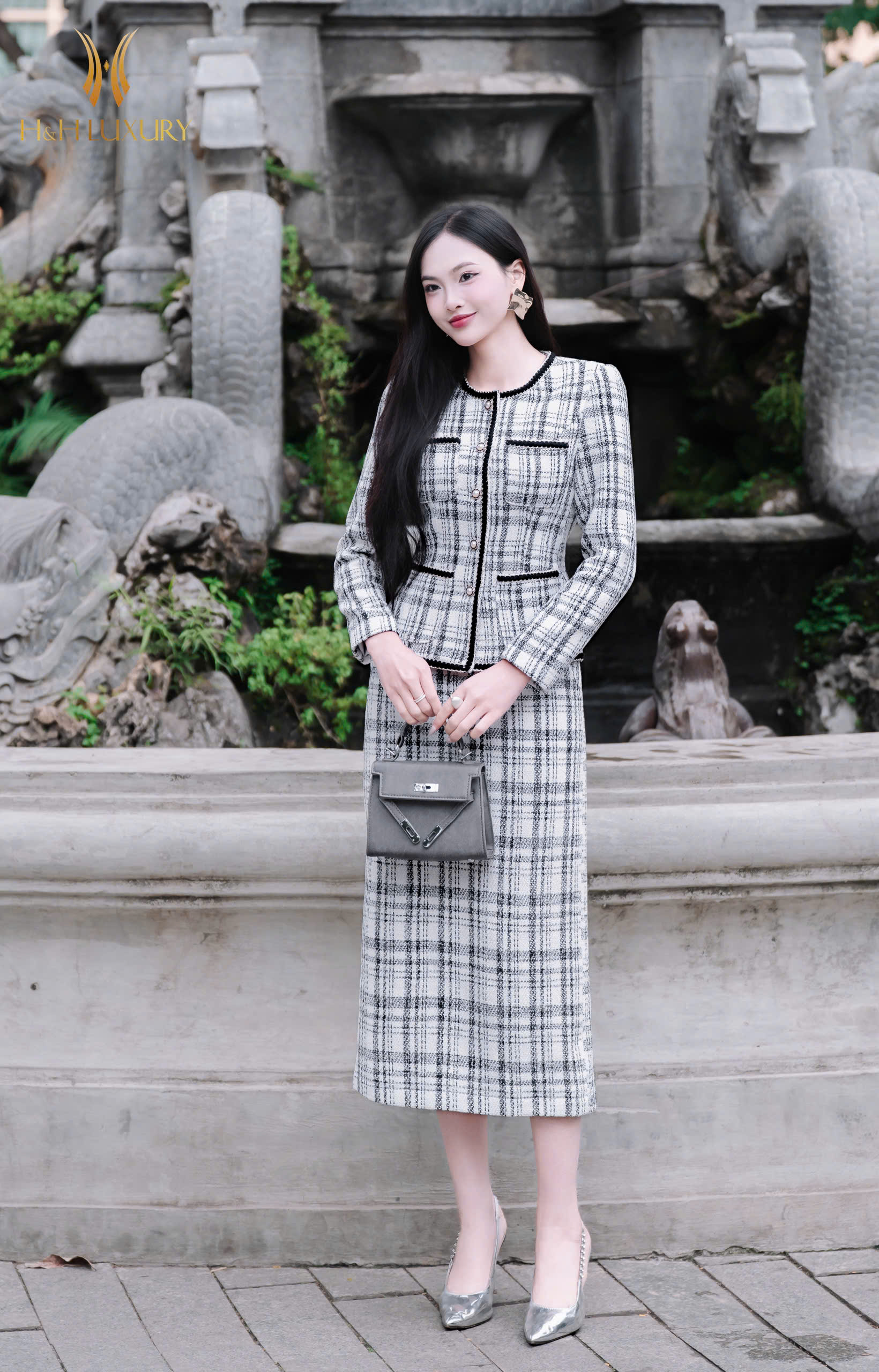 ÁO VEST DẠ TWEED KẺ TRẮNG PHỐI