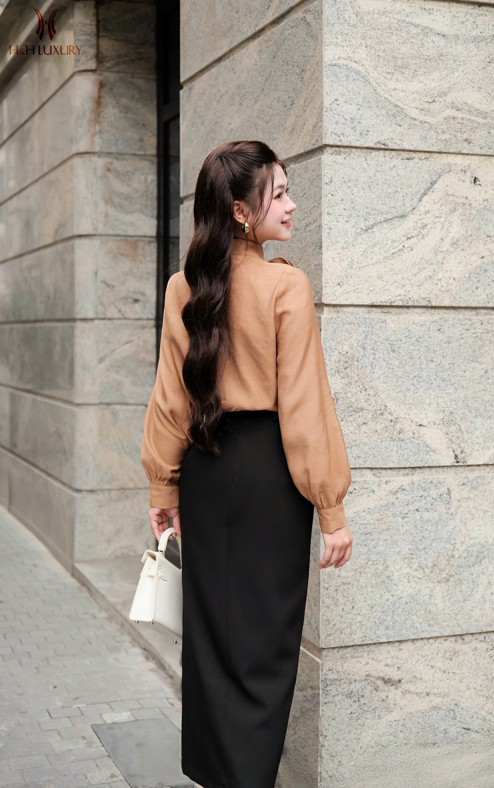 CHÂN JUP ĐEN BÚT CHỈ XUÔNG ĐÍNH CÚC