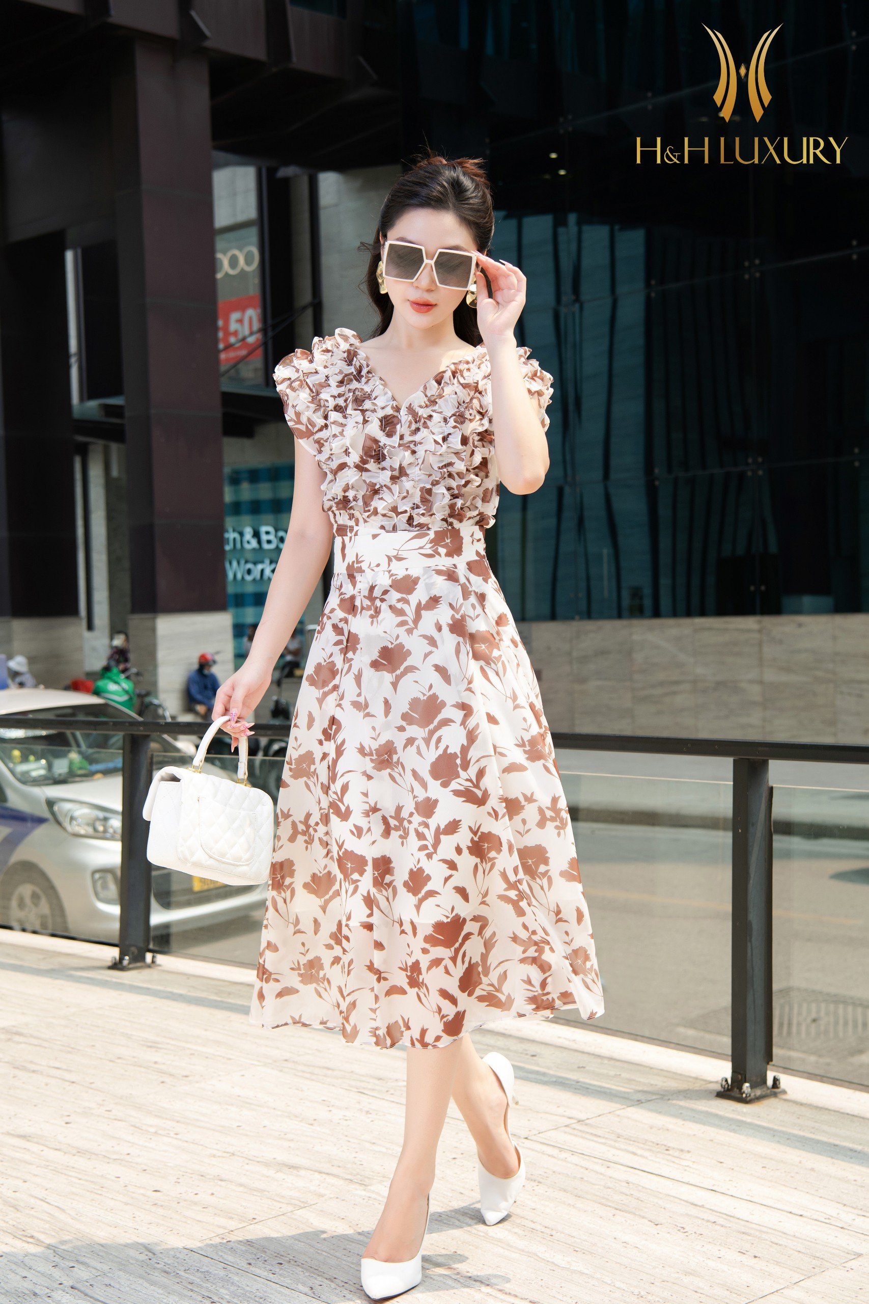 CHÂN JUP TƠ HOA NÂU XÒE XẾP LY