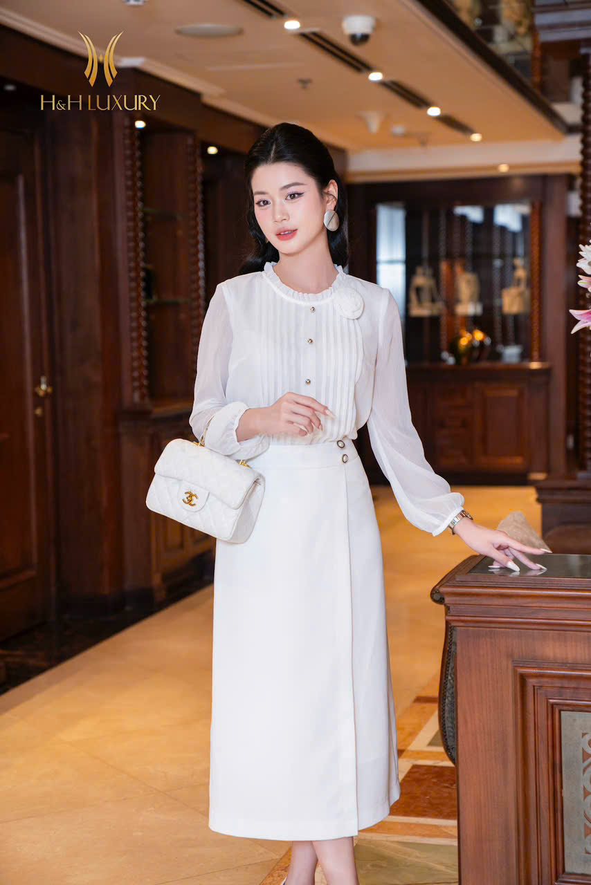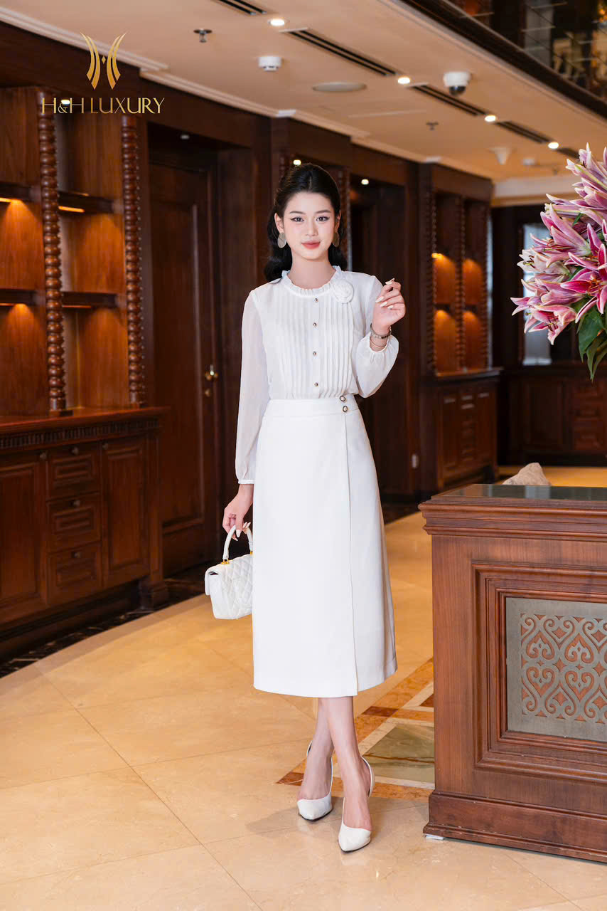 CHÂN JUP TRẮNG ÔM A ĐÍNH CÚC EO TUYẾT HÀN