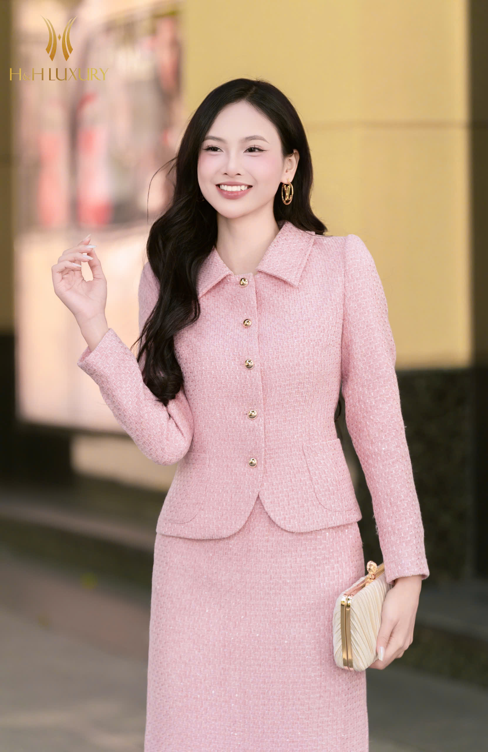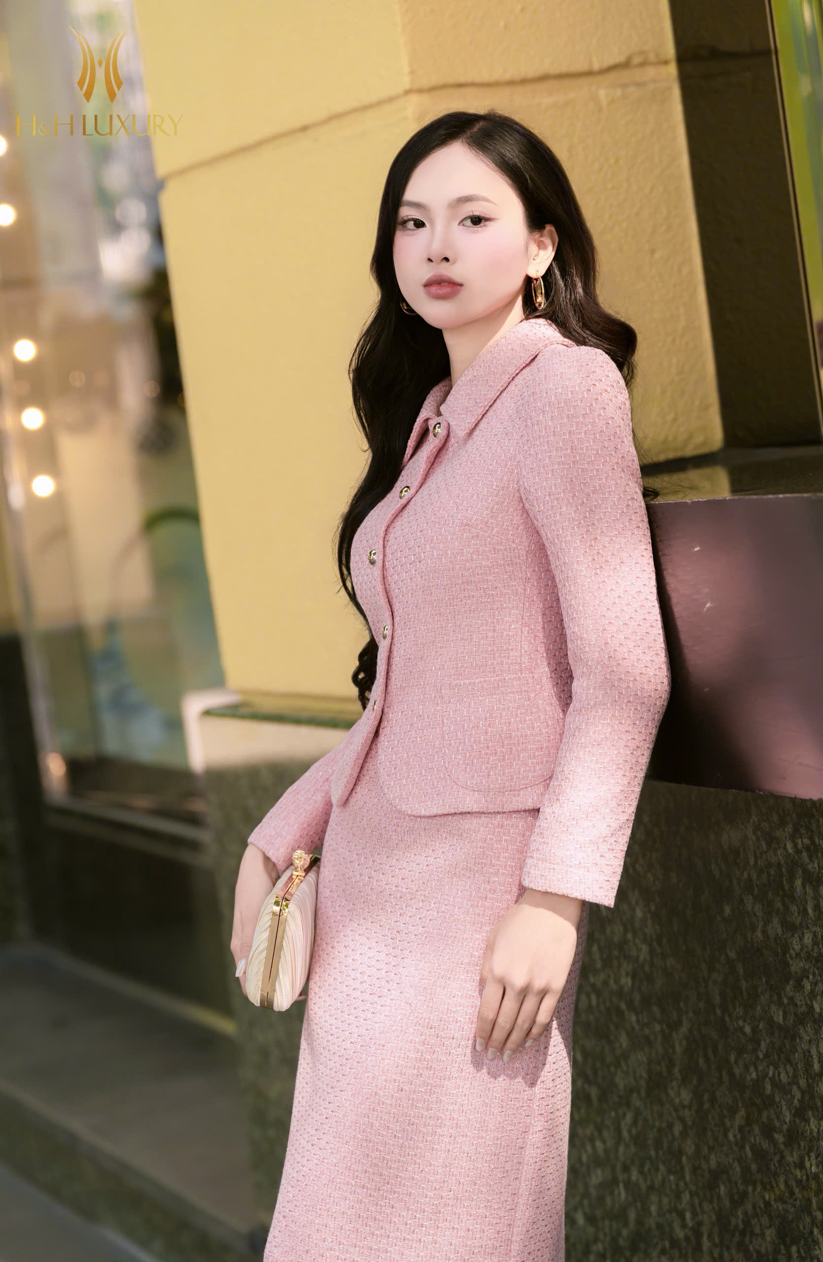CHÂN VÁY DẠ TWEED HỒNG