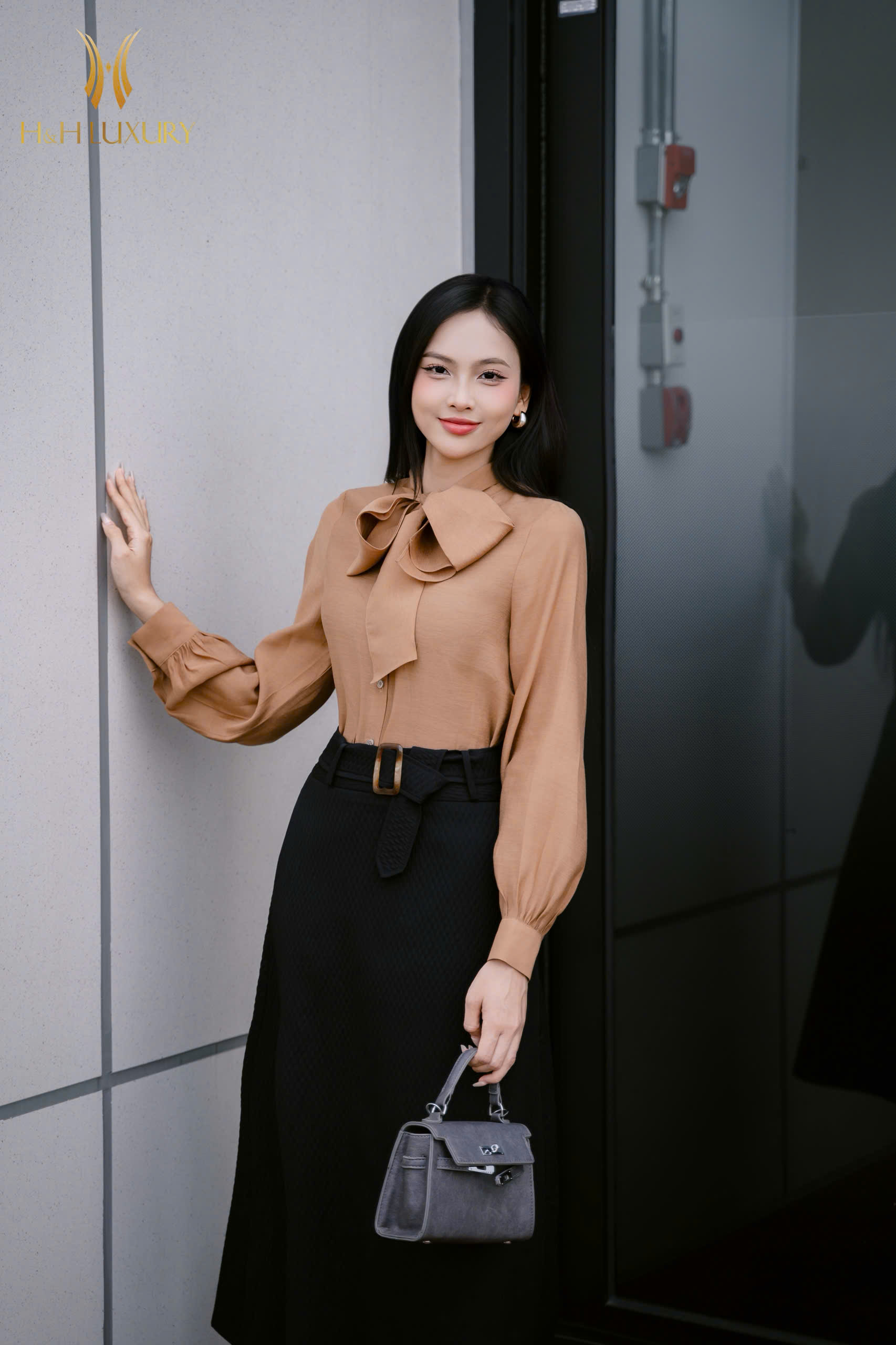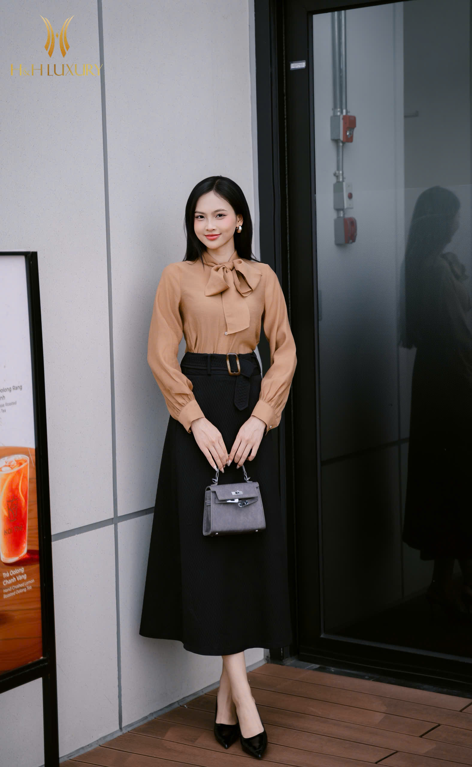 CHÂN VÁY ĐEN QUẢ TRÁM ĐAI EO