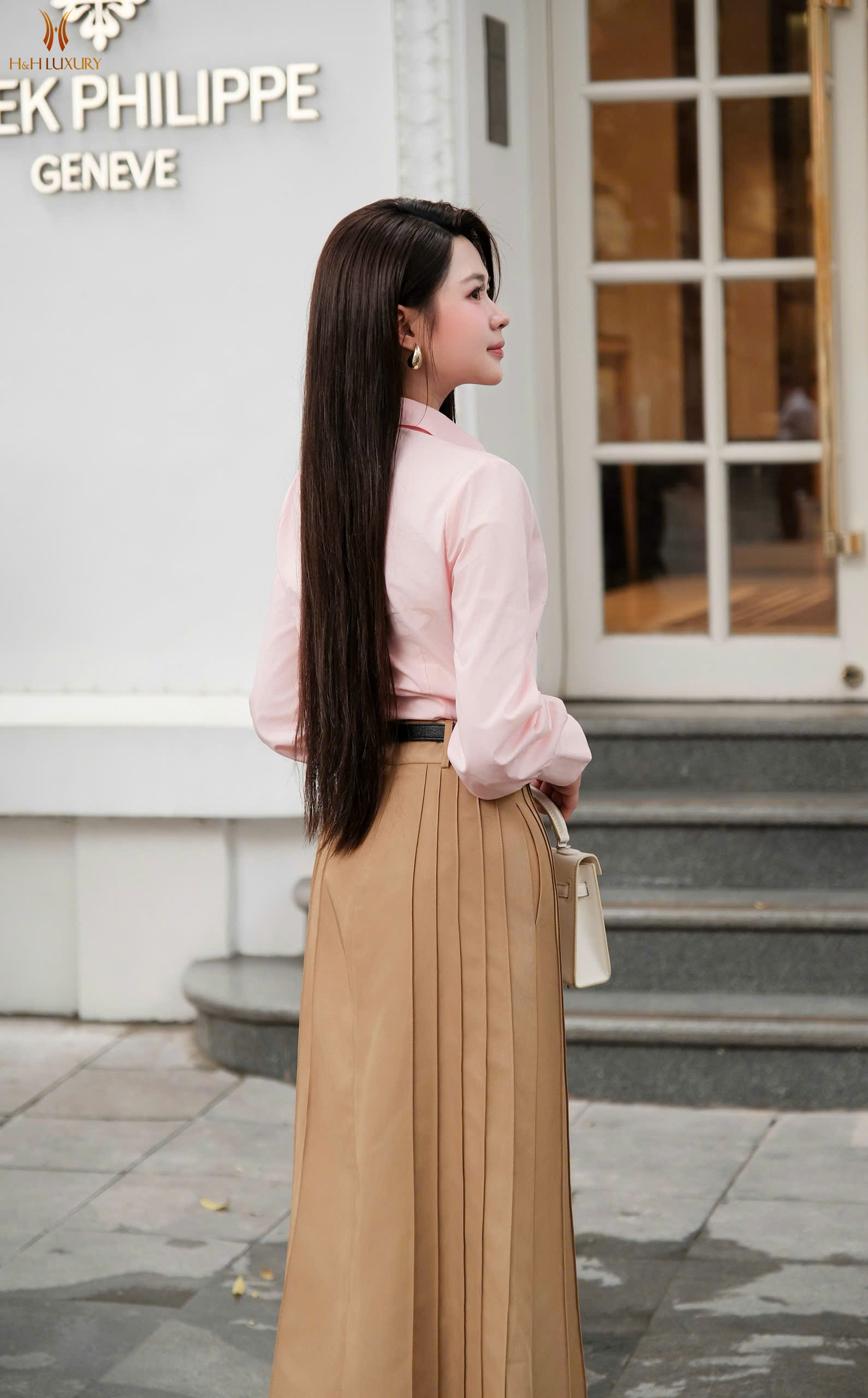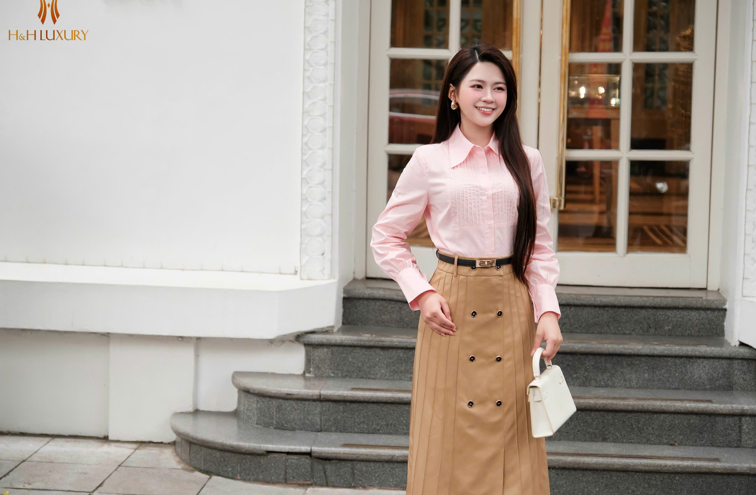 CHÂN VÁY KAKI NÂU BÒ MÍ THÂN ĐÍNH CÚC