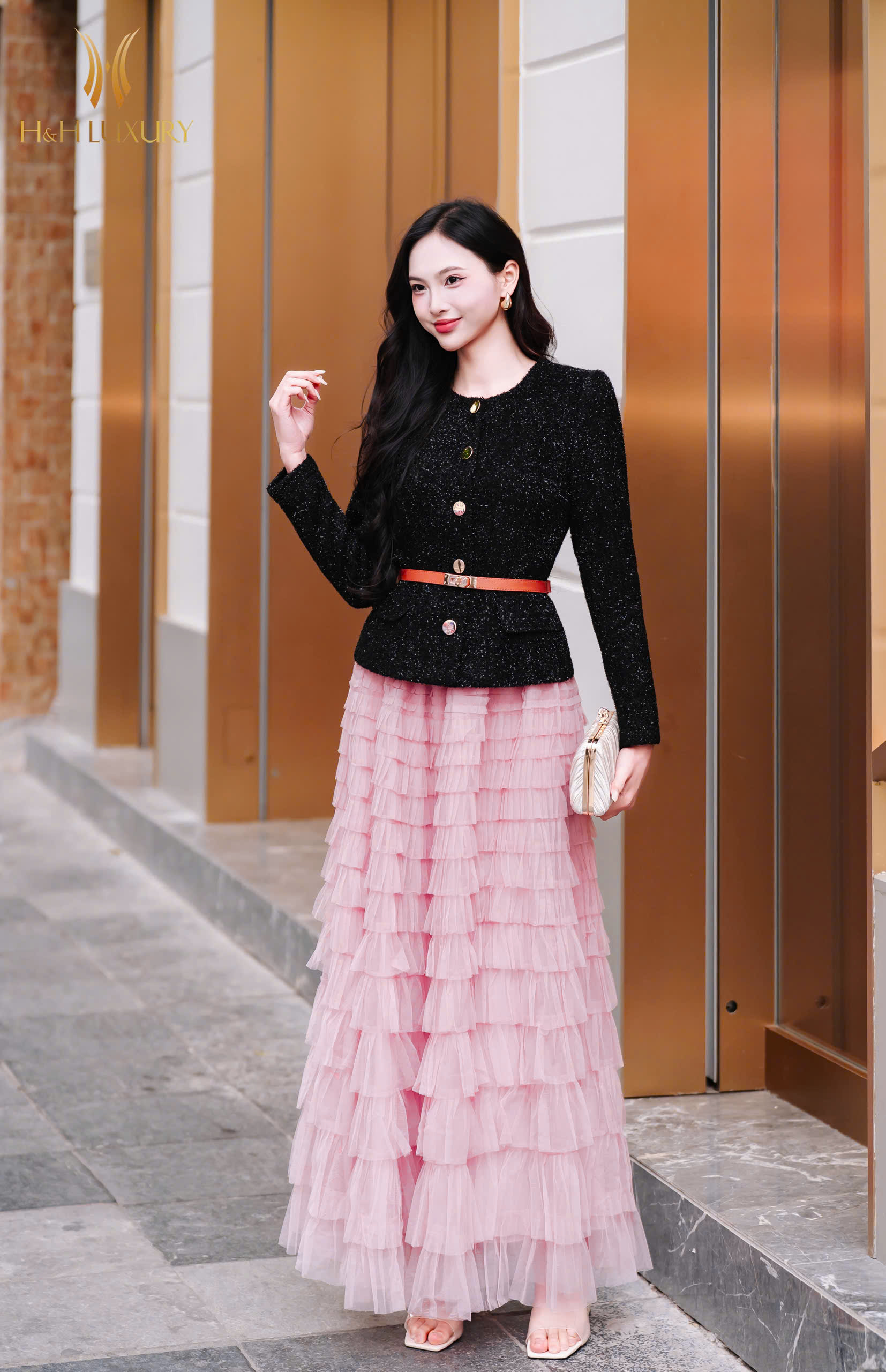 CHÂN VÁY REN LƯỚI HỒNG