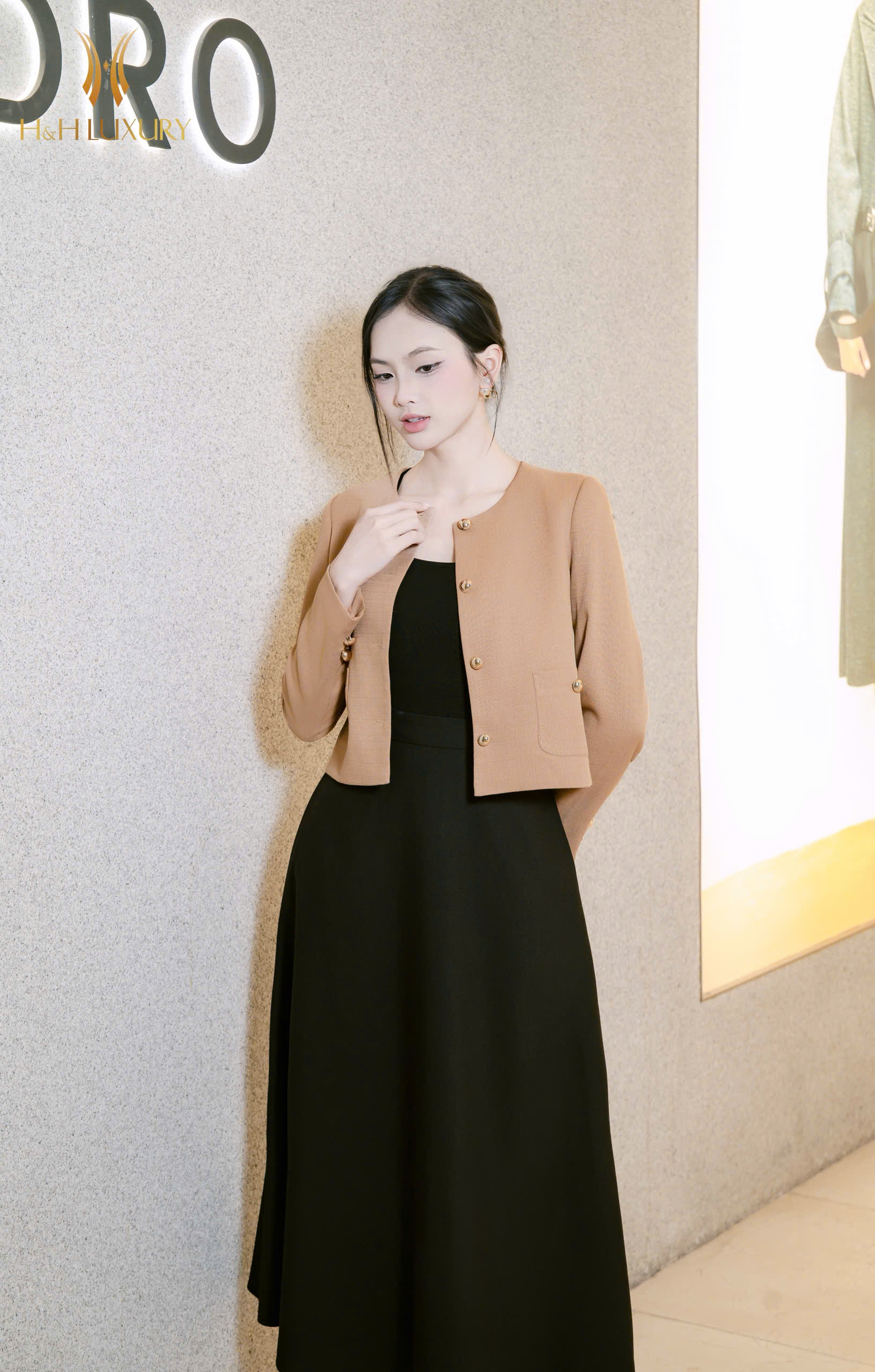 CHÂN VÁY TWEED NÂU TÂY HAI TÚI