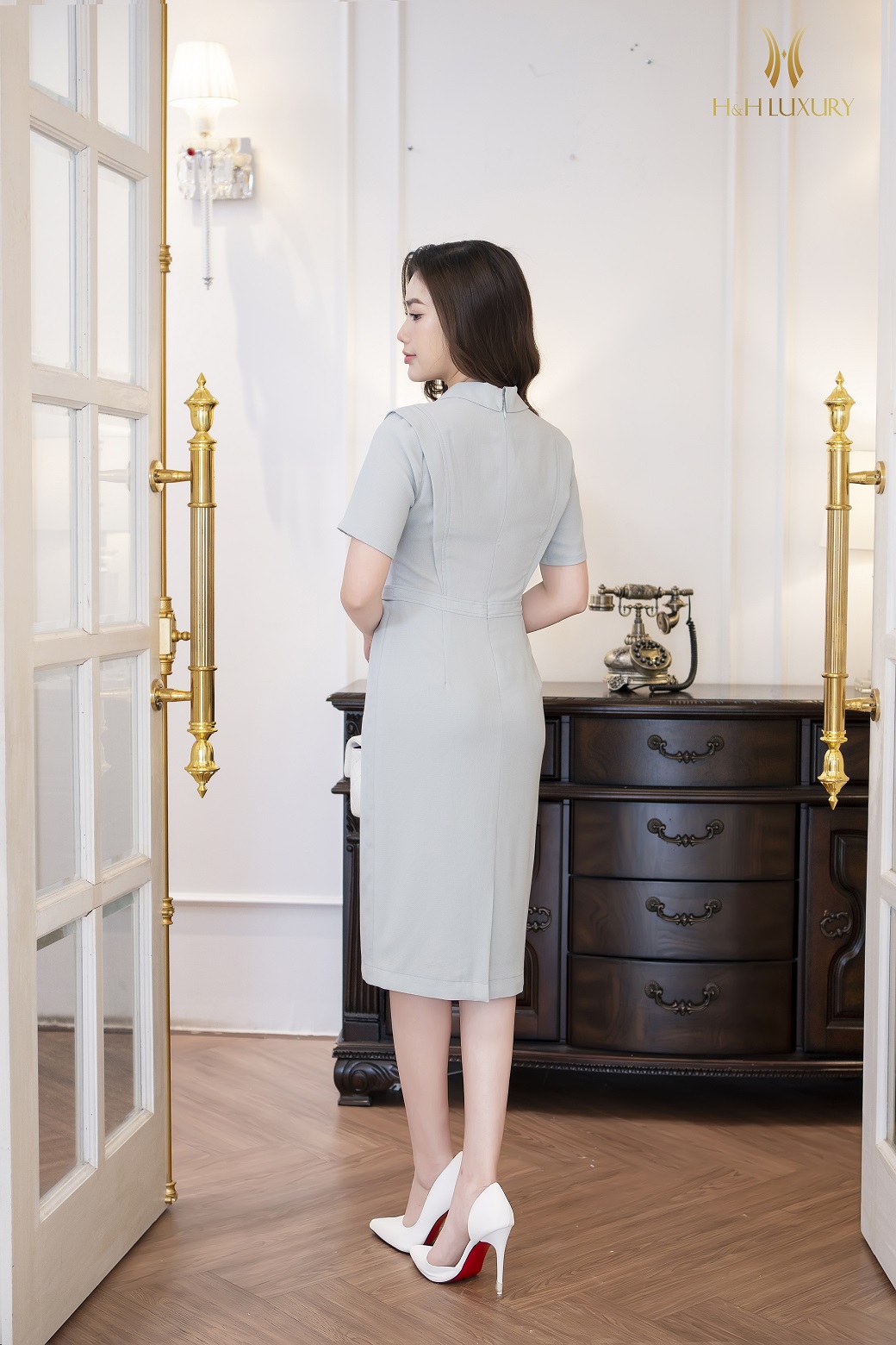 ĐẦM BÚT CHÌ XANH PASTEL VỔ VEST
