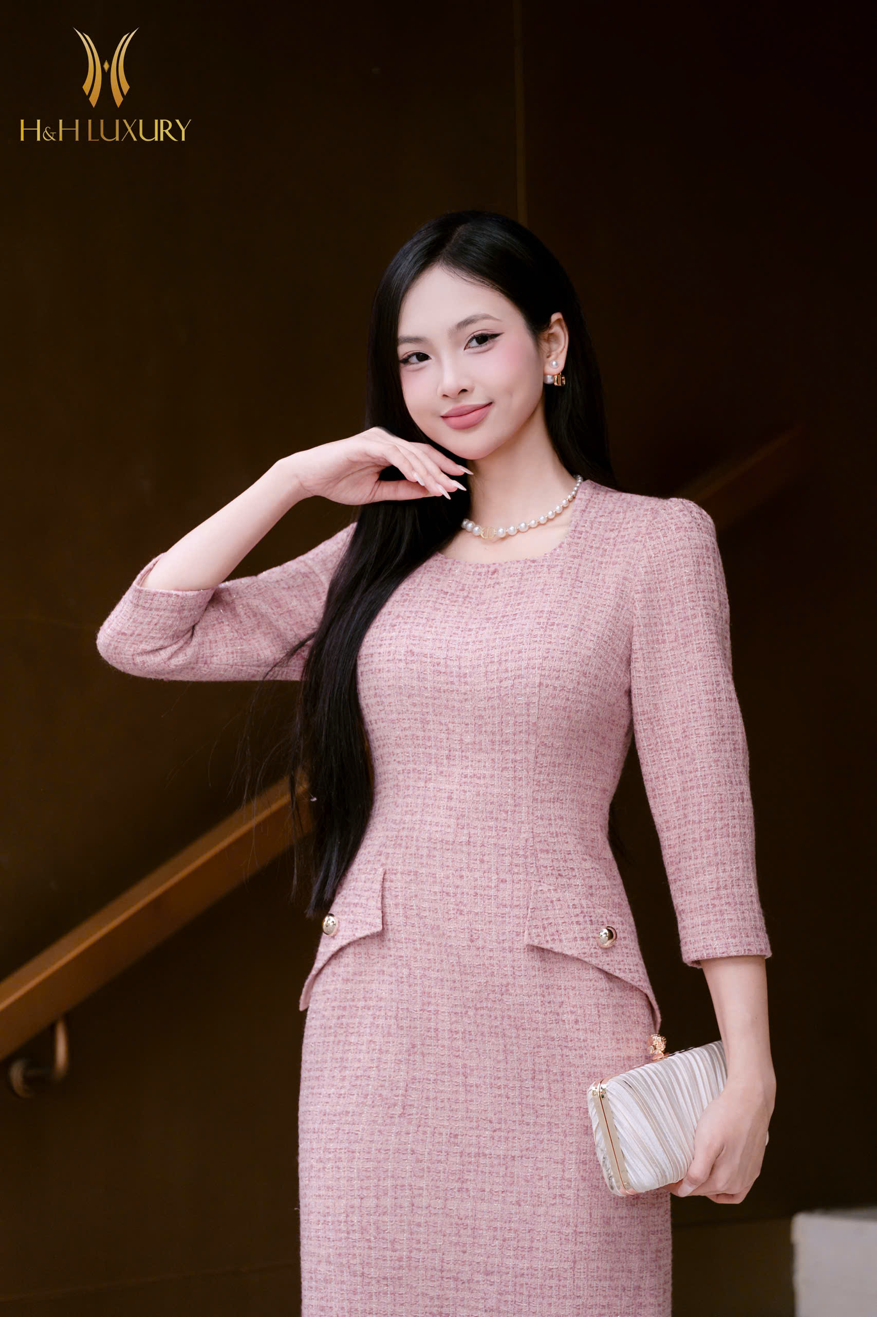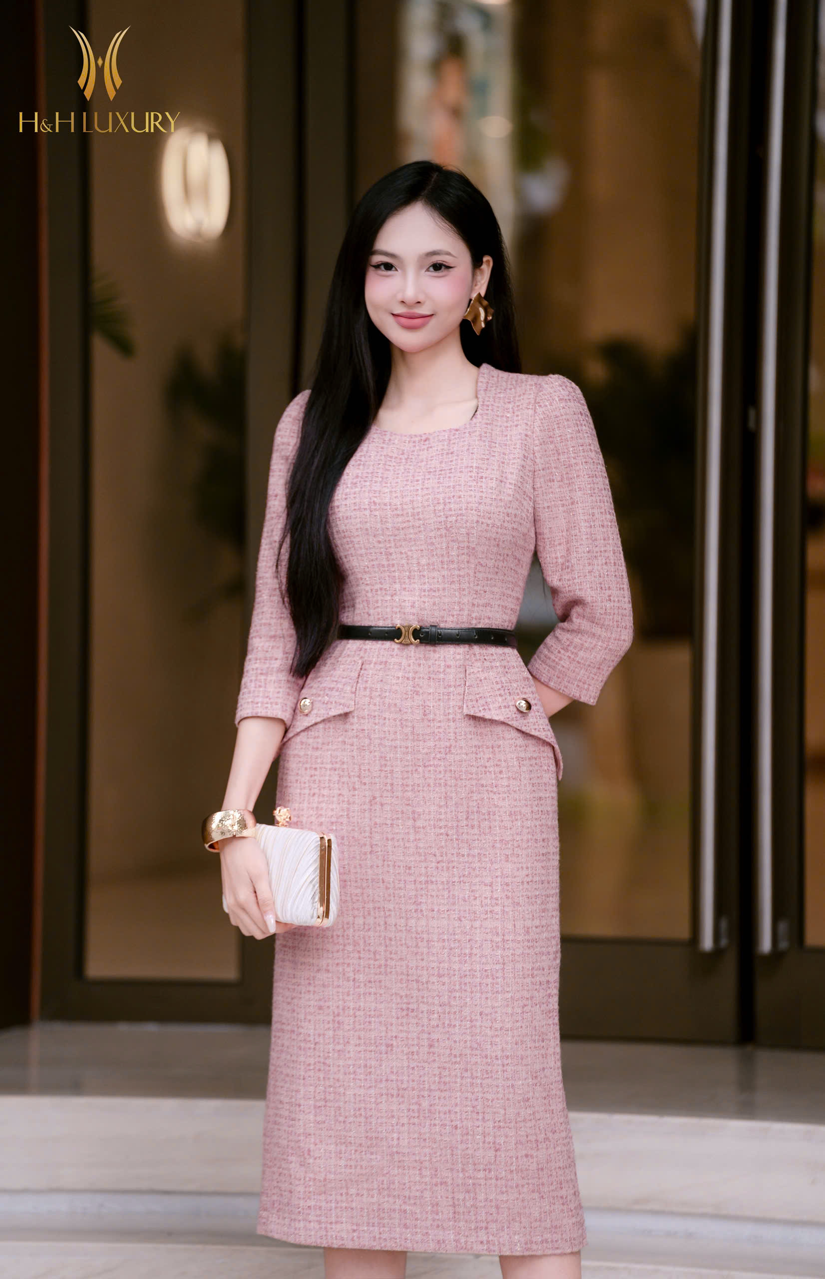 ĐẦM BÚT CHÌ XUÔNG DẠ TWEED HỒNG