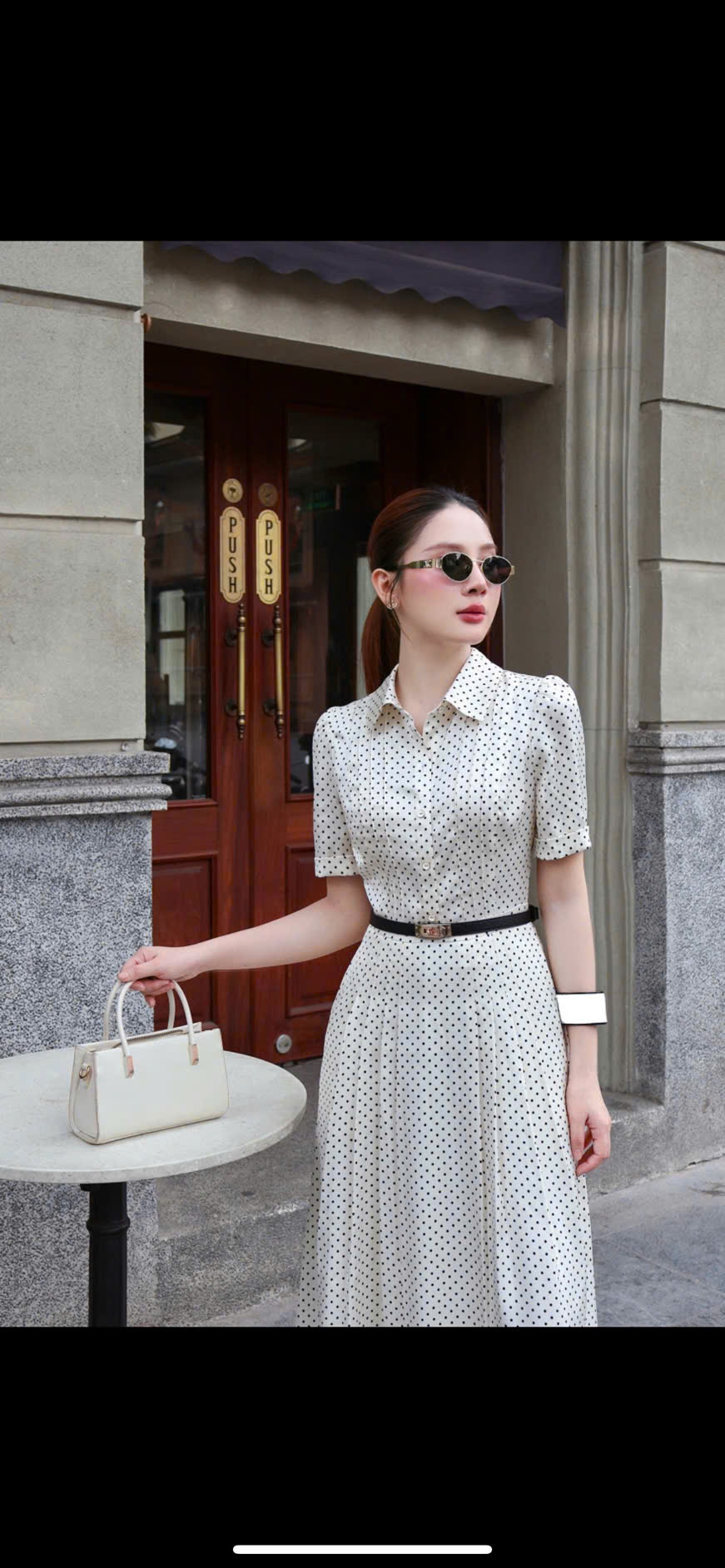 ĐẦM CHẤM BI KEM CỔ ĐỨC 2 TÚI SƯỜN