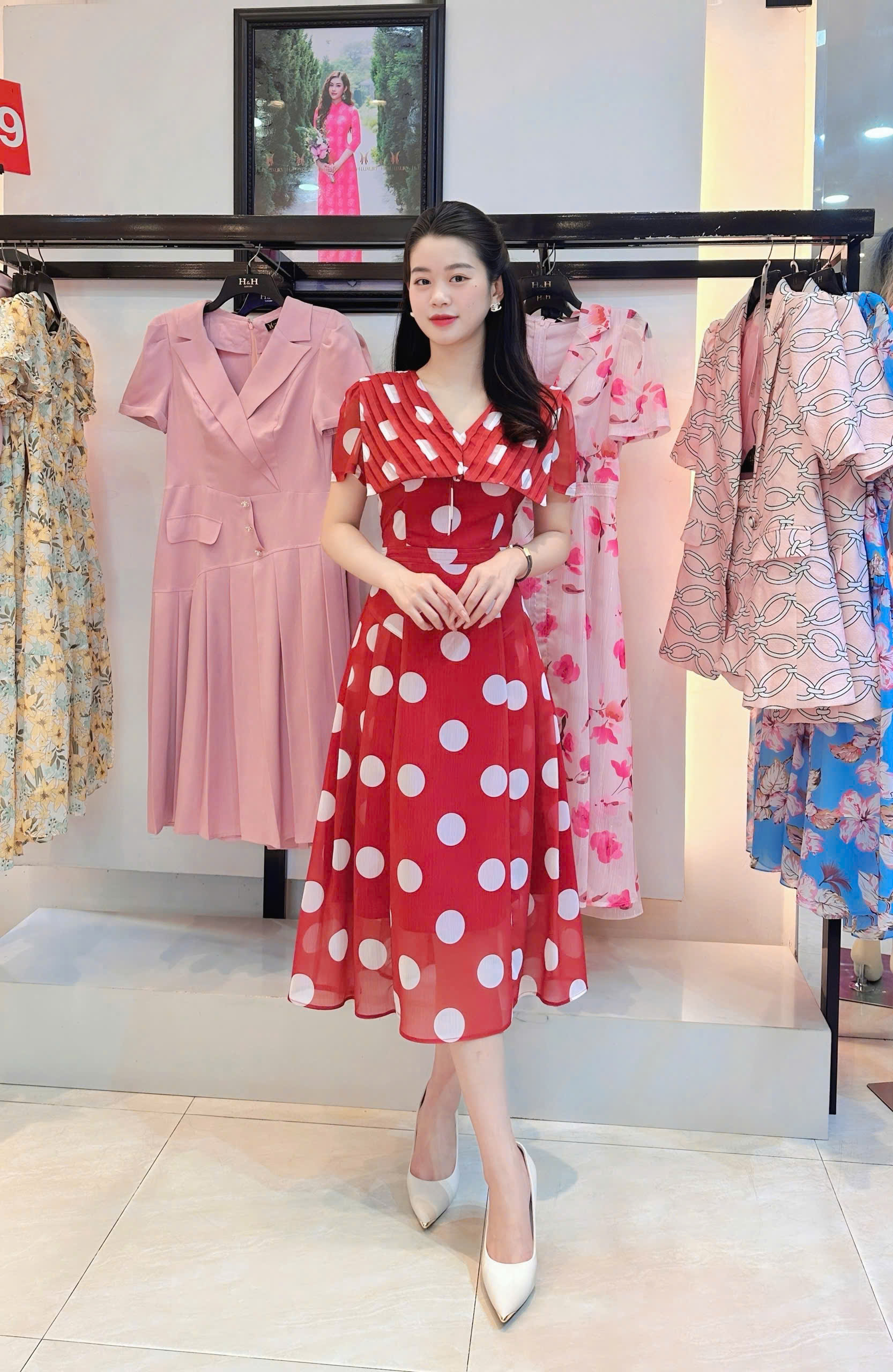 ĐẦM CỜ TƠ BI ĐỎ NHUNG XẾP LY TÀ NGỰC