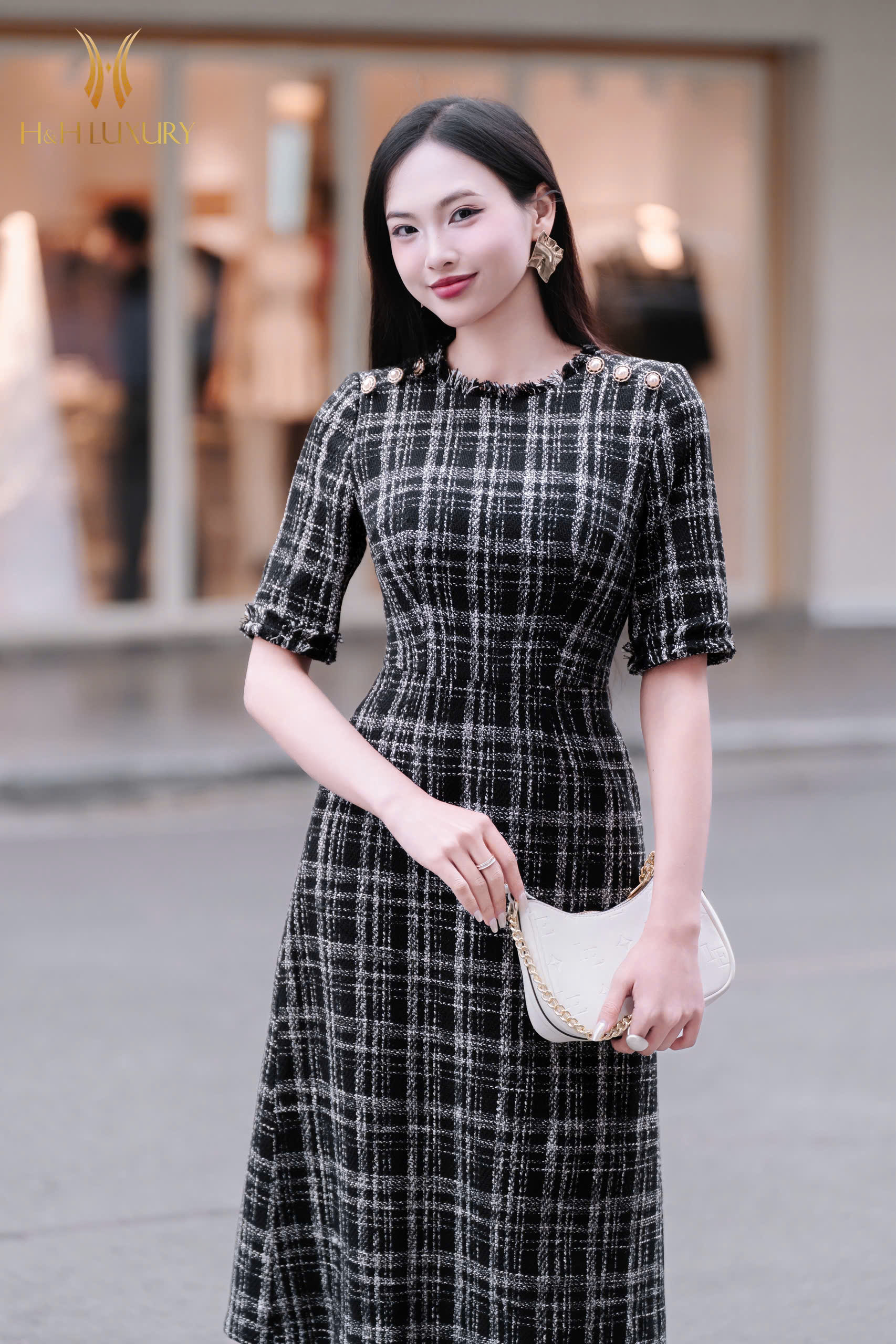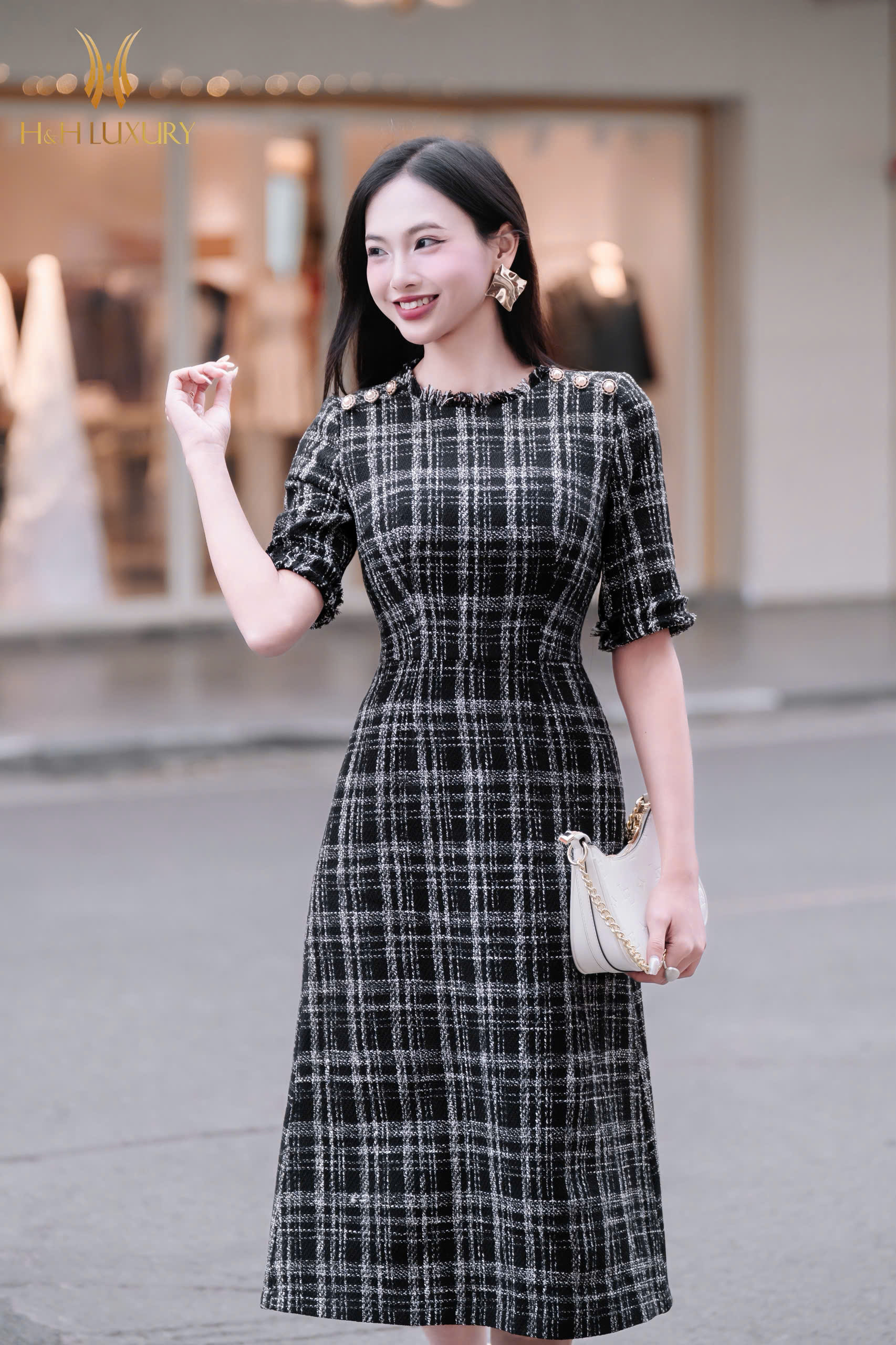 ĐẦM DẠ TWEED ÔM A CÚC VAI