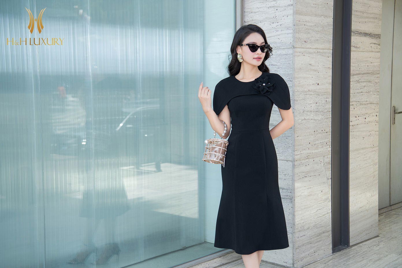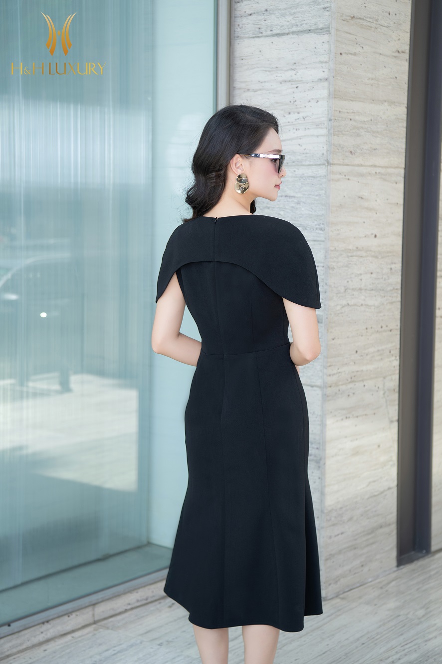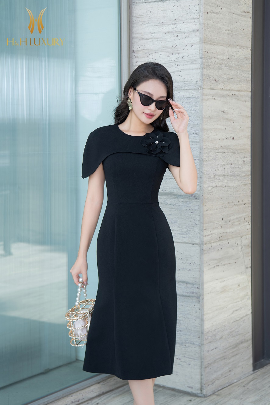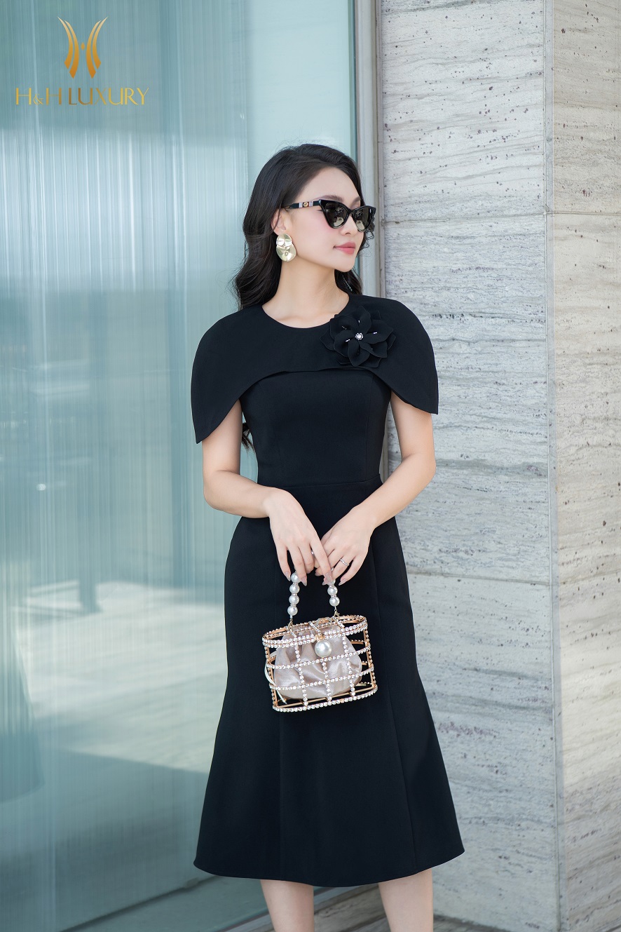 ĐẦM ĐEN ĐUÔI CÁ ĐÍNH HOA NGỰC