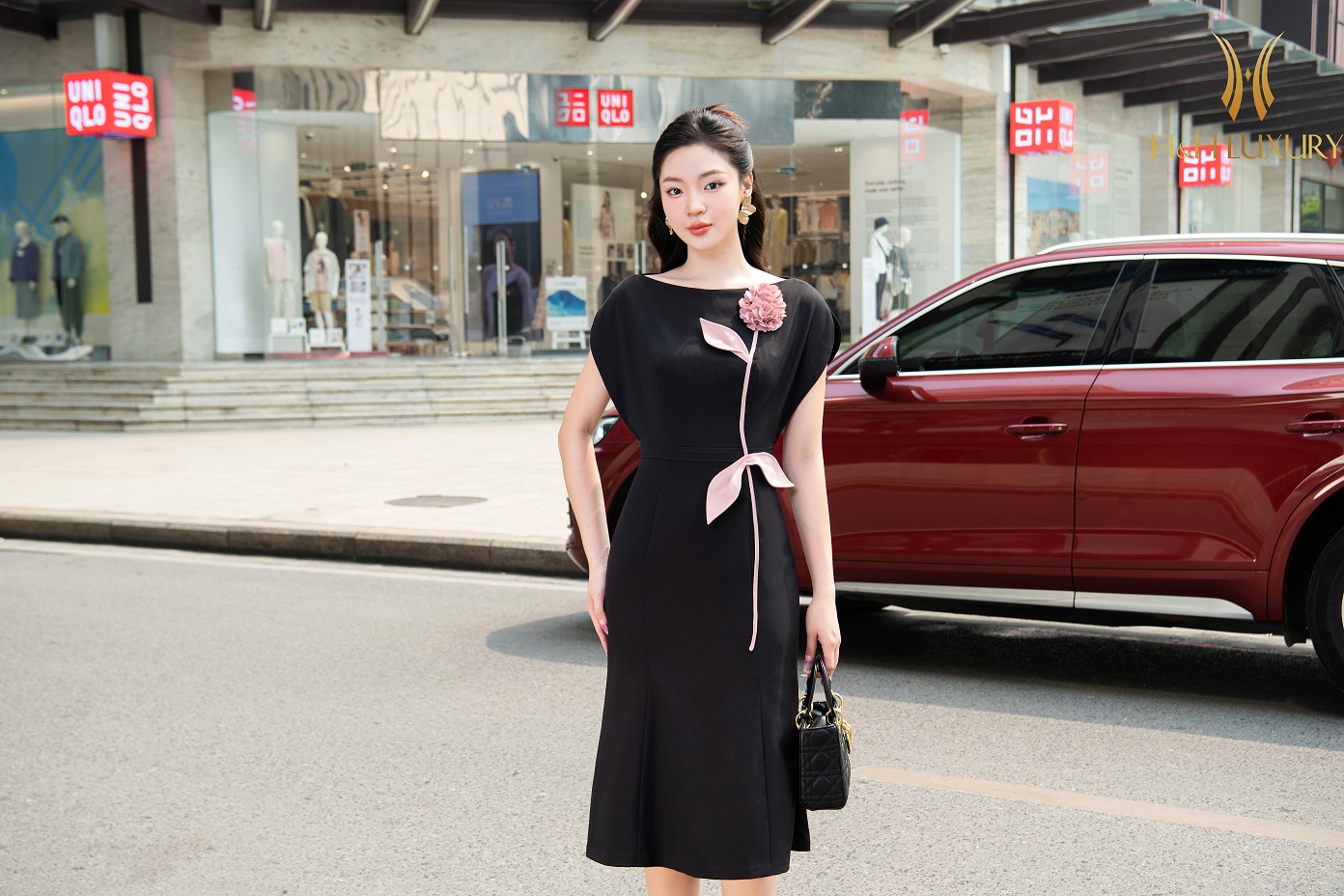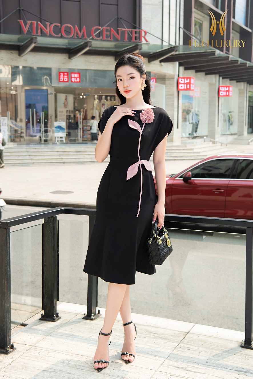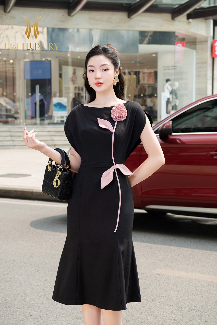 ĐẦM ĐUÔI CÁ ĐEN ĐÍNH HOA 3D