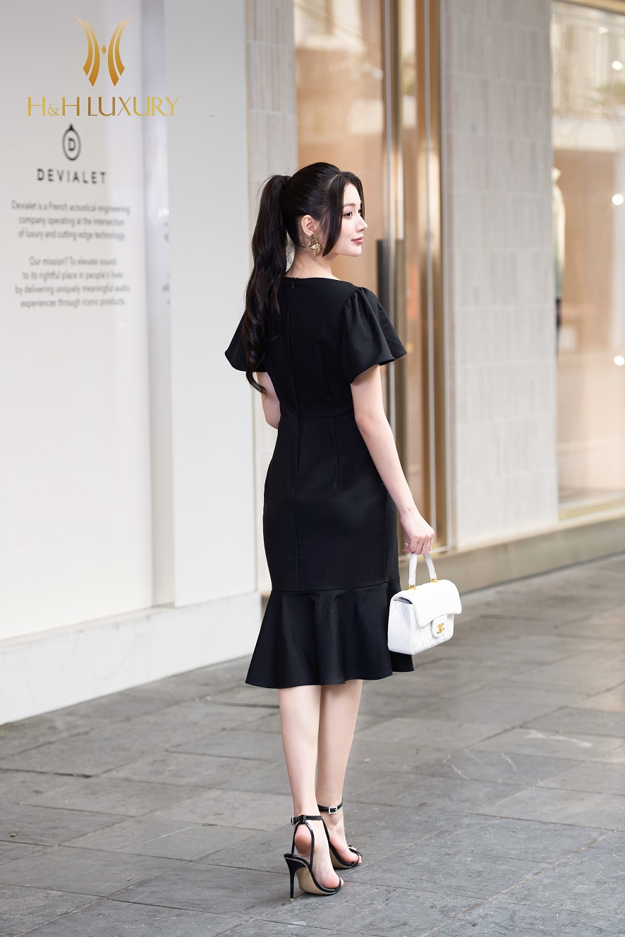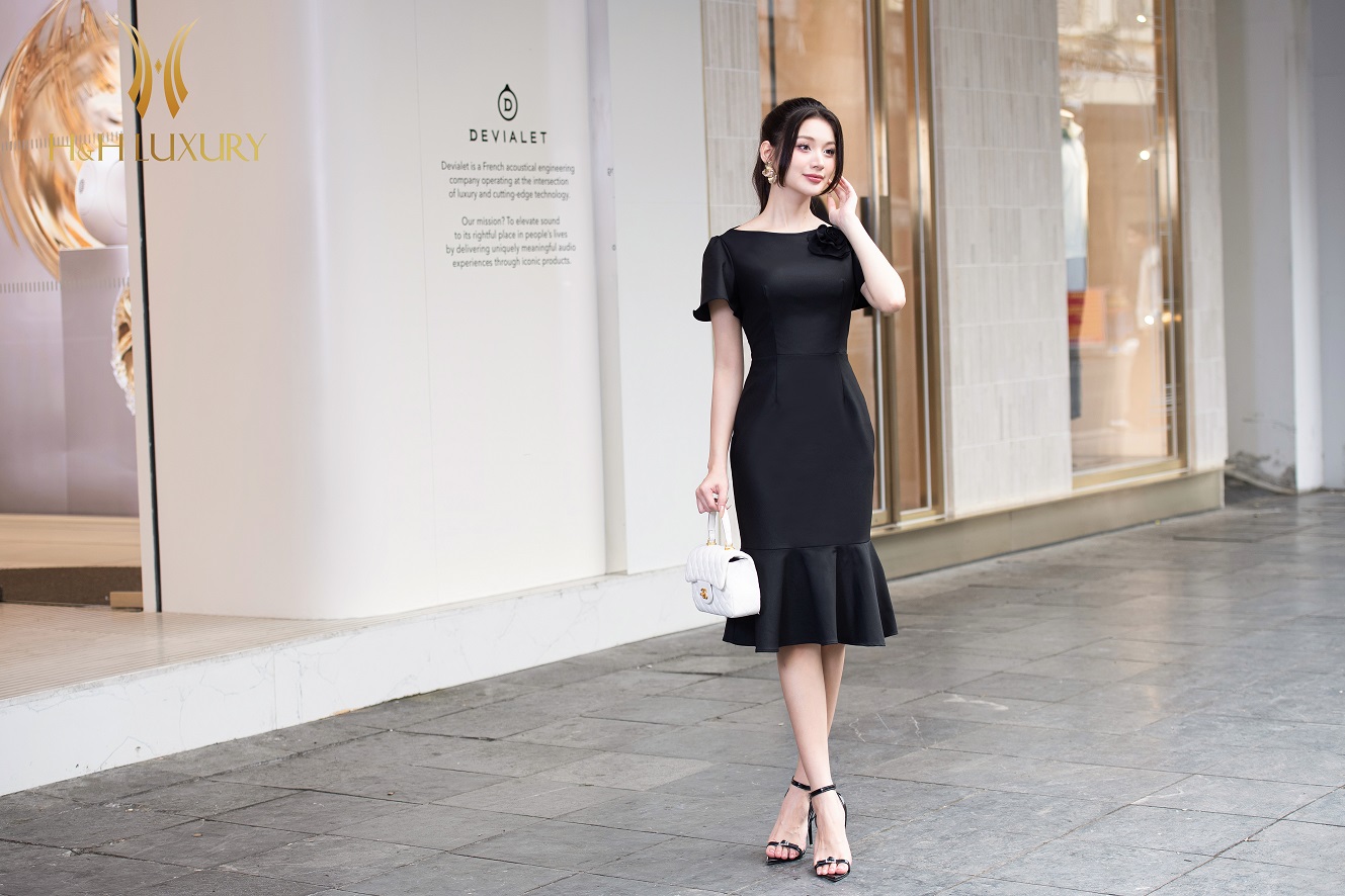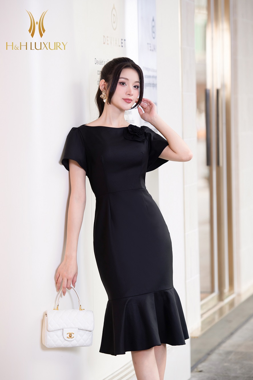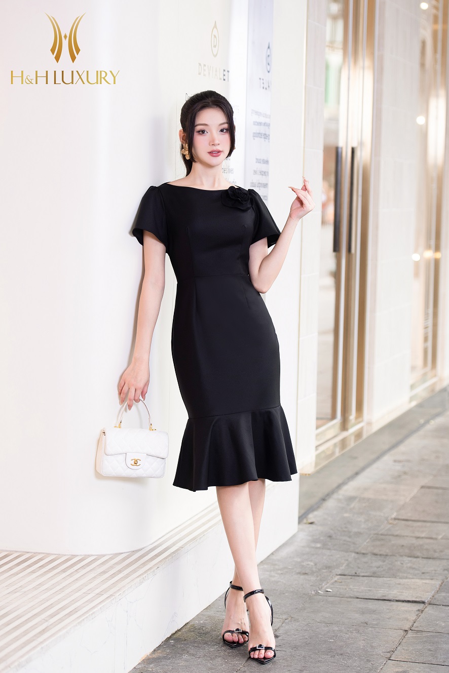 ĐẦM ĐUÔI CÁ ĐEN ĐÍNH HOA NGỰC
