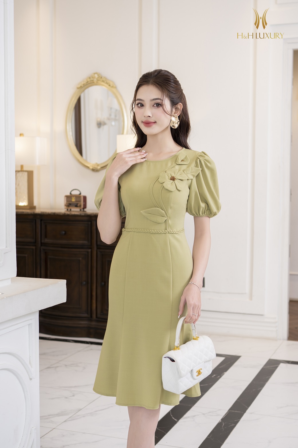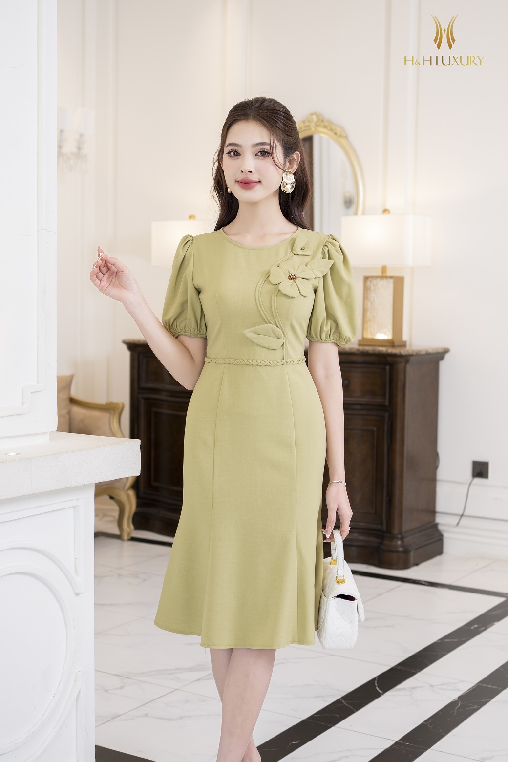 Đầm đuôi cá vàng chéo Nhật hoa 3D đính đá