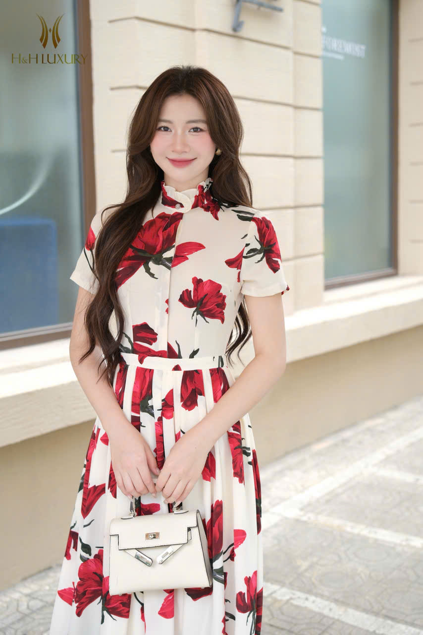 ĐẦM HOA HỒNG ĐỎ XẾP LY THÂN