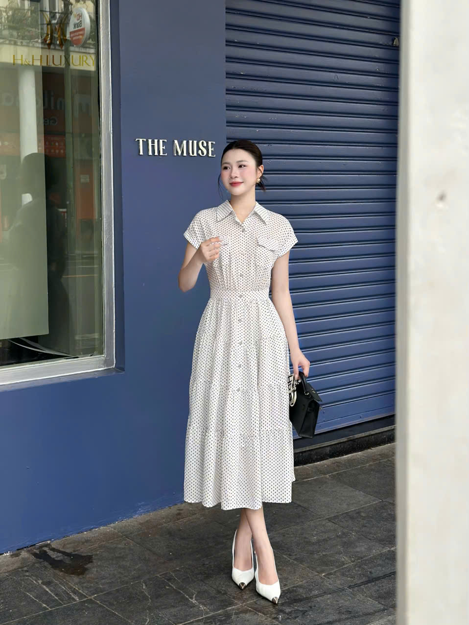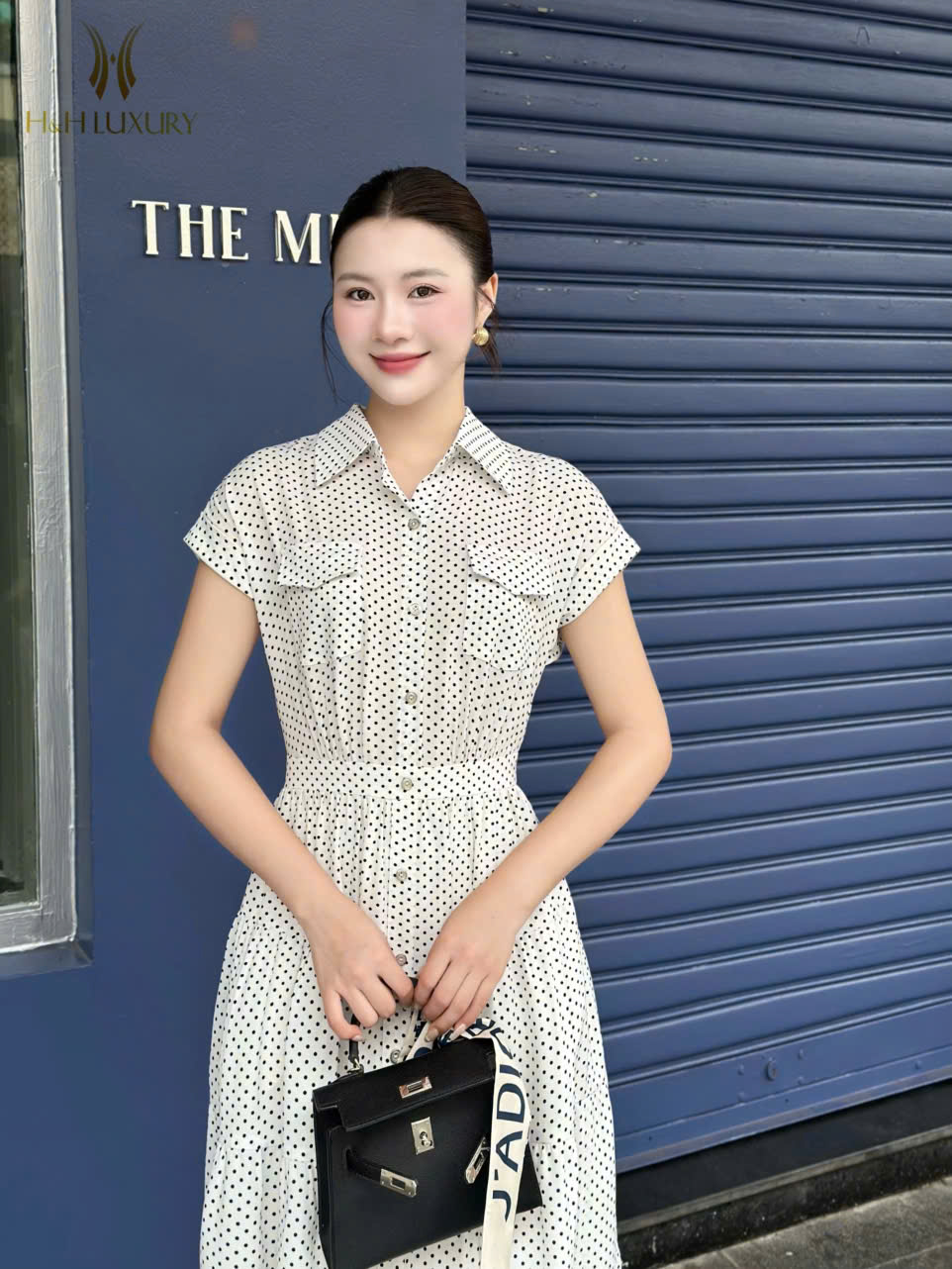 ĐẦM LỤA CHẤM BI TRẮNG CỔ ĐỨC 2 TÚI