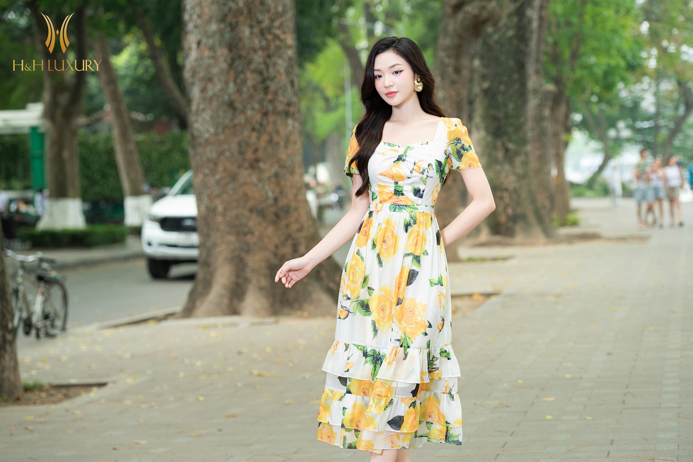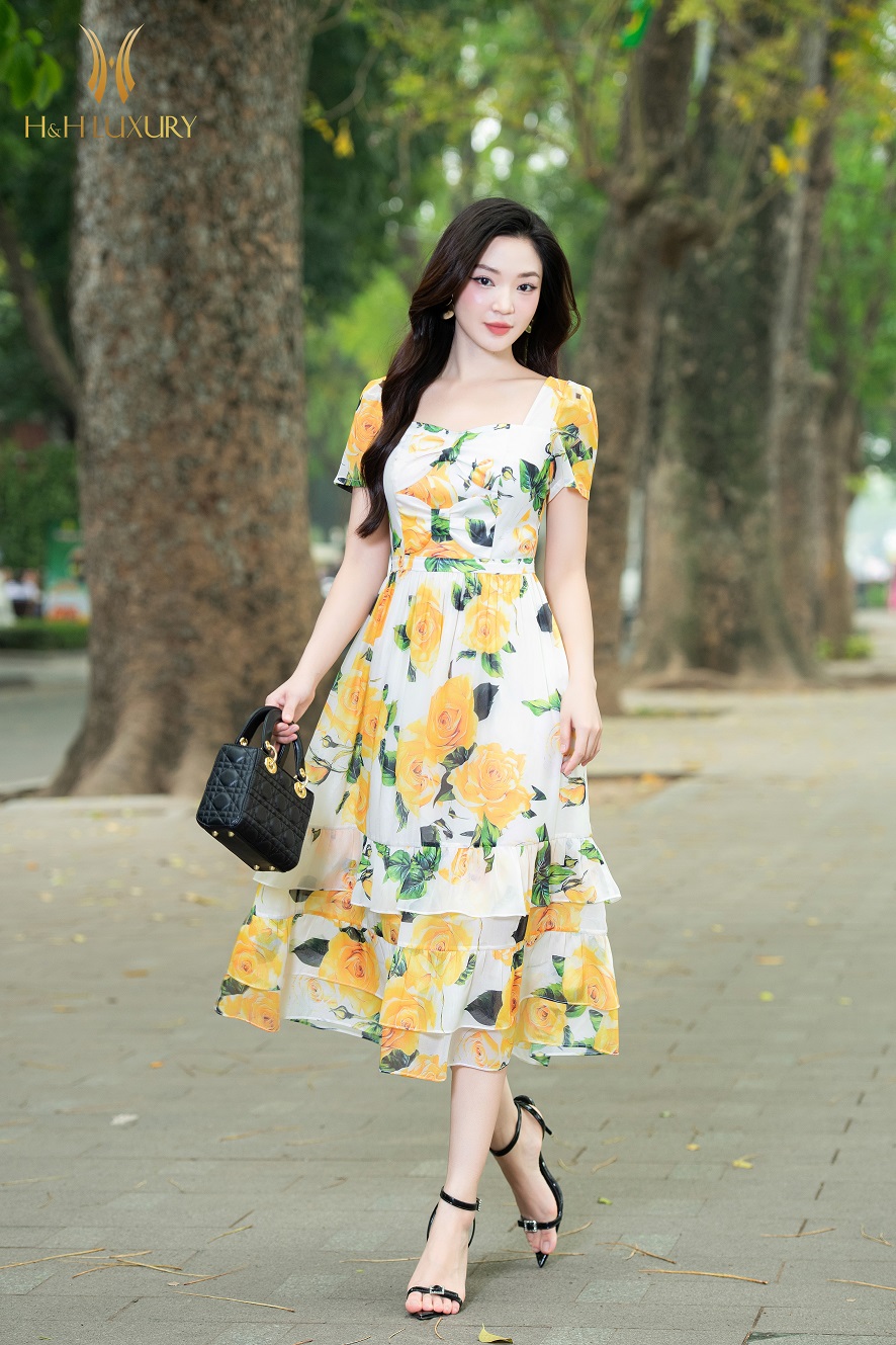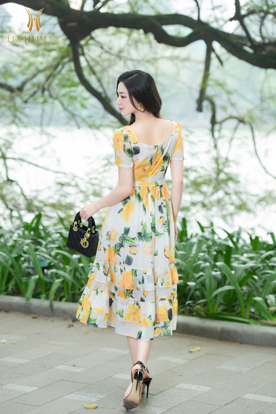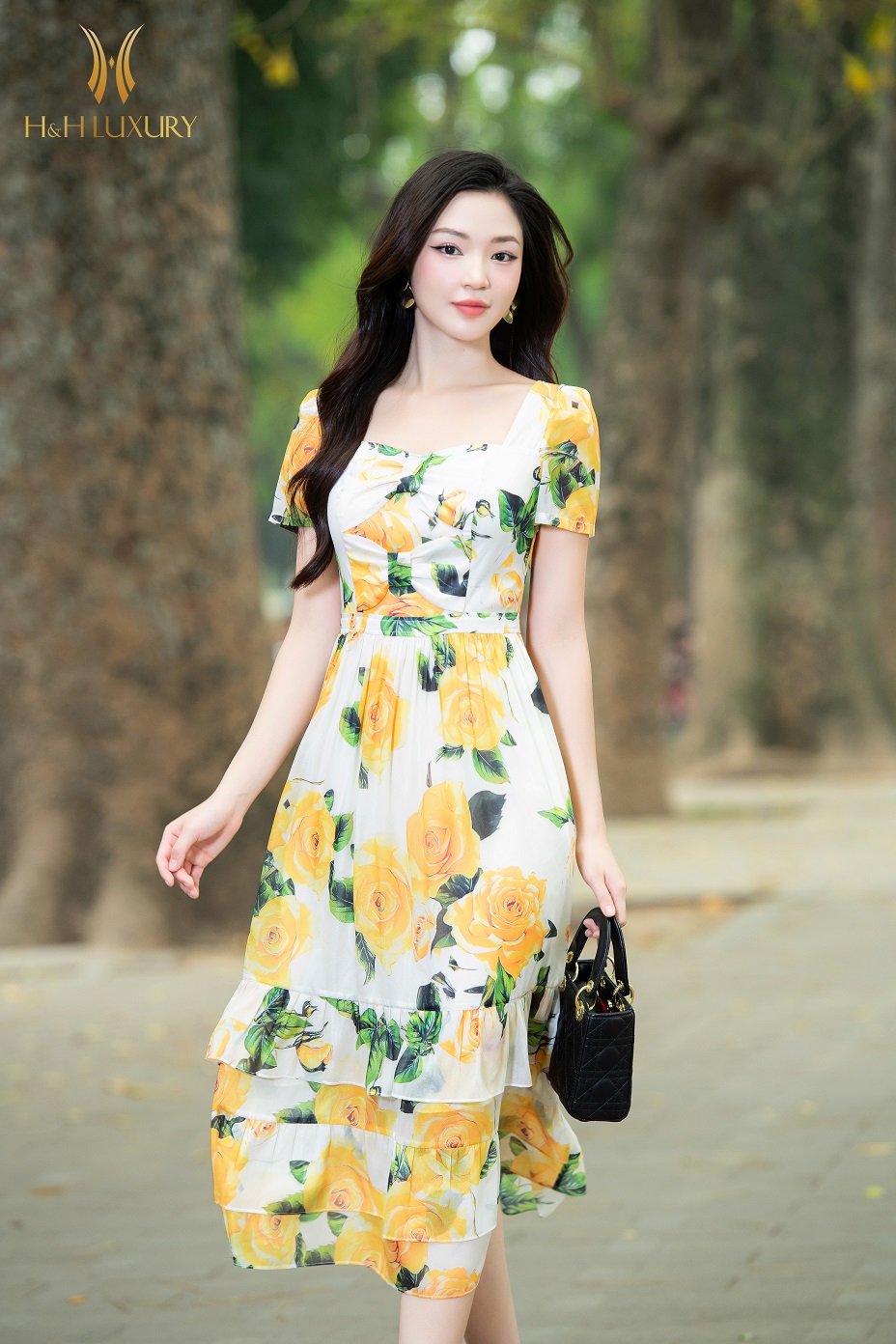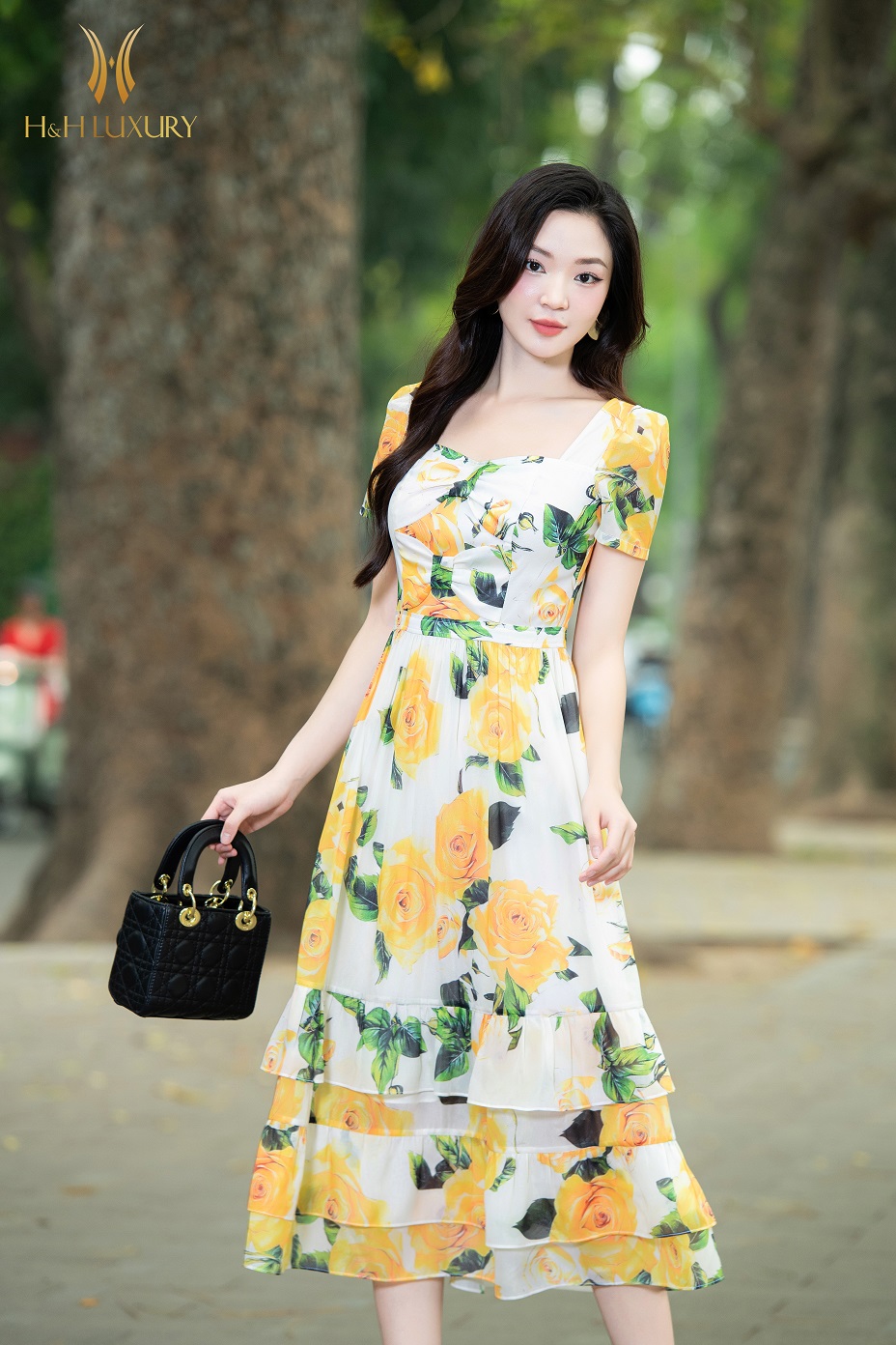 ĐẦM MAXI CỔ VUÔNG NƠ NGỰC