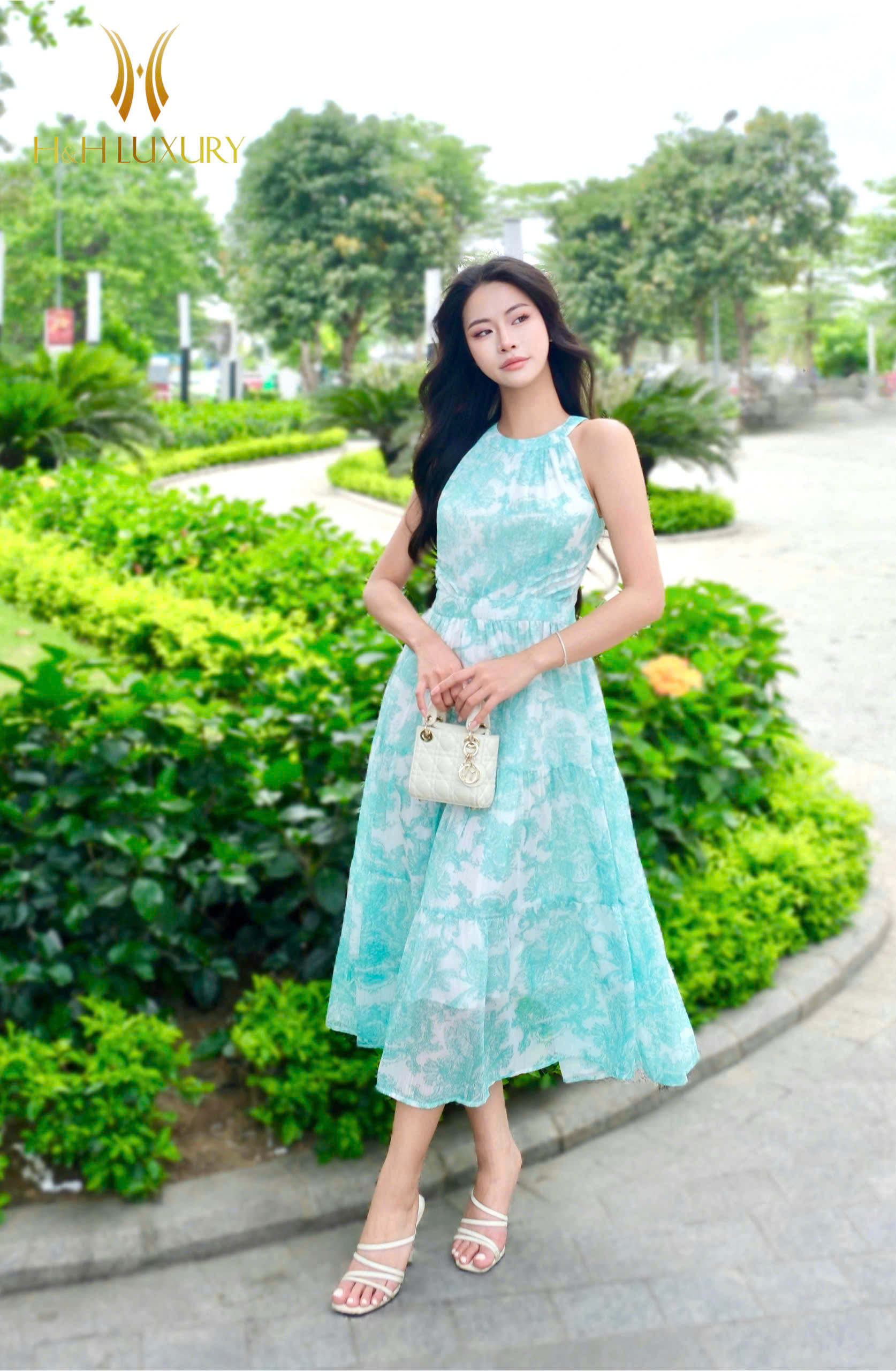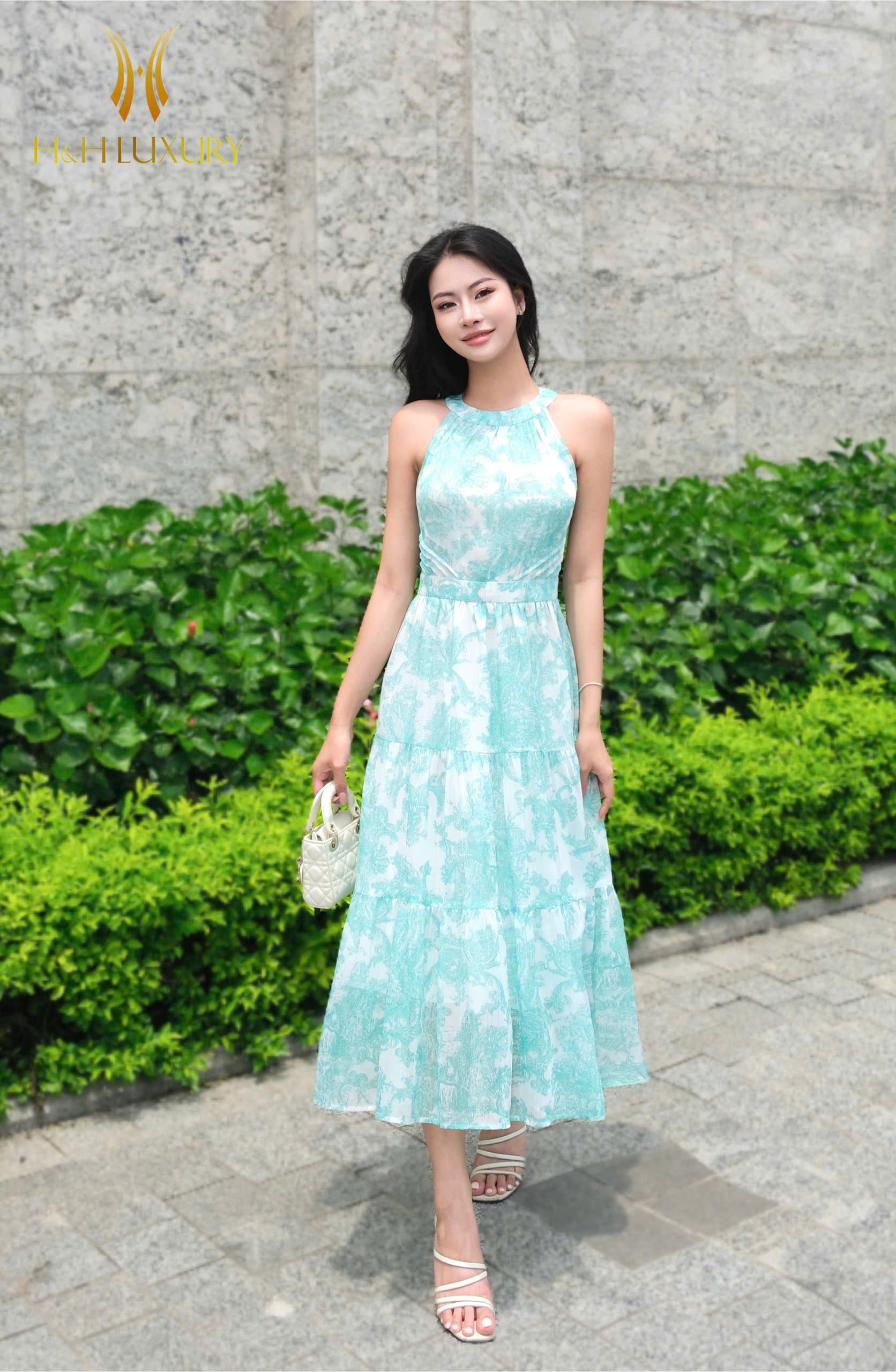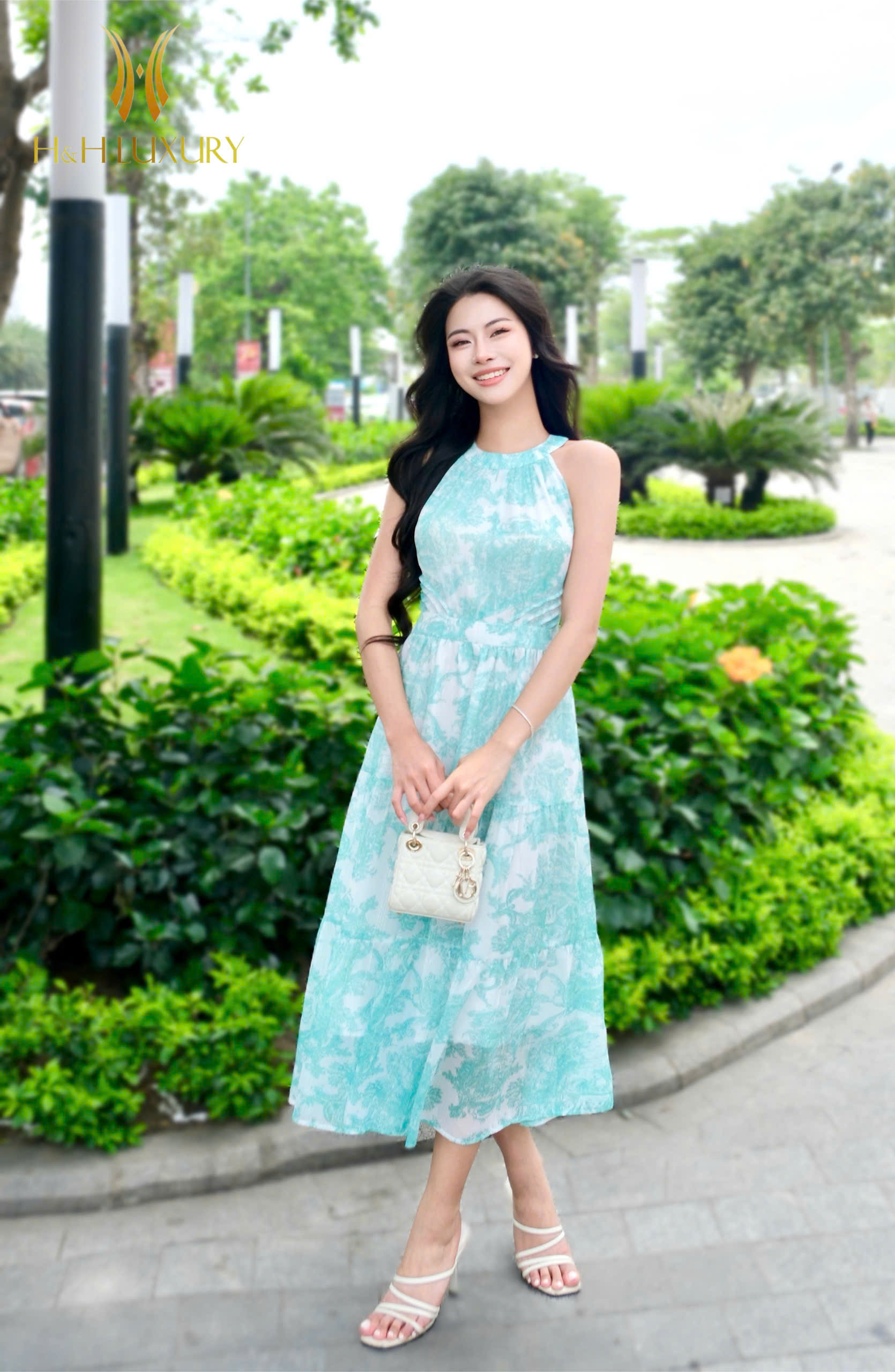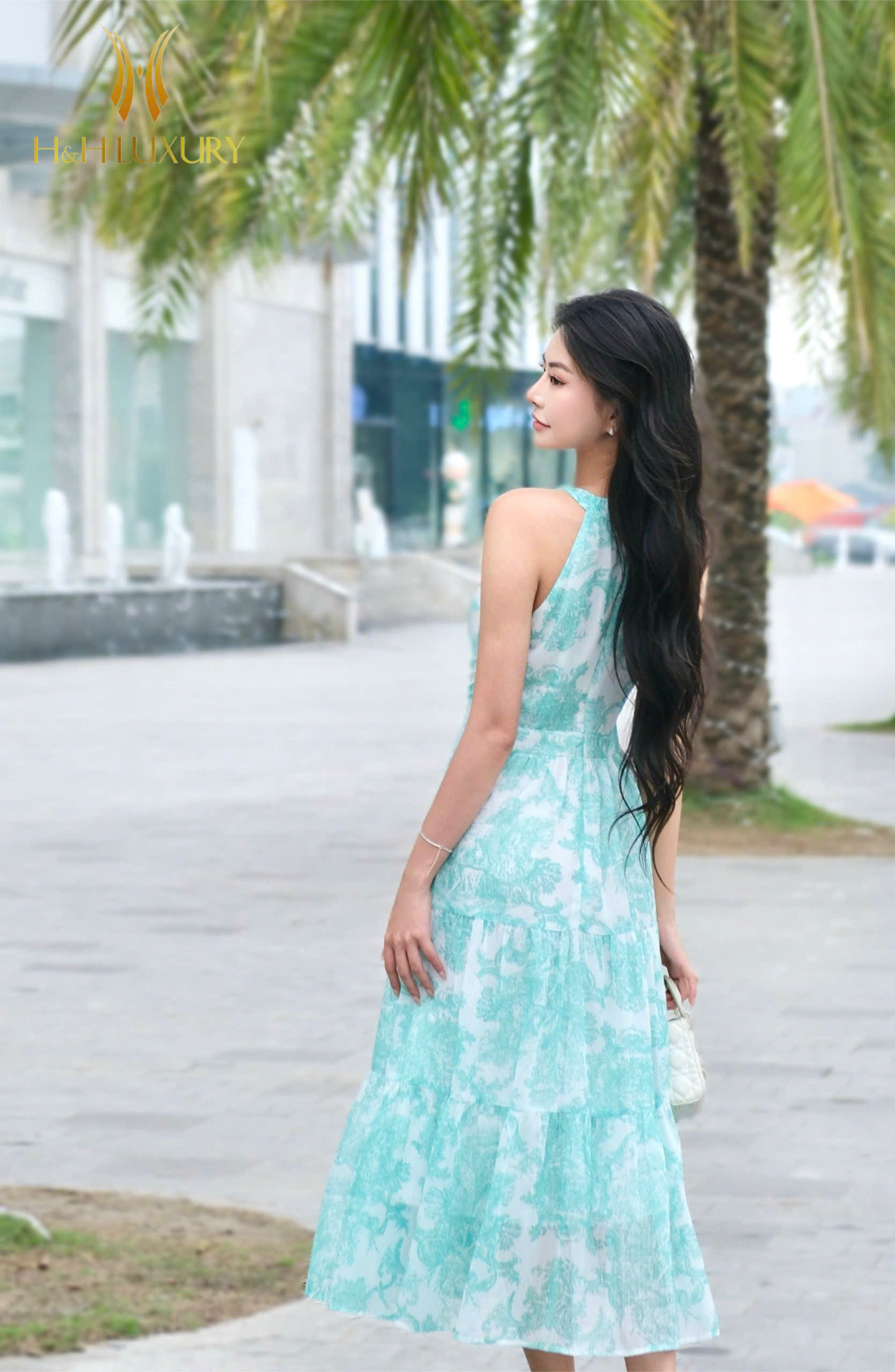 ĐẦM MAXI CỔ YẾM XANH NGỌC