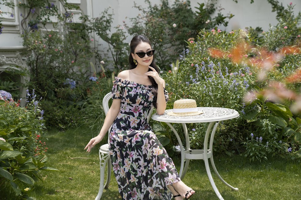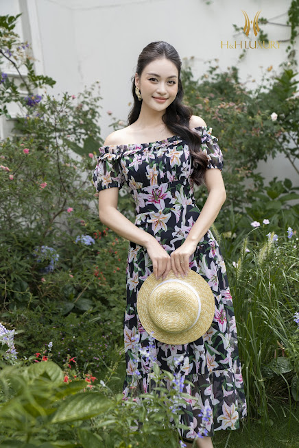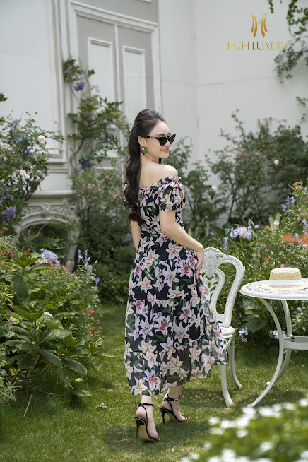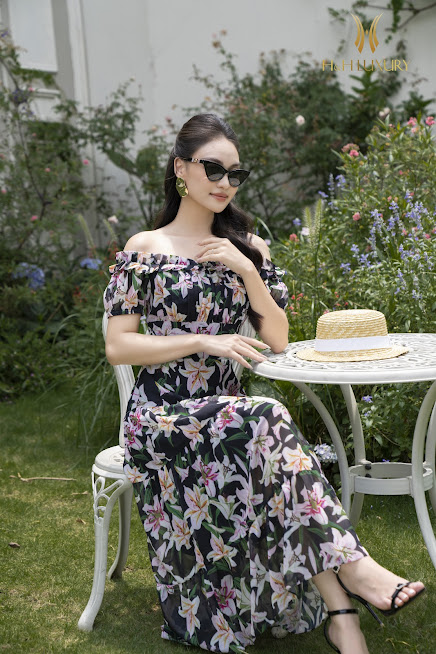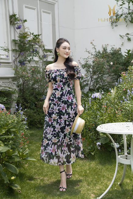 ĐẦM MAXI HOA LY TƠ HÀN CAO CẤP XẾP LY VAI