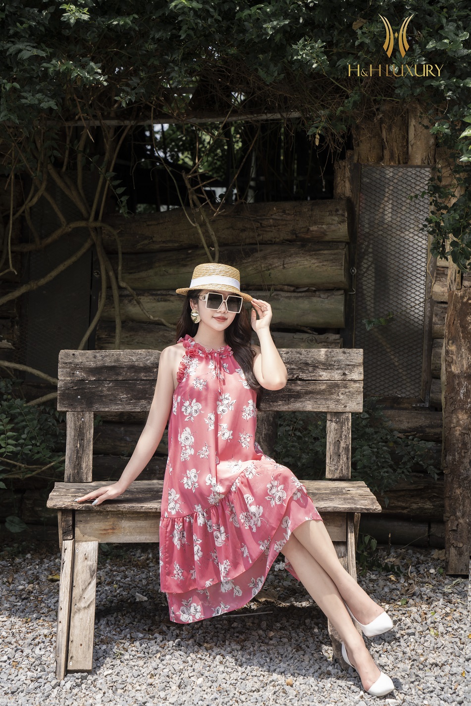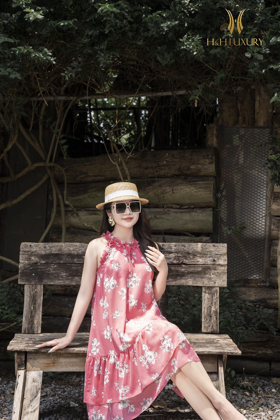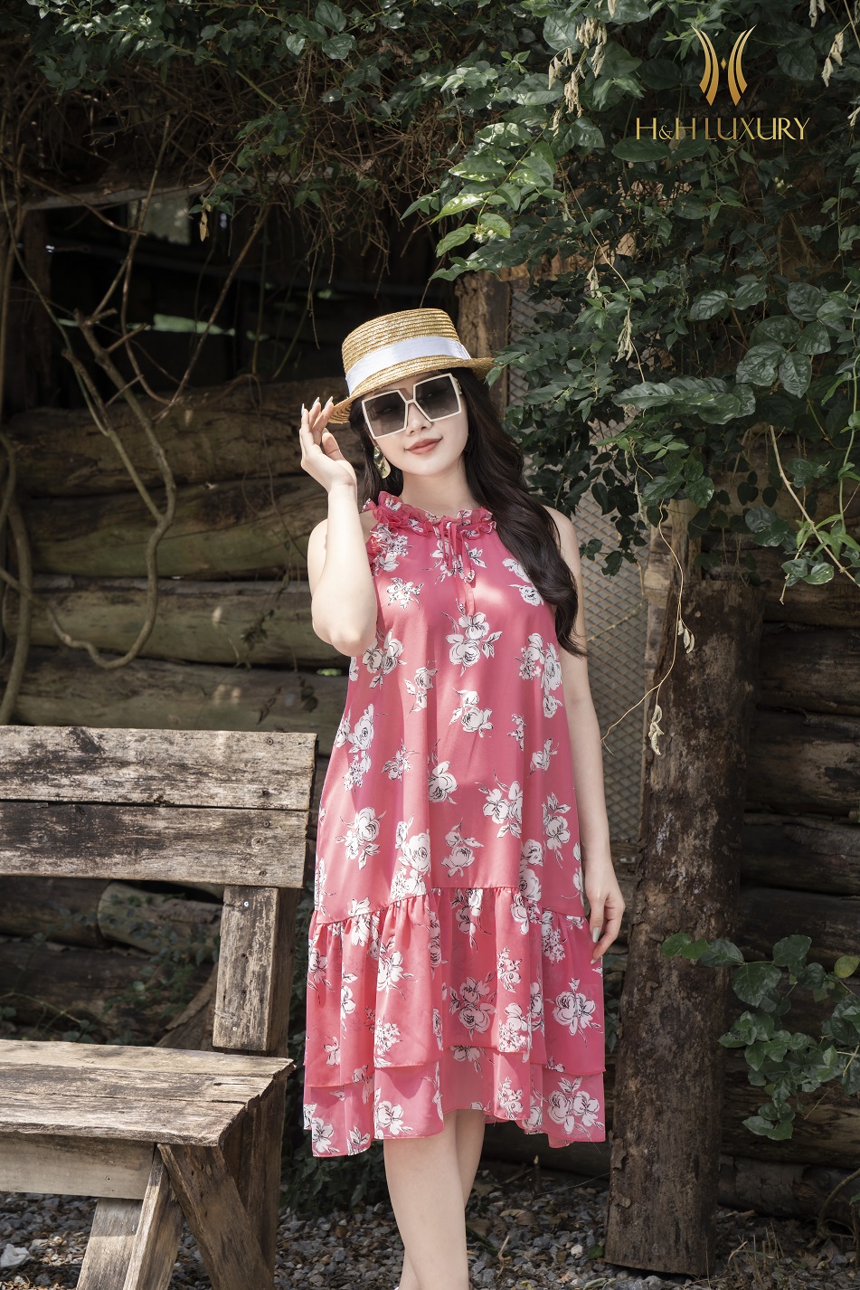 ĐẦM MAXI HỒNG HOẠ TIẾT HOA NHÍ