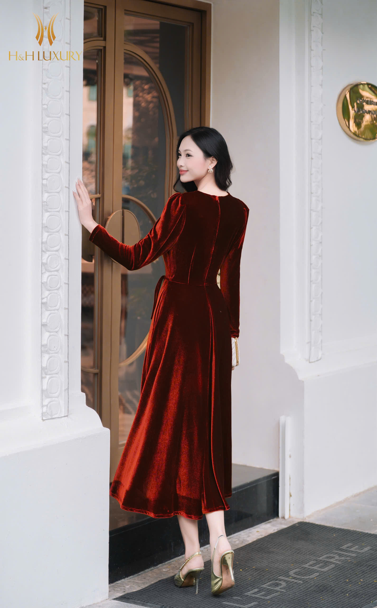 ĐẦM NHUNG THE GẠCH ĐỎ NƠ EO