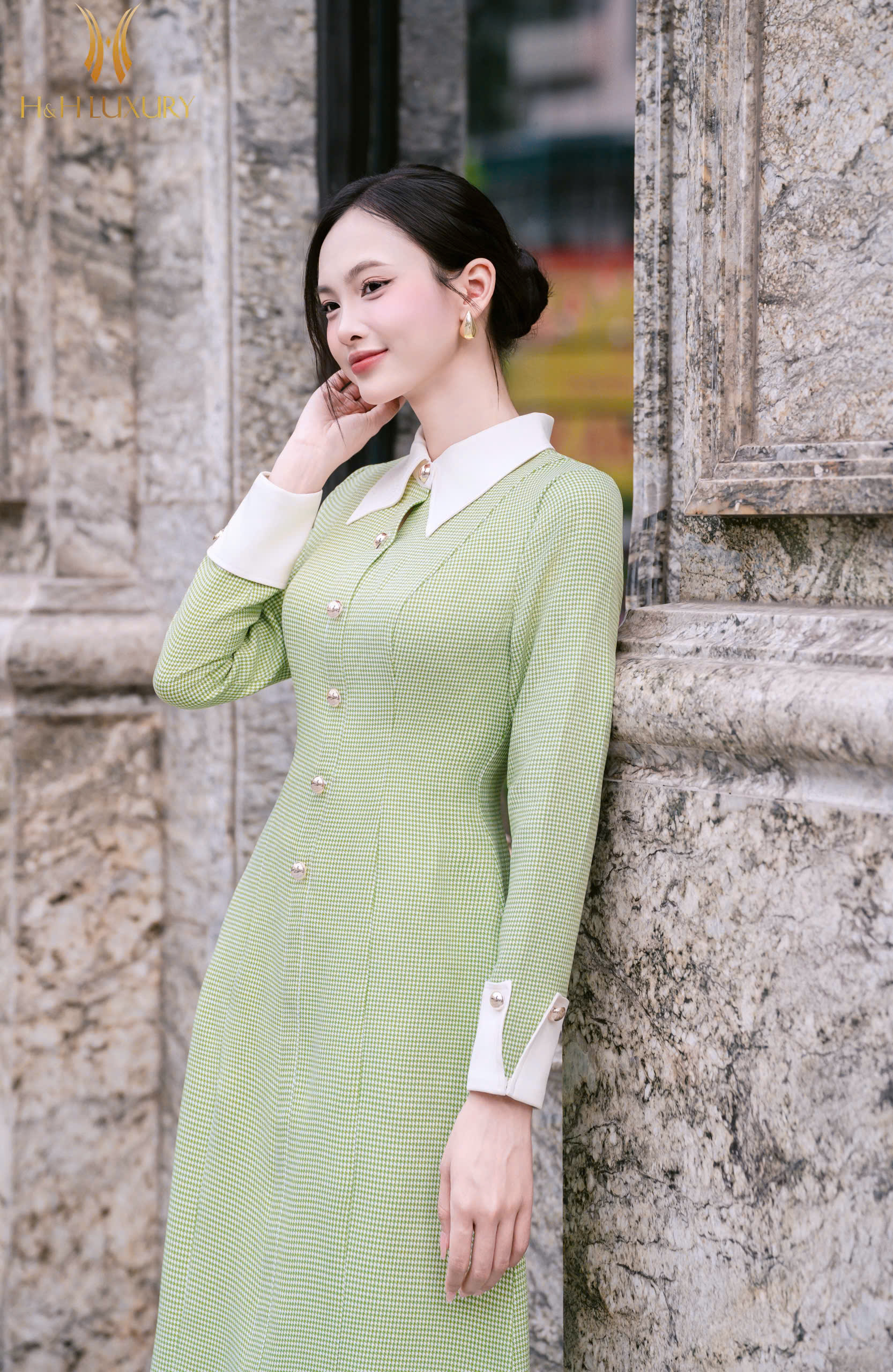 ĐẦM ÔM A PHỐI CỔ TAY ĐÍNH CÚC