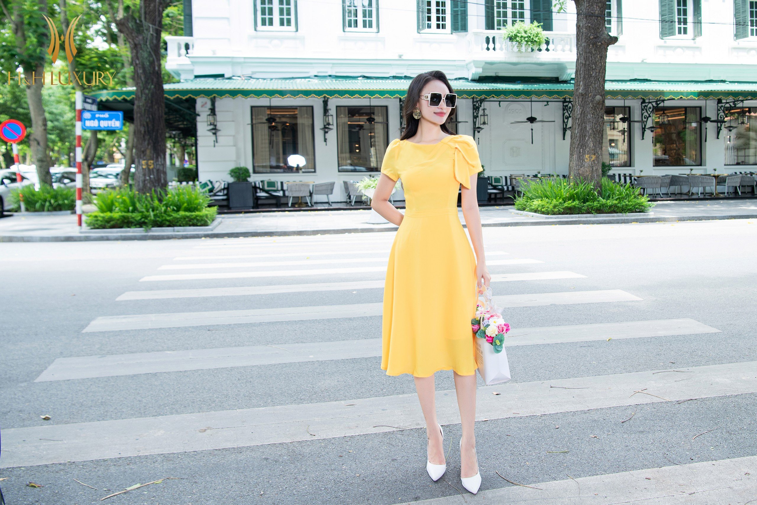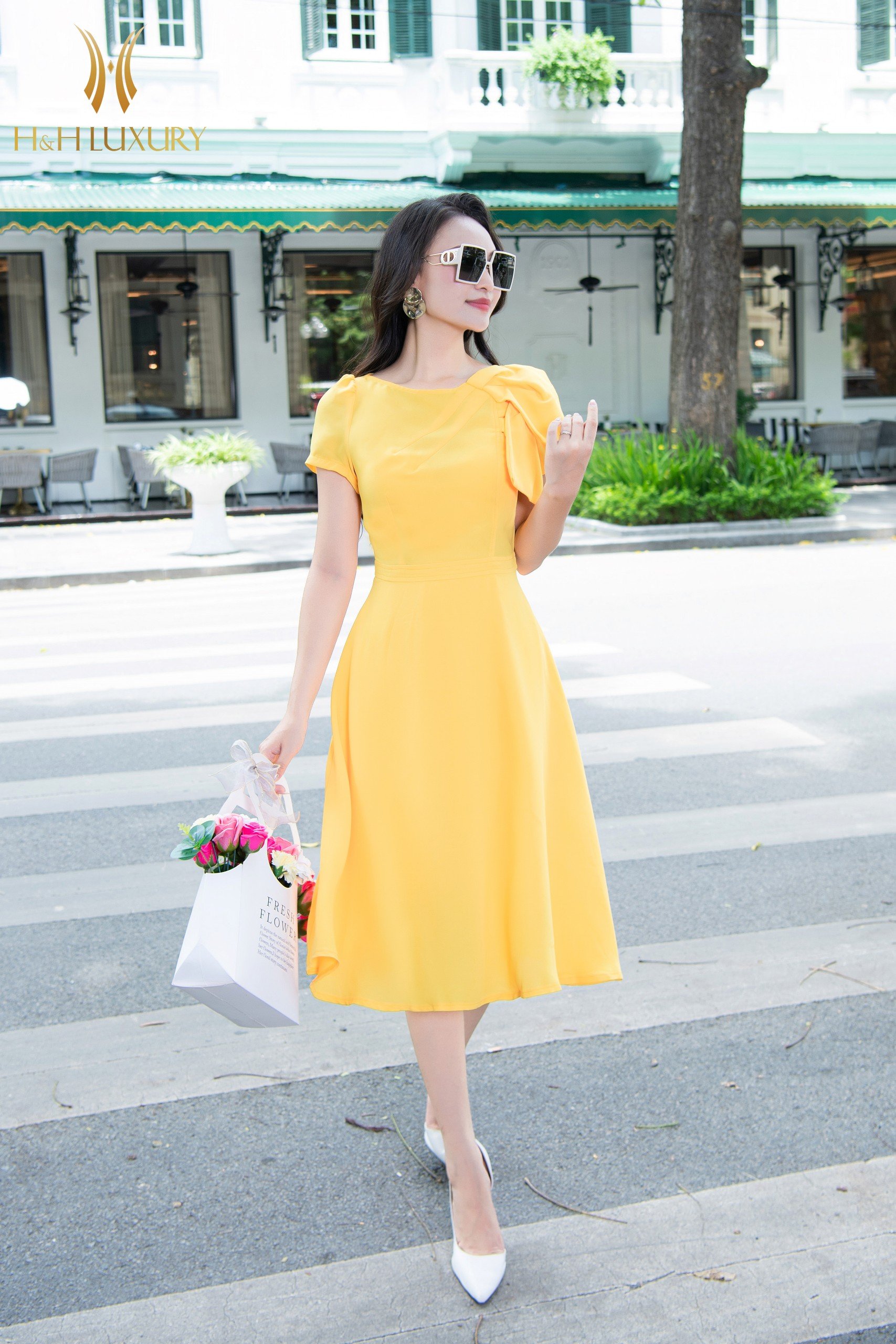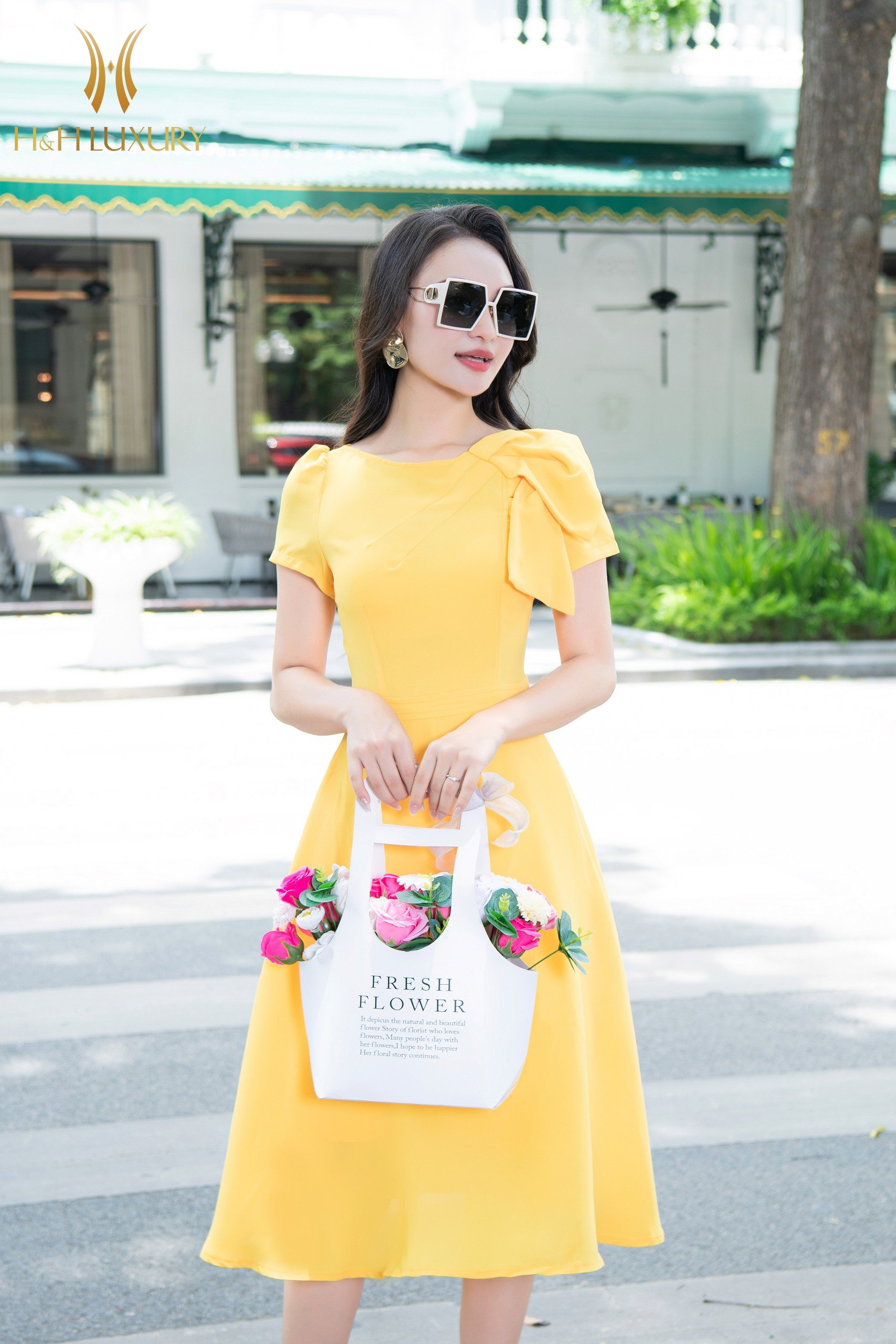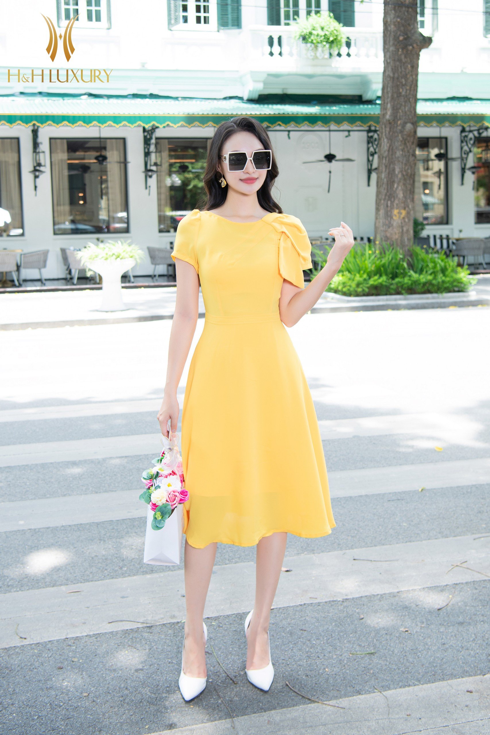 🔥Up mood đầu tuần với nhiều sự rực rỡ từ mẫu ĐẦM XÒE VÀNG CHÉO NHẬT NƠ VAI nhà H&H Luxury nhé nàng🤗