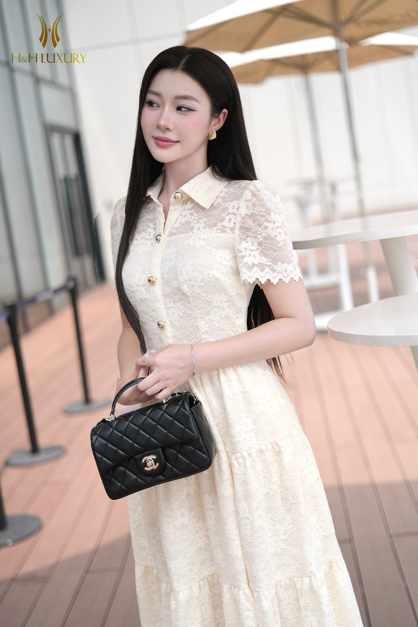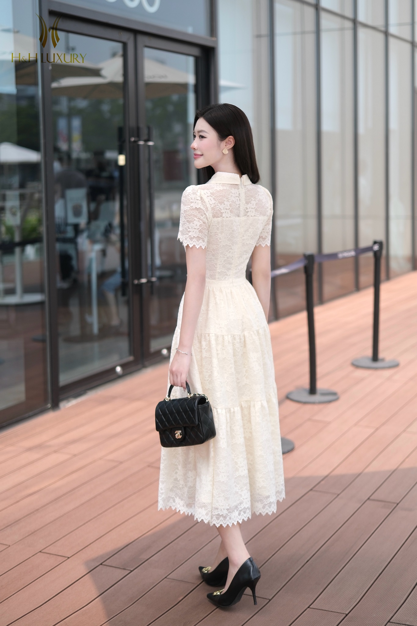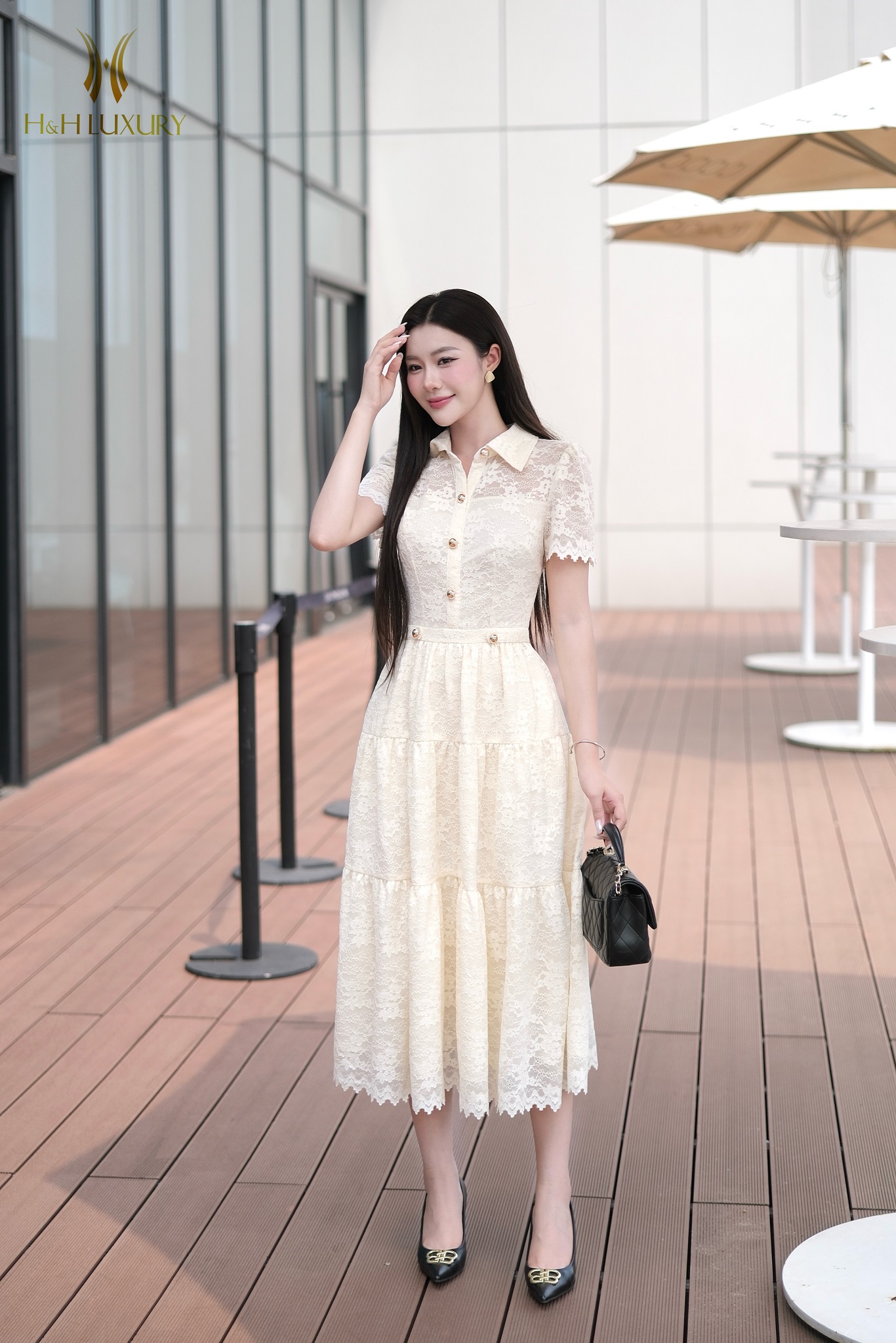 ĐẦM REN CỔ ĐỨC TÔNG KEM ĐÍNH CÚC