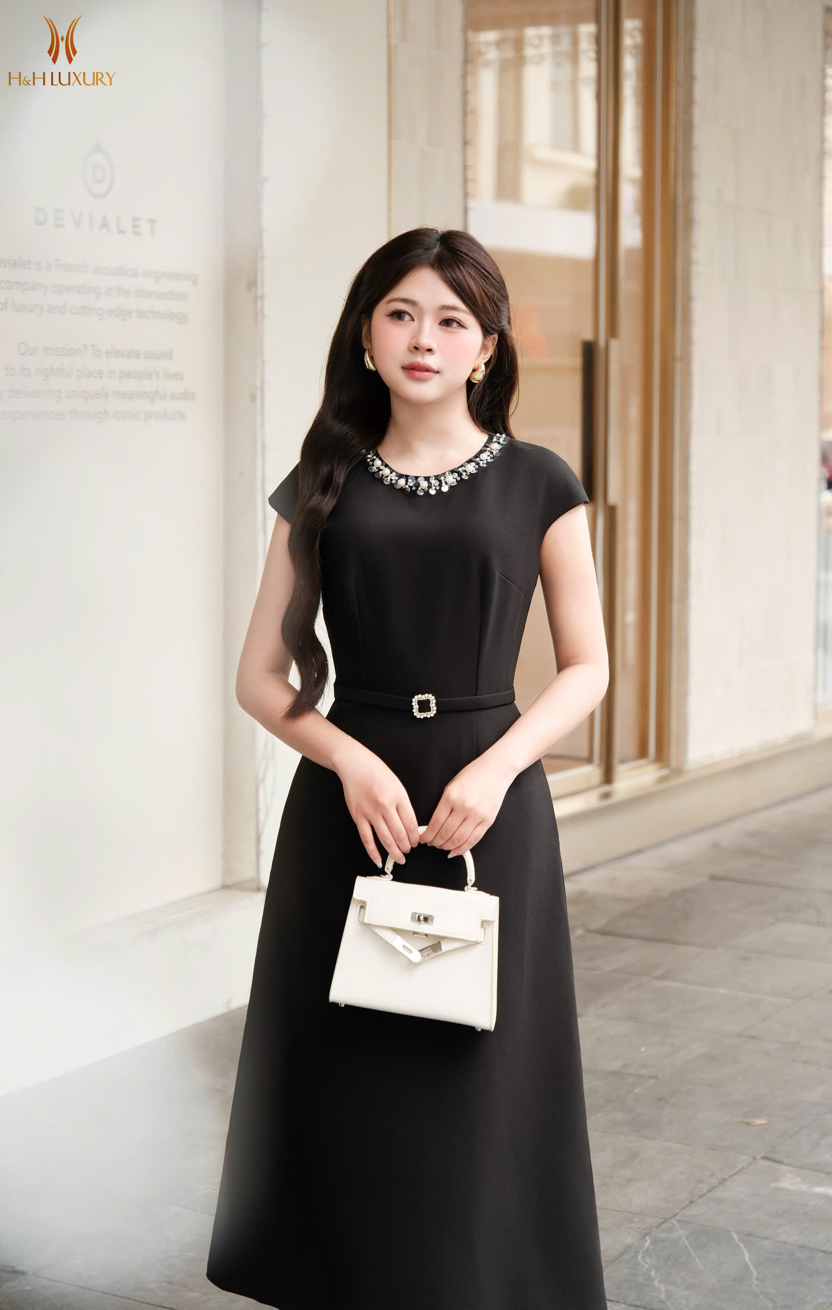 ĐẦM TIỆC ĐÍNH ĐÁ CỔ VAI EO ĐAI CHỜM