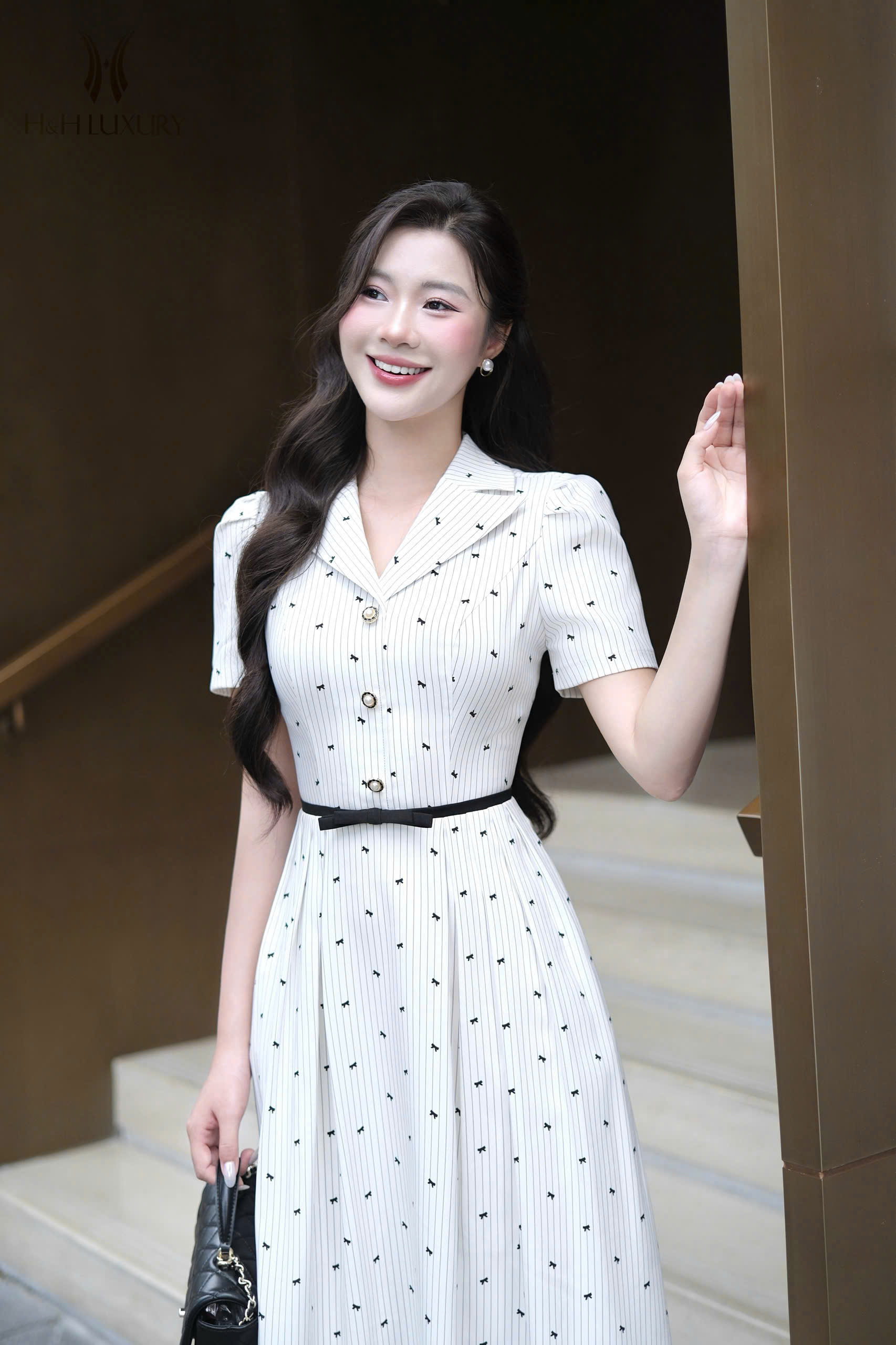 ĐẦM TRẮNG KẺ NƠ CỔ VÉC ĐÍNH CÚC