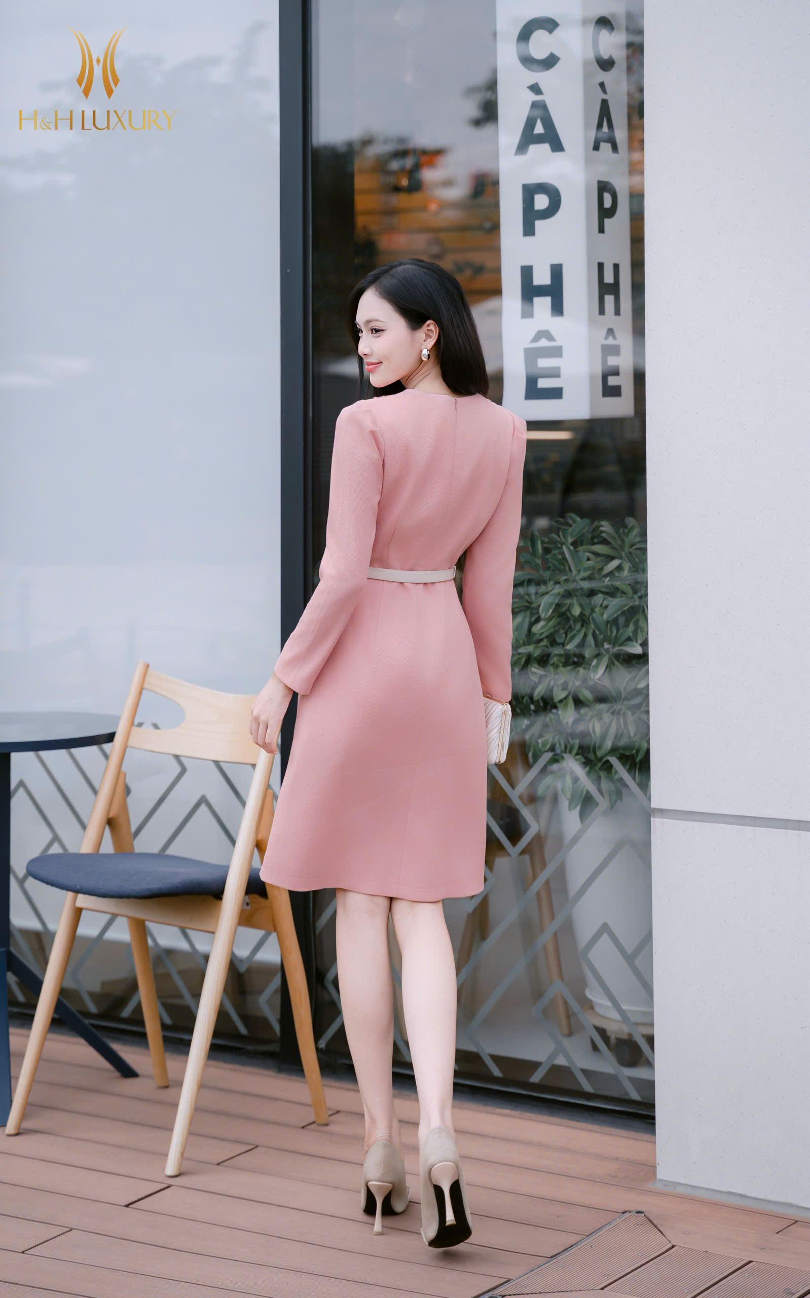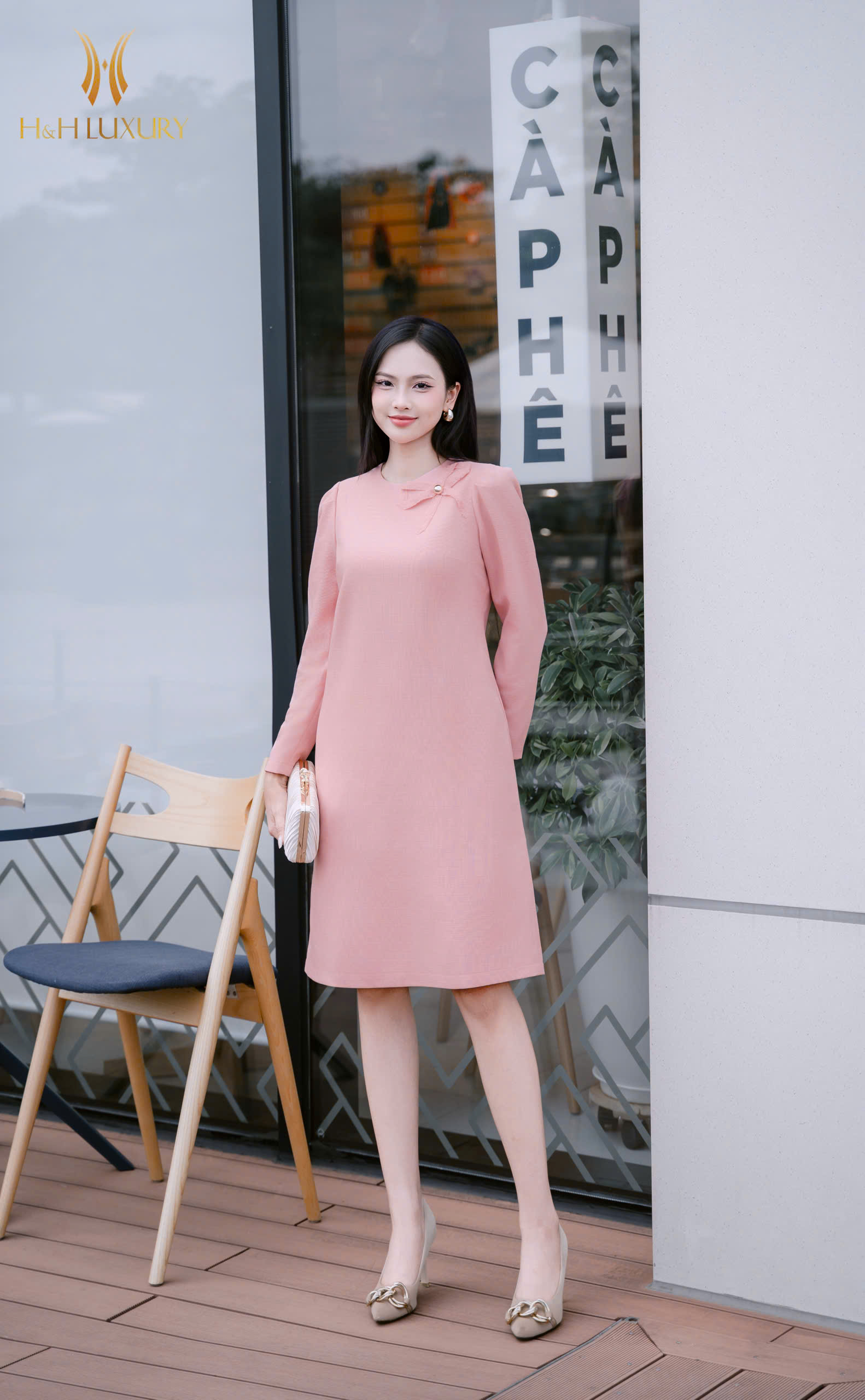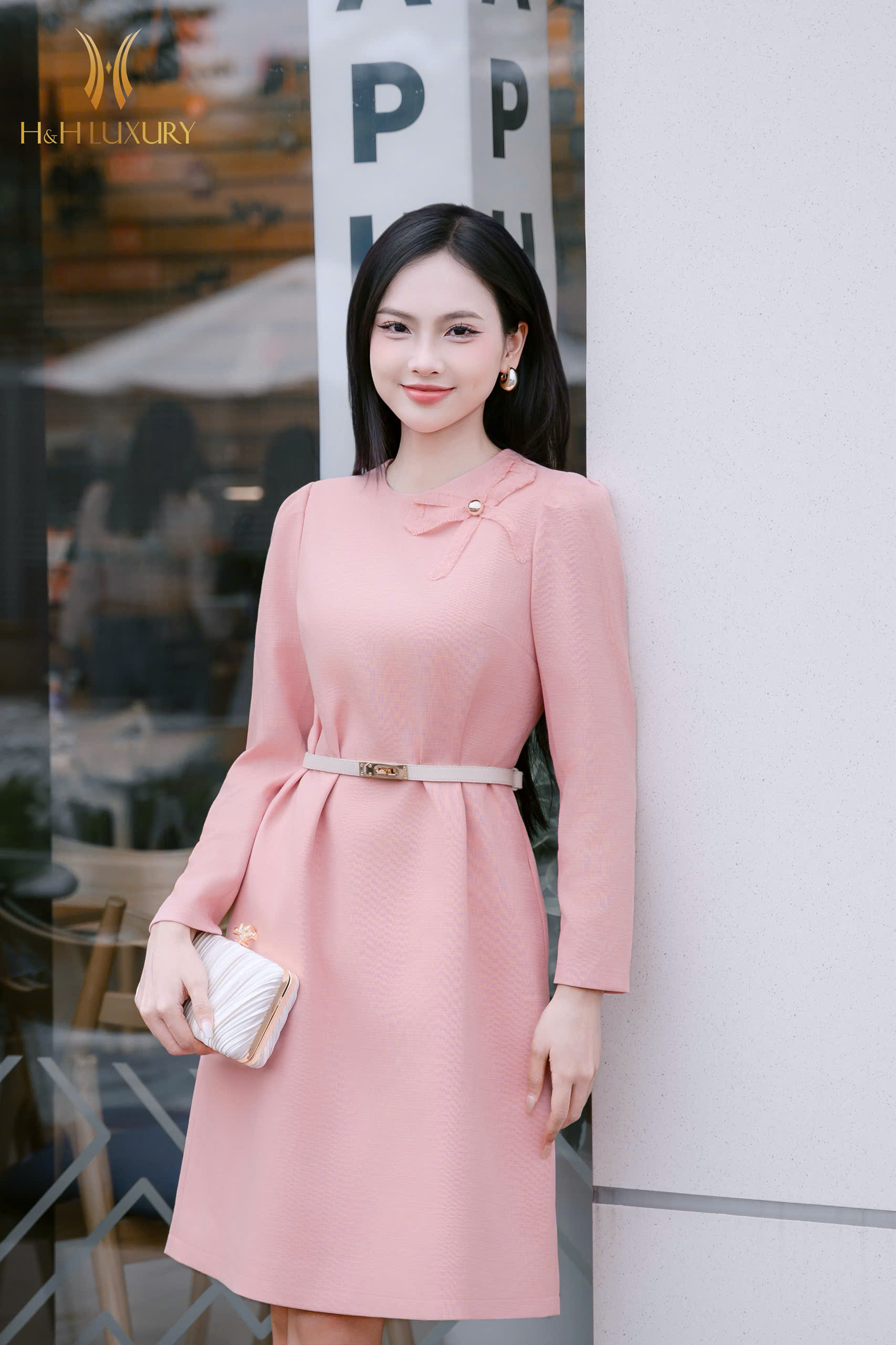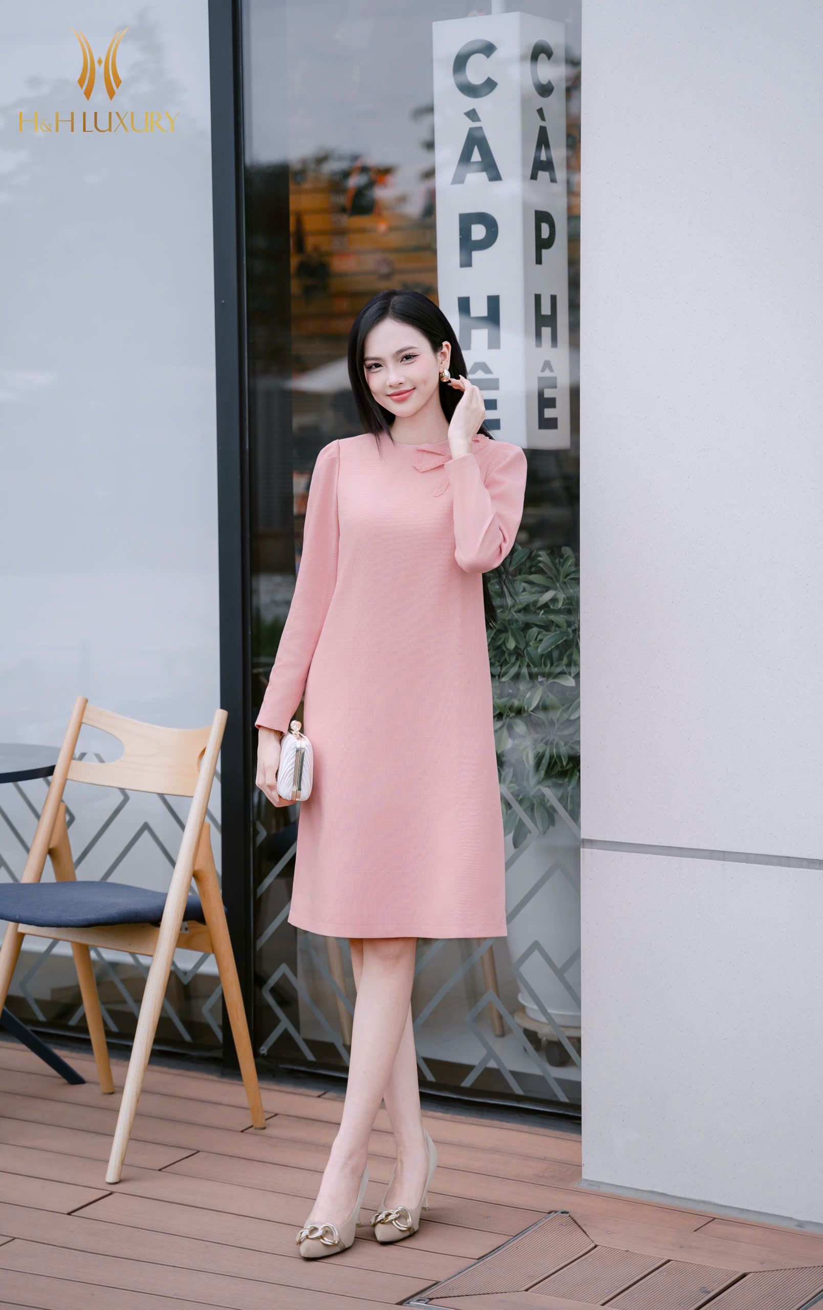 ĐẦM TWEED HỒNG XUÔNG NƠ NGỰC