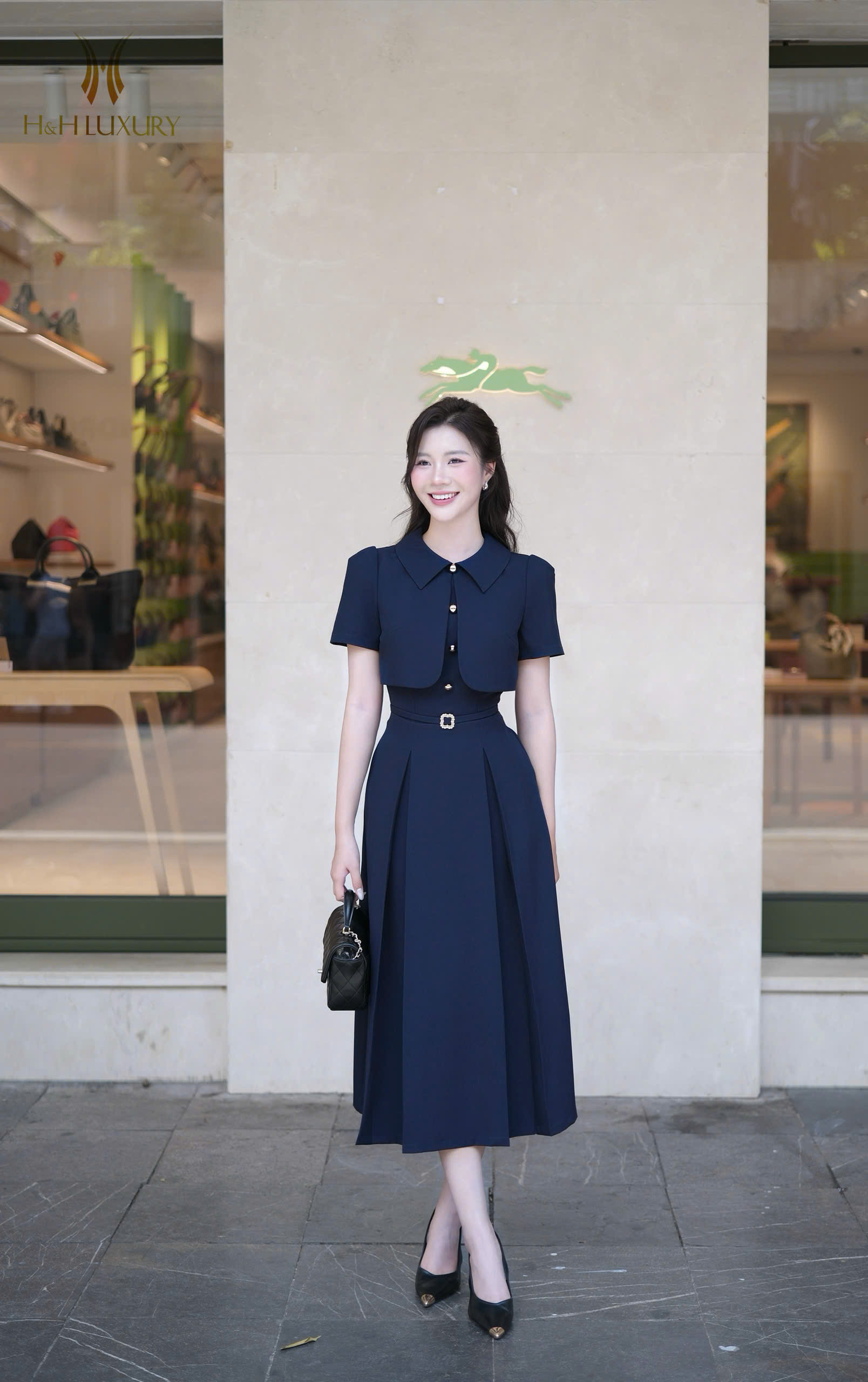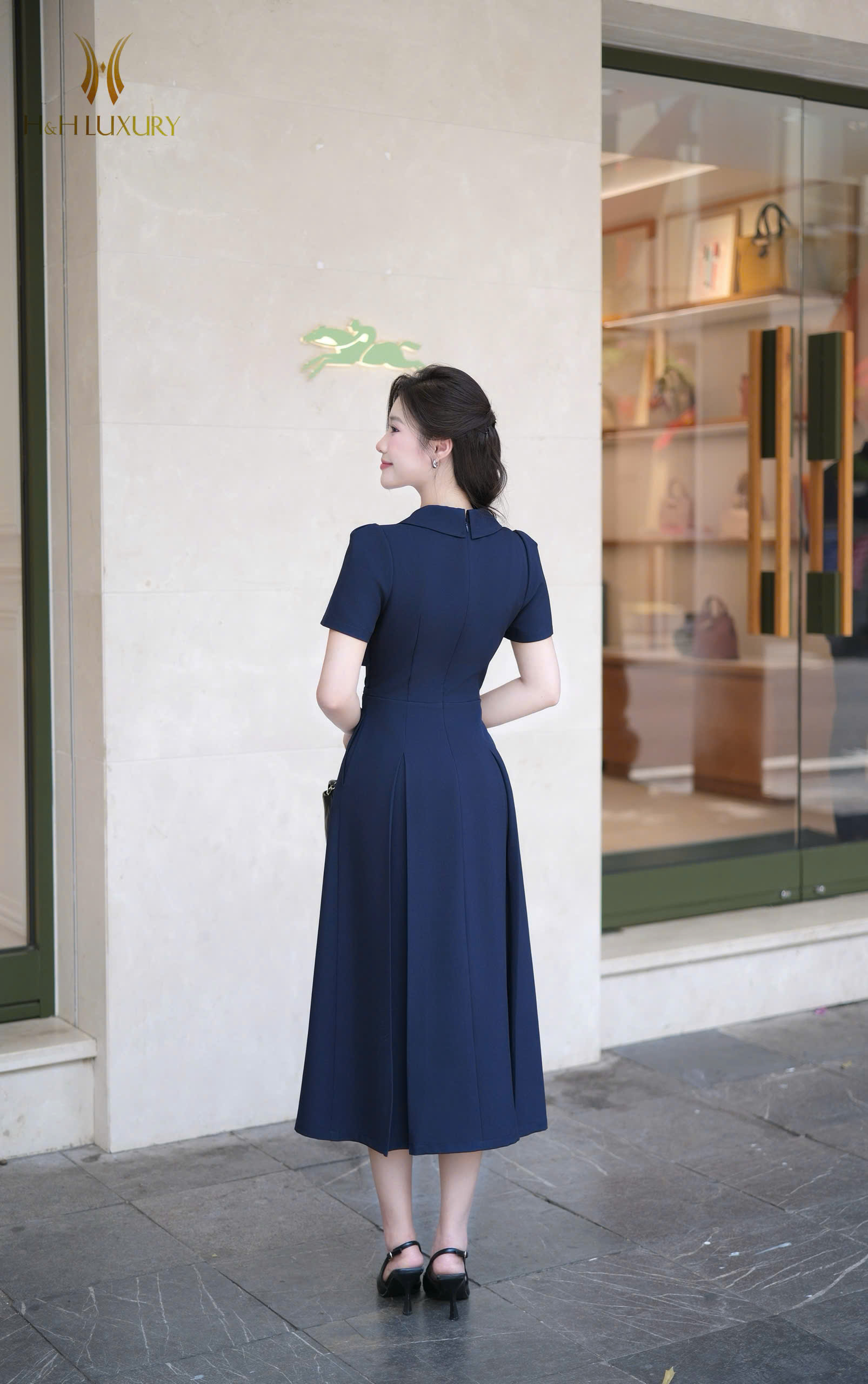 ĐẦM XANH NAVY TÀ NGỰC ĐÍNH CÚC