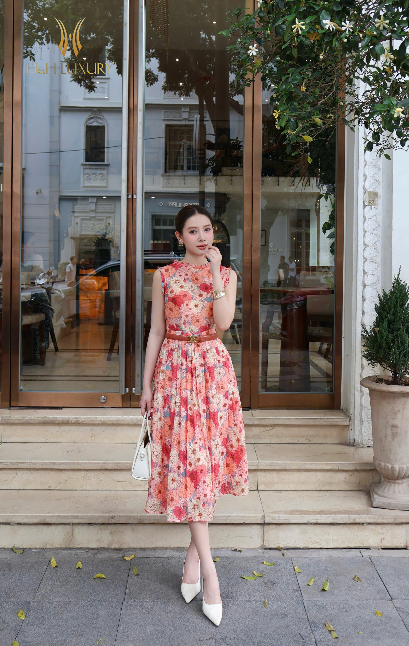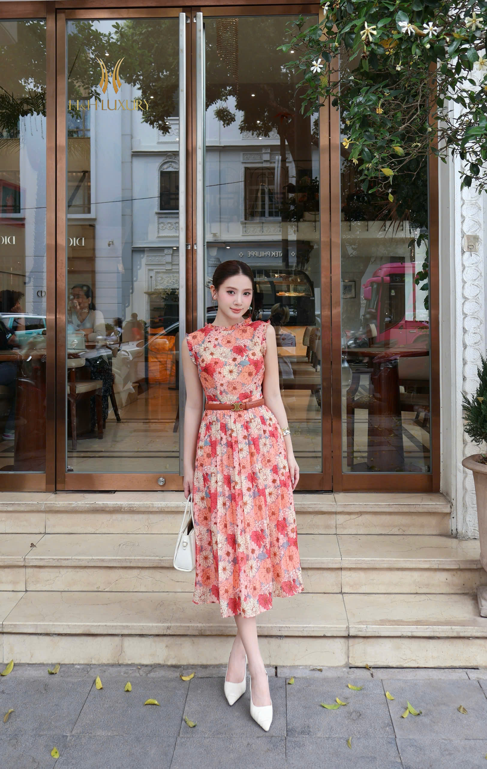 ĐẦM XẾP LY TẰM NHẬT HOA HỒNG SEN CAM